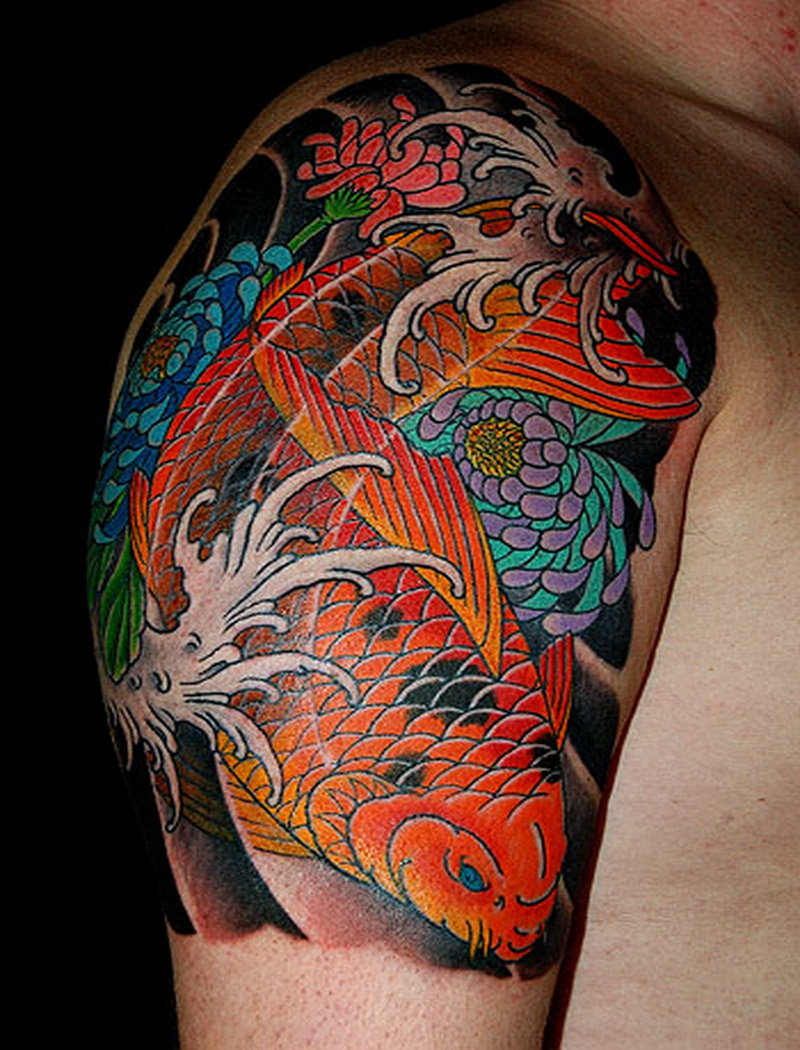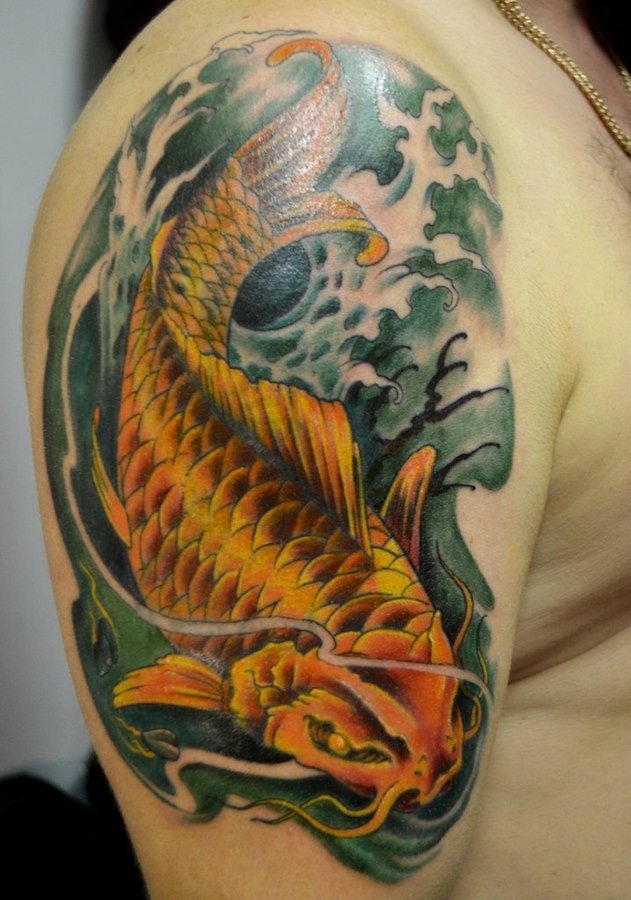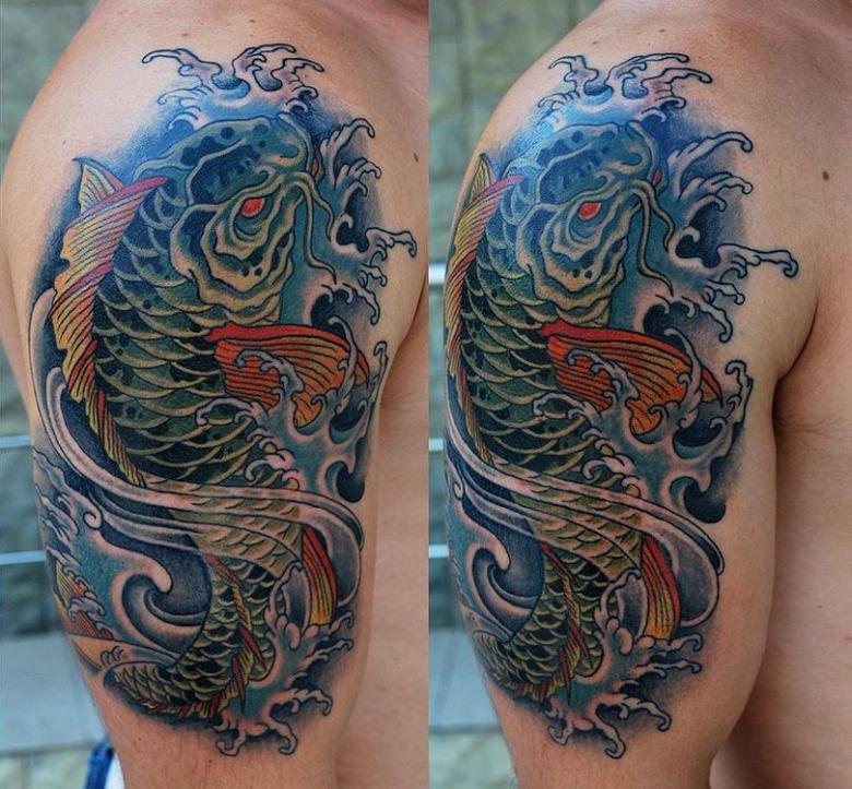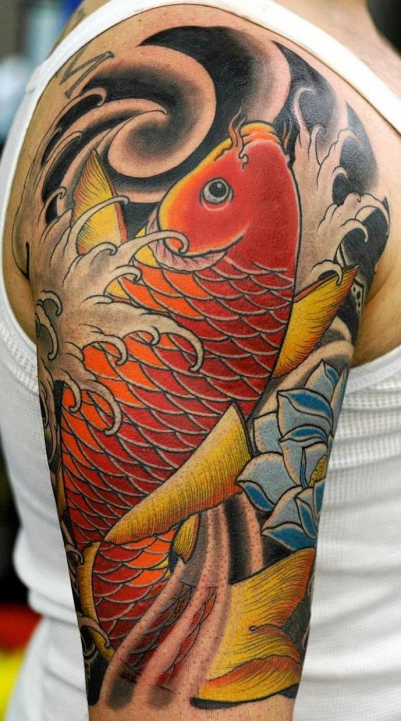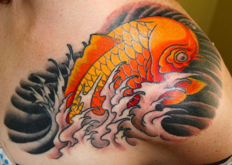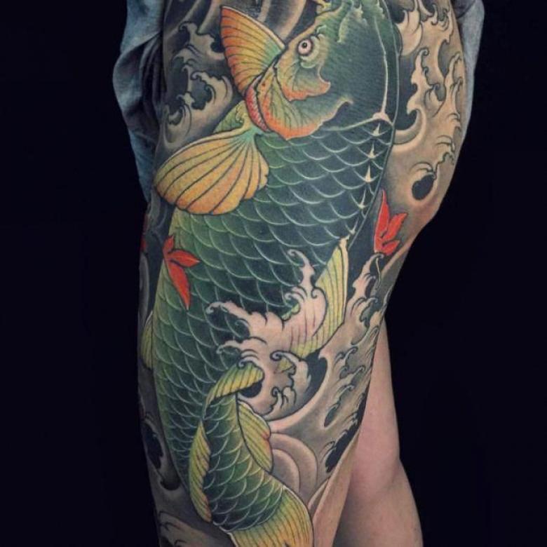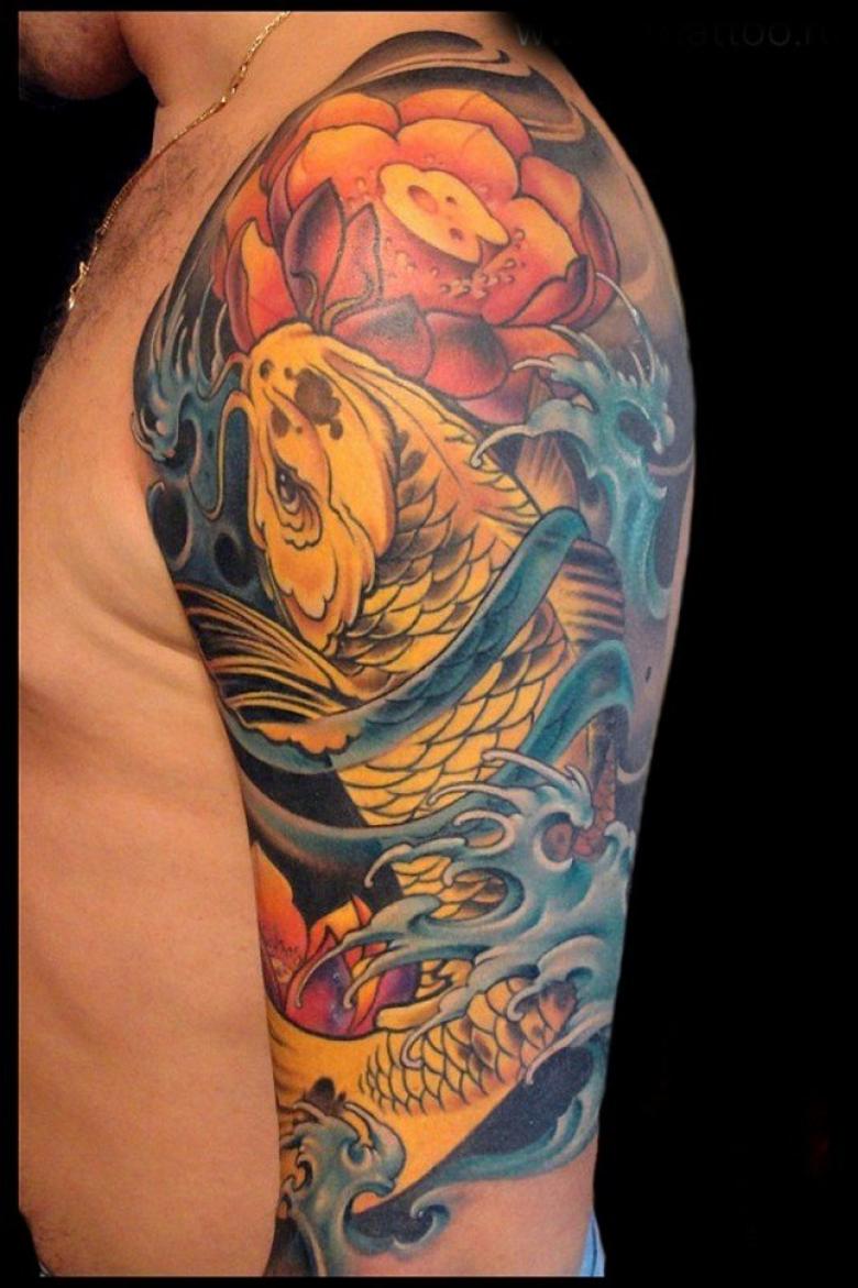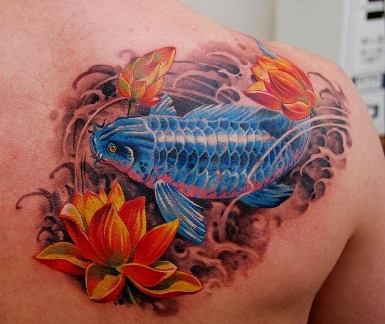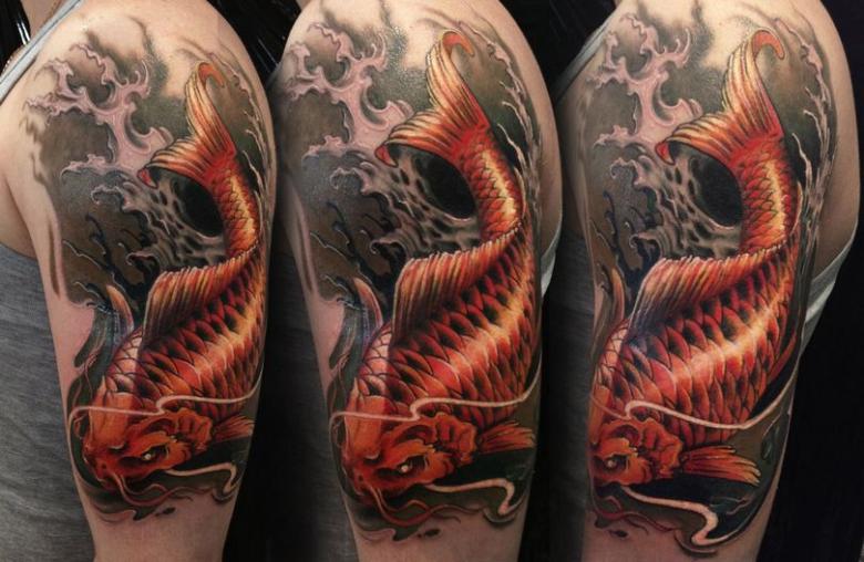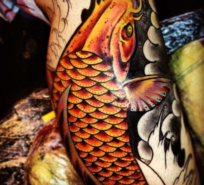 Le tatouage de carpe le plus courant est un dessin de poisson japonais. En japonais, carpe ressemble à koi. Le koi est très important dans la philosophie orientale. La culture nationale chinoise reconnaît ce brave poisson comme un empereur parmi tous les autres. Un autre nom très célèbre est celui de poisson-dragon. Une célèbre légende raconte qu'une petite carpe a surmonté le fort courant de la Huanghe. Il a atteint la porte du dragon, qui était à l'embouchure du fleuve jaune. En récompense, il s'est lui-même transformé en dragon. Moralité - l'assiduité et les efforts fournis par un travail acharné permettront d'atteindre les hauteurs souhaitées.