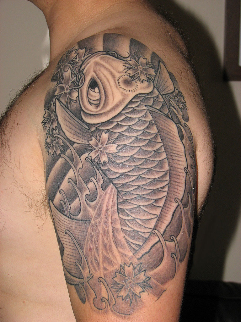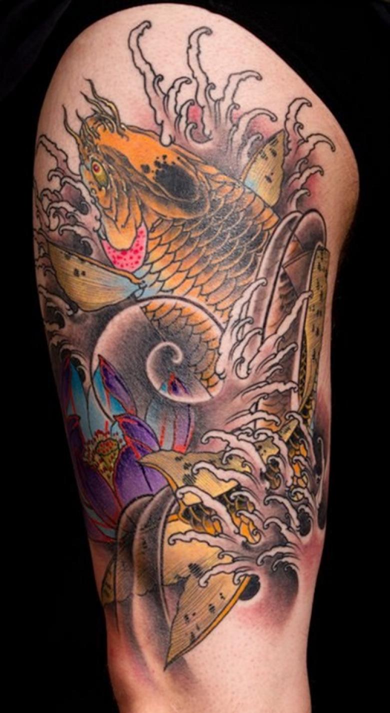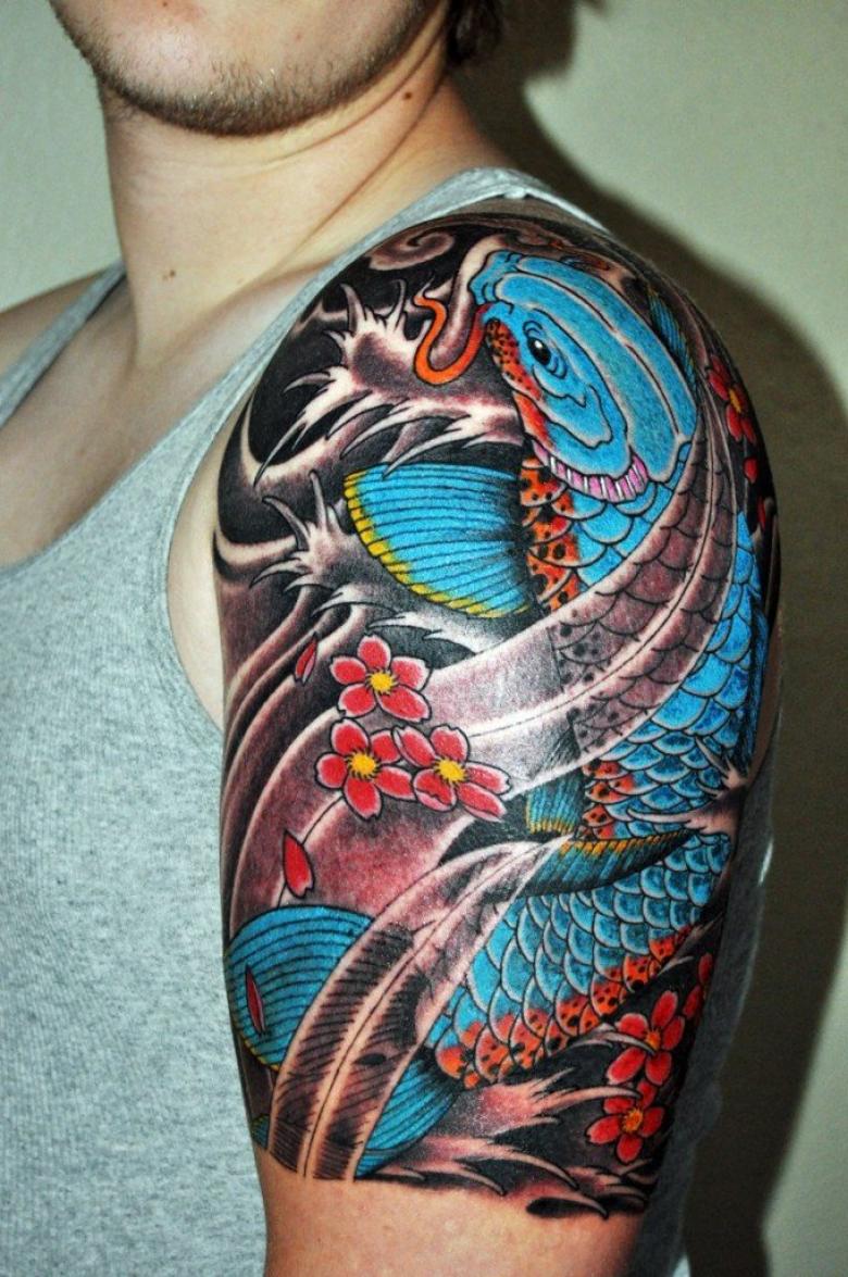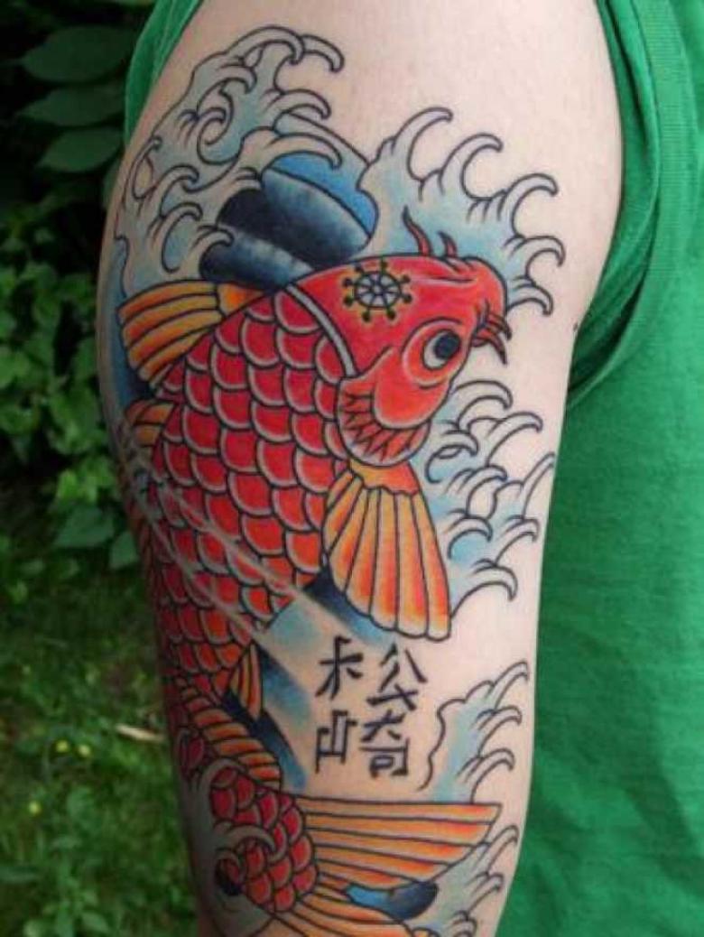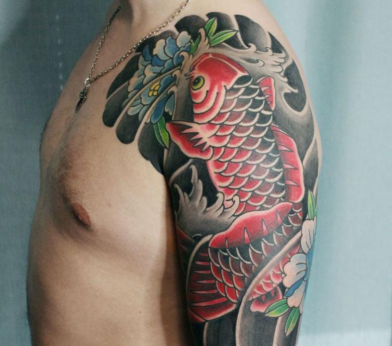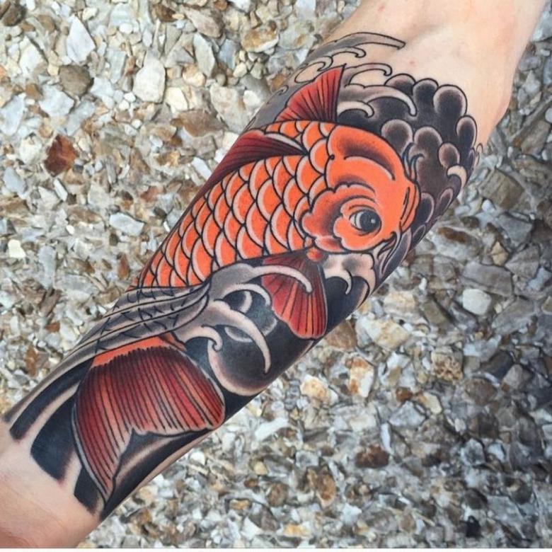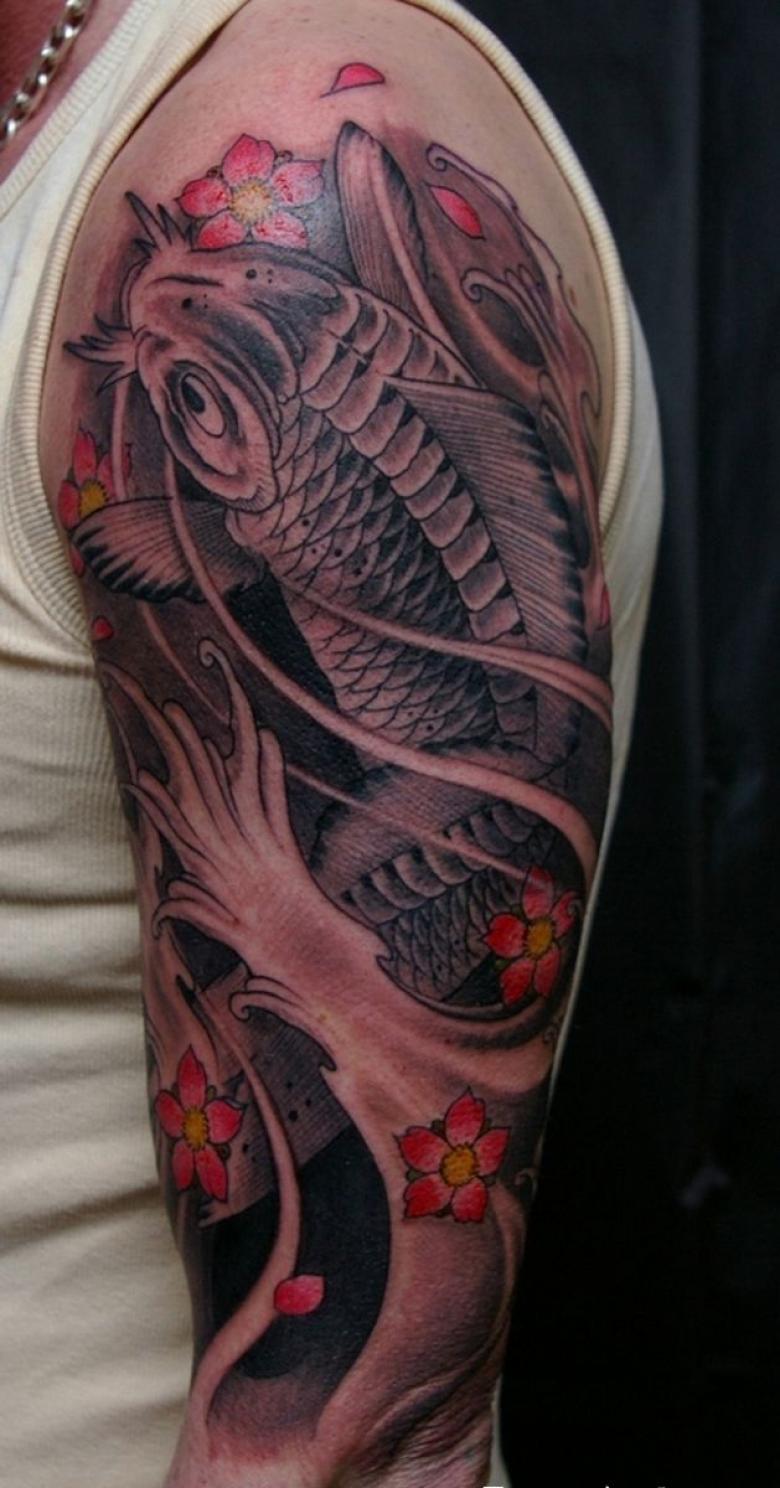 Le tatouage de carpe le plus courant est un dessin de poisson japonais. En japonais, carpe ressemble à koi. Le koi est très important dans la philosophie orientale. La culture nationale chinoise reconnaît ce brave poisson comme un empereur parmi tous les autres. Un autre nom très célèbre est celui de poisson-dragon. Une célèbre légende raconte qu'une petite carpe a surmonté le fort courant de la Huanghe. Il a atteint la porte du dragon, qui était à l'embouchure du fleuve jaune. En récompense, il s'est lui-même transformé en dragon. Moralité - l'assiduité et les efforts fournis par un travail acharné permettront d'atteindre les hauteurs souhaitées.