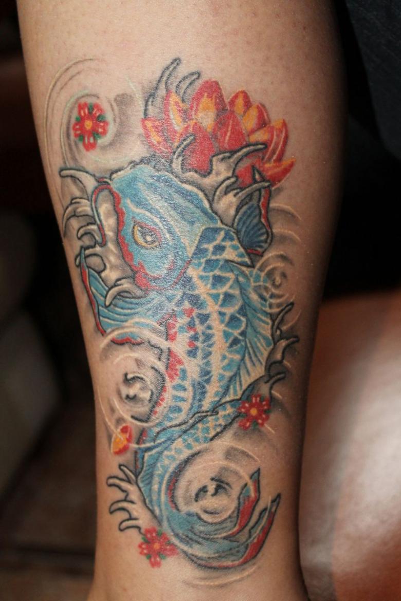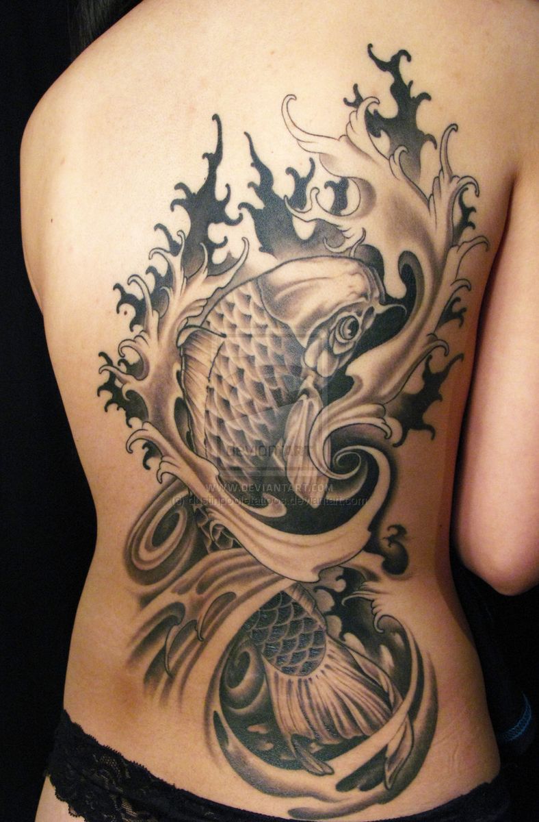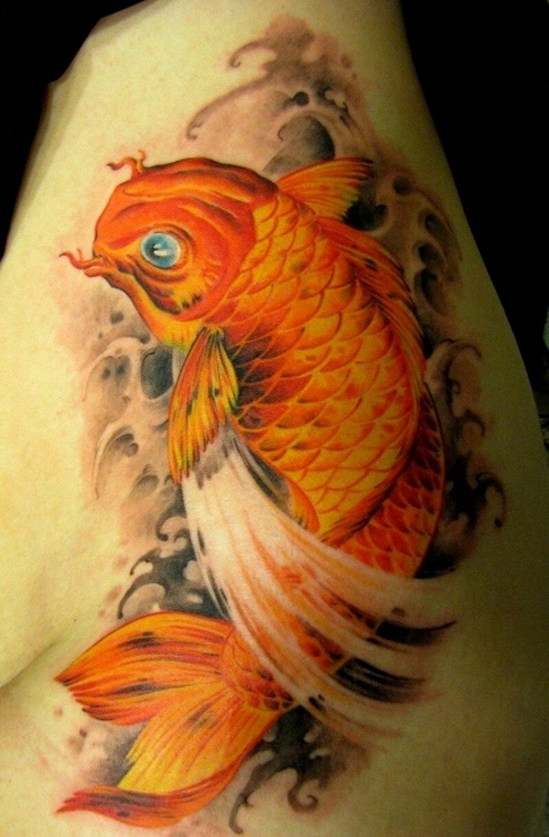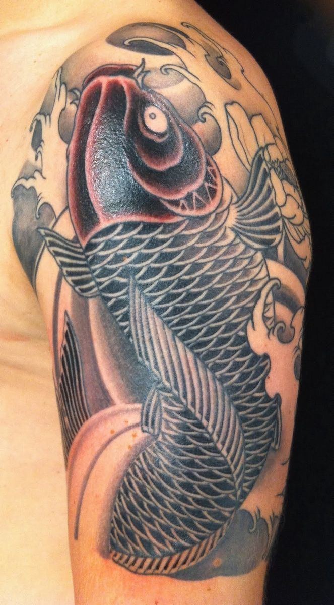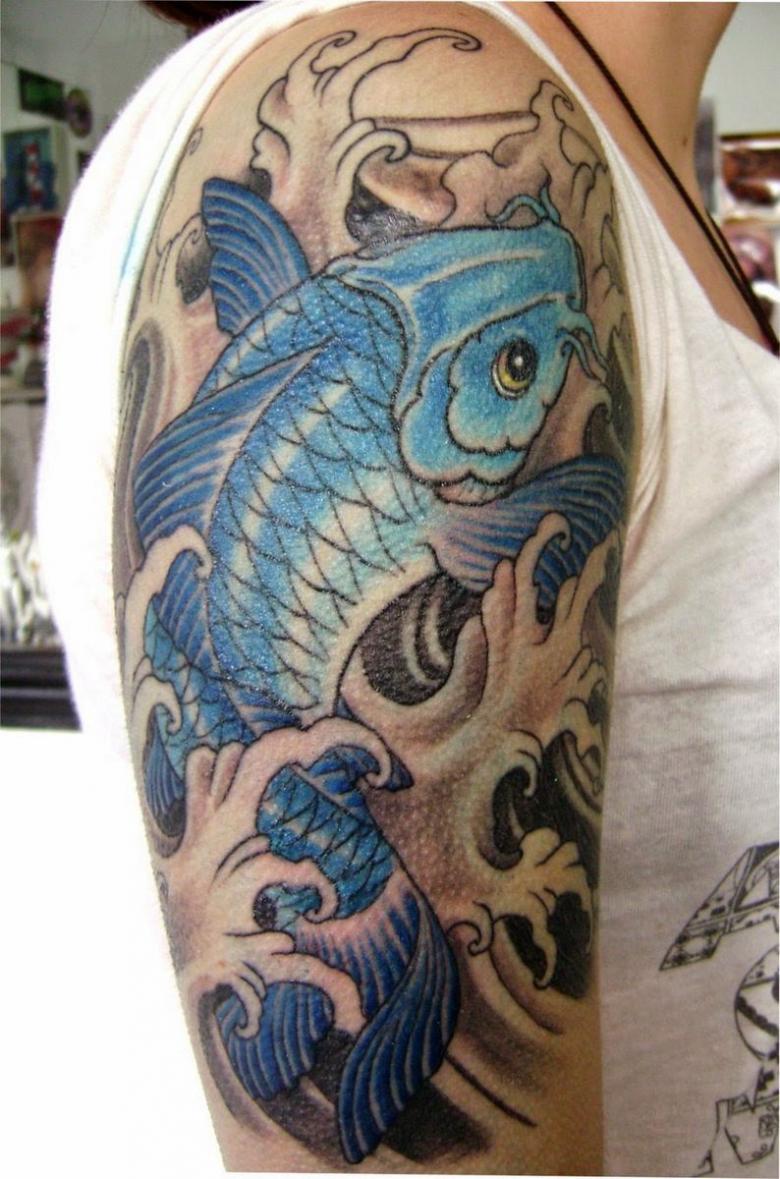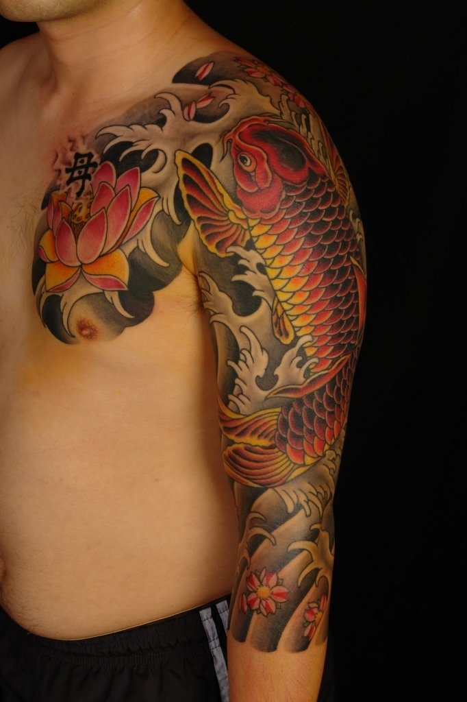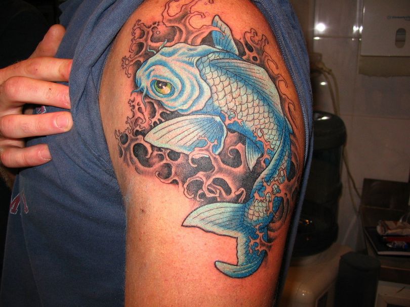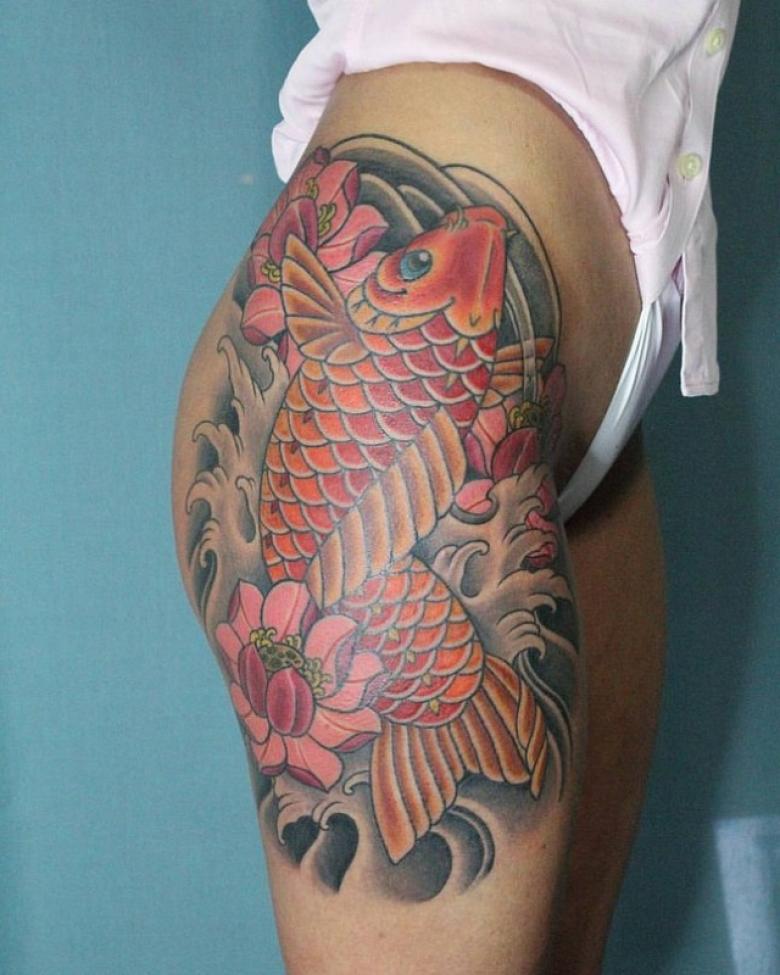 Le tatouage de carpe le plus courant est un dessin de poisson japonais. En japonais, carpe ressemble à koi. Le koi est très important dans la philosophie orientale. La culture nationale chinoise reconnaît ce brave poisson comme un empereur parmi tous les autres. Un autre nom très célèbre est celui de poisson-dragon. Une célèbre légende raconte qu'une petite carpe a surmonté le fort courant de la Huanghe. Il a atteint la porte du dragon, qui était à l'embouchure du fleuve jaune. En récompense, il s'est lui-même transformé en dragon. Moralité - l'assiduité et les efforts fournis par un travail acharné permettront d'atteindre les hauteurs souhaitées.
