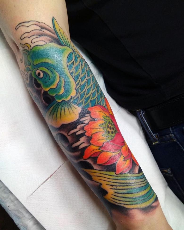 La signification la plus importante du tatouage Karp - bonne chance et amour de la vie. Incarner l'envie d'aller de l'avant, à travers tous les obstacles. Tattoo pour l'esprit d'un homme fort, intelligent, capable de se fixer un objectif élevé et de s'efforcer de l'atteindre.