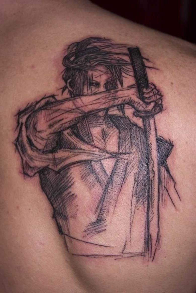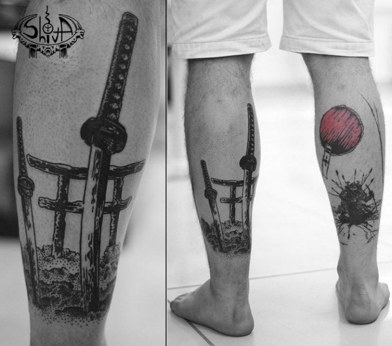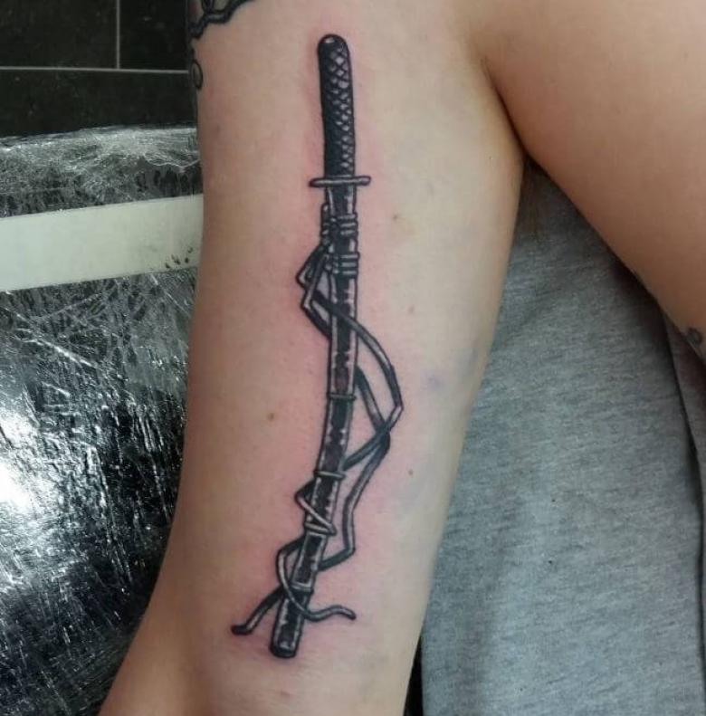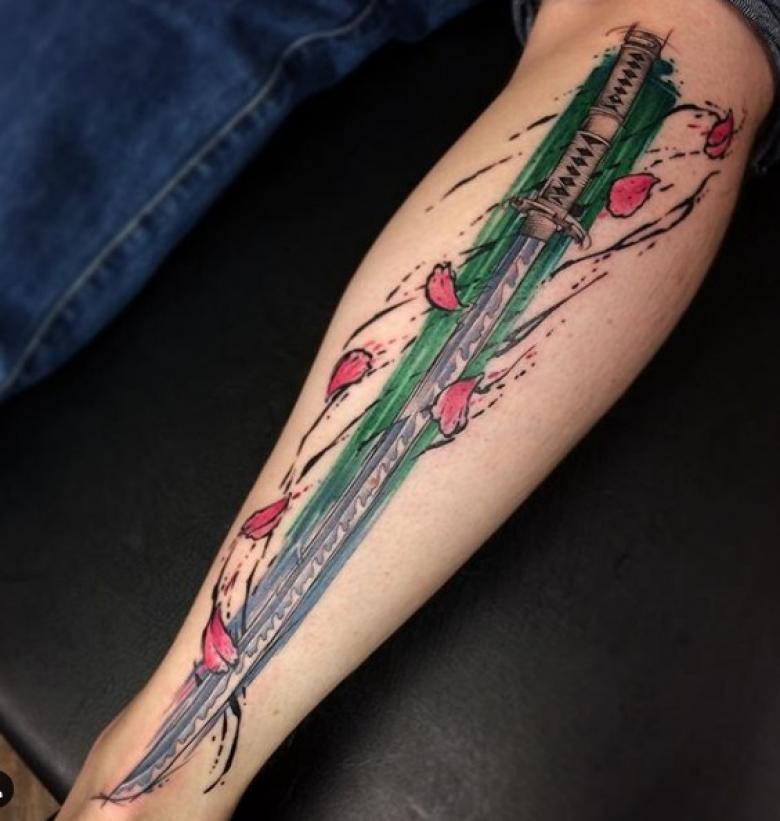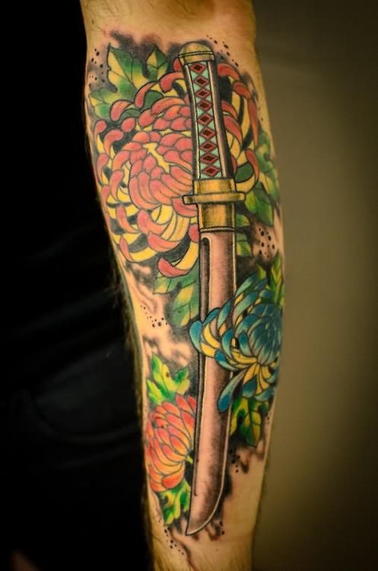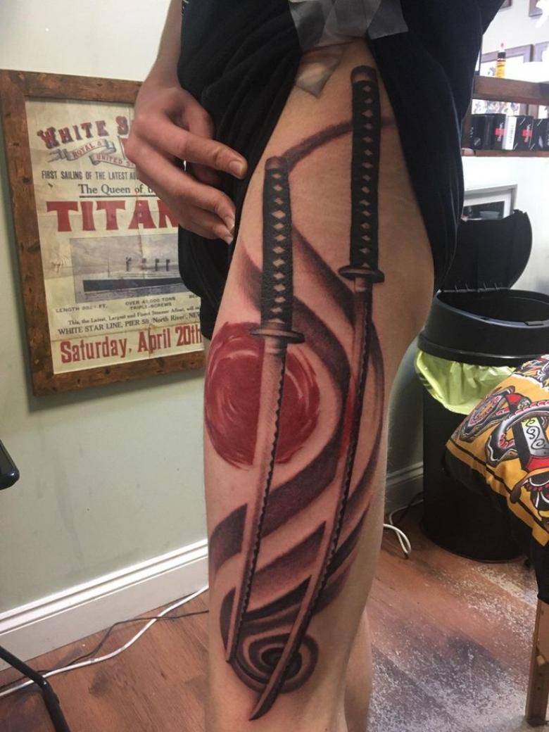 Tatouages au katana - description complète, éléments d'image supplémentaires (samouraï, fille, sakura), placement, motifs et photos