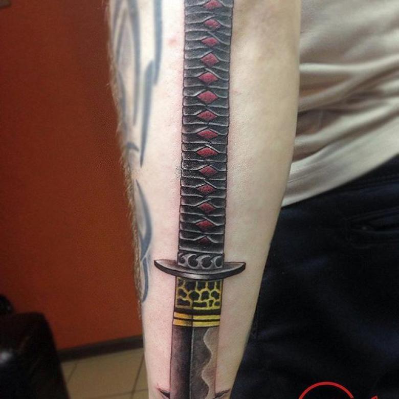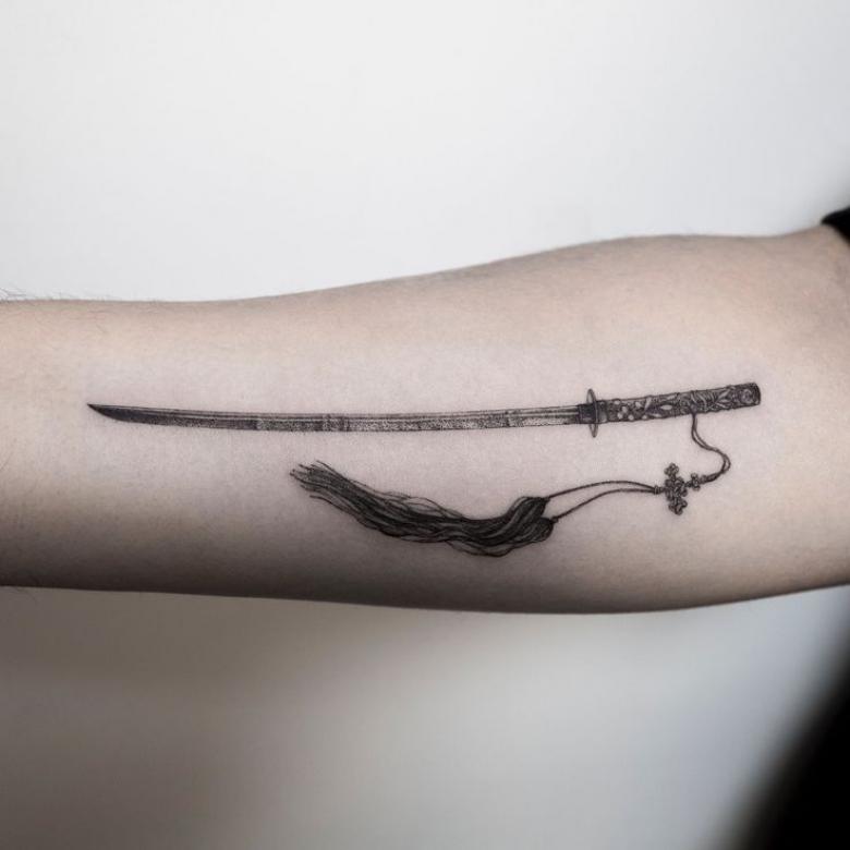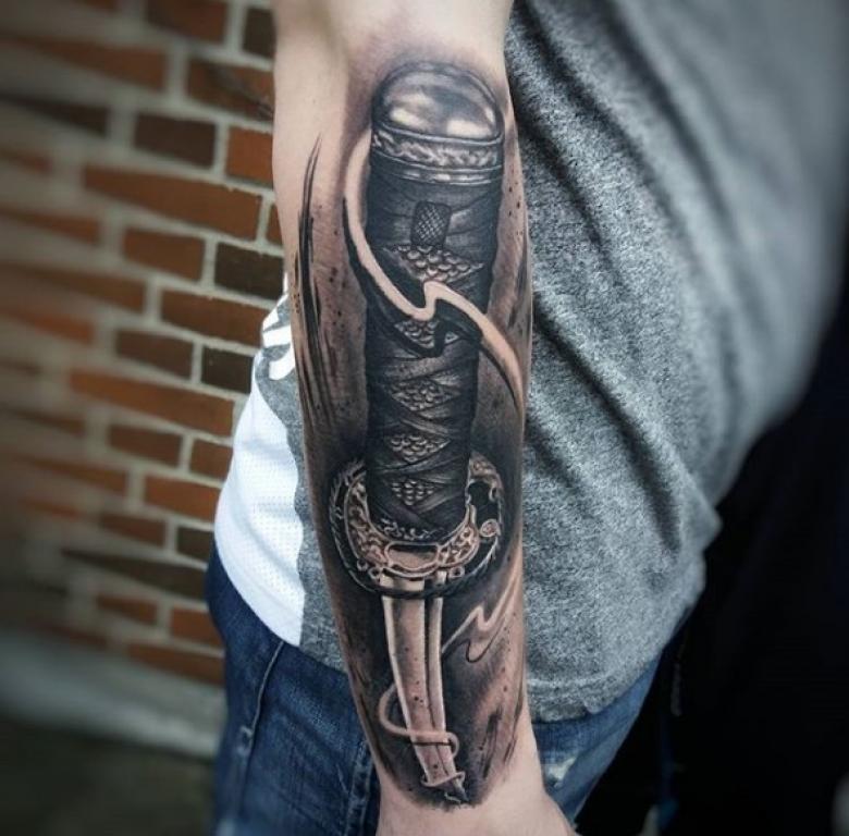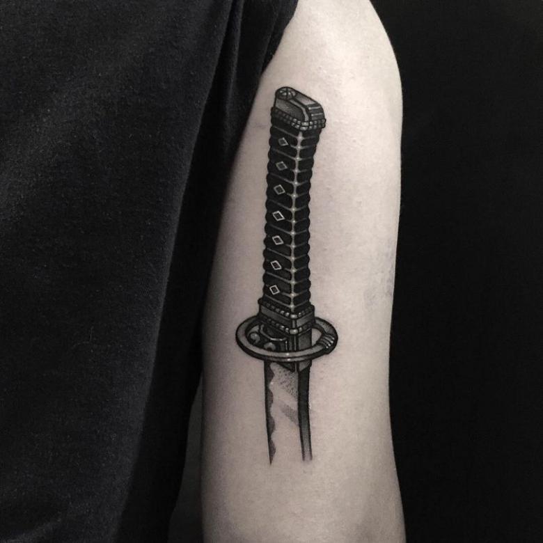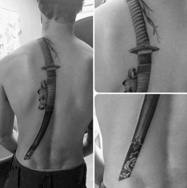 Pour obtenir un bon résultat, il est nécessaire de s'adresser à un salon professionnel où travaillent des tatoueurs expérimentés. C'est là que l'artisan choisira parmi une sélection de photos d'un sabre de samouraï. Le maître jouera avec les idées à la fois, développant une esquisse au goût du client.