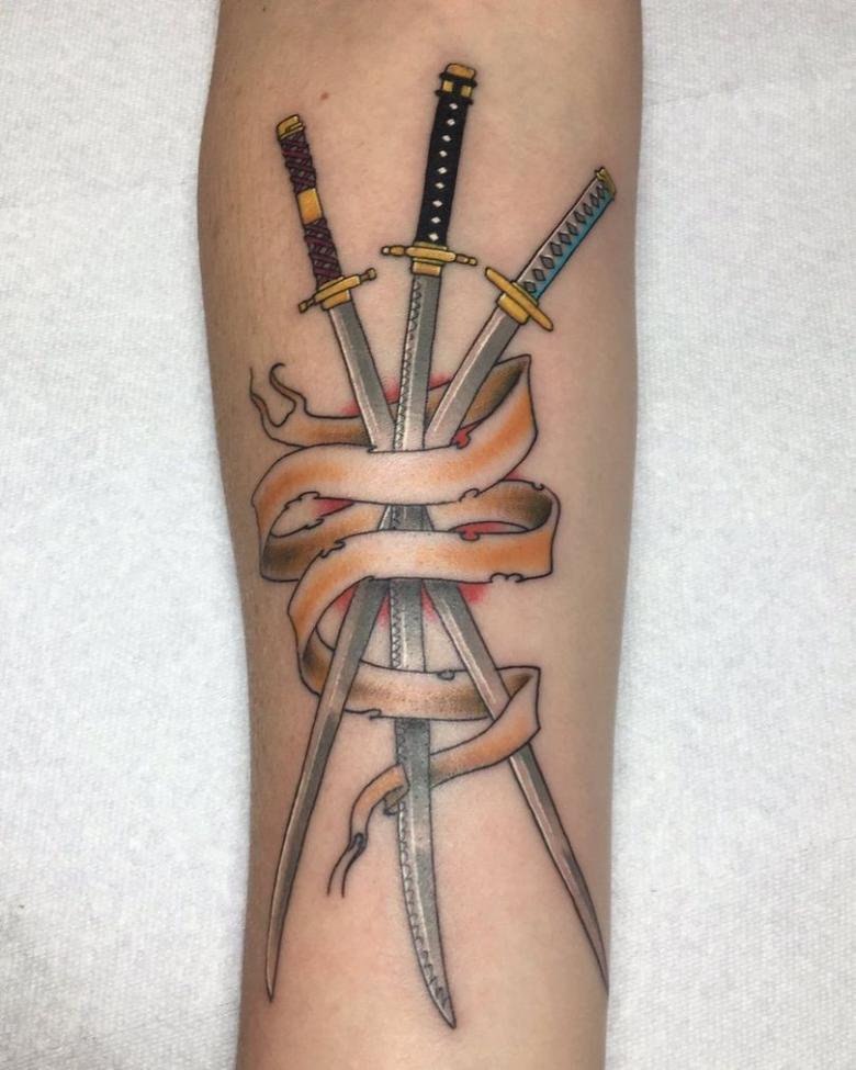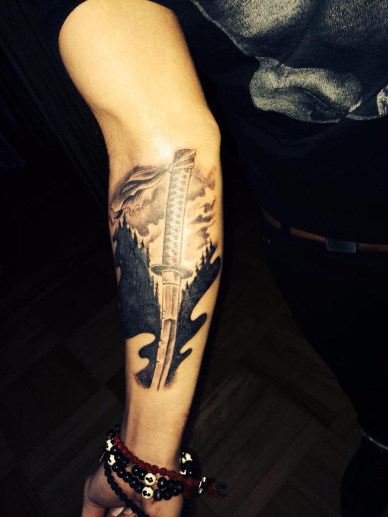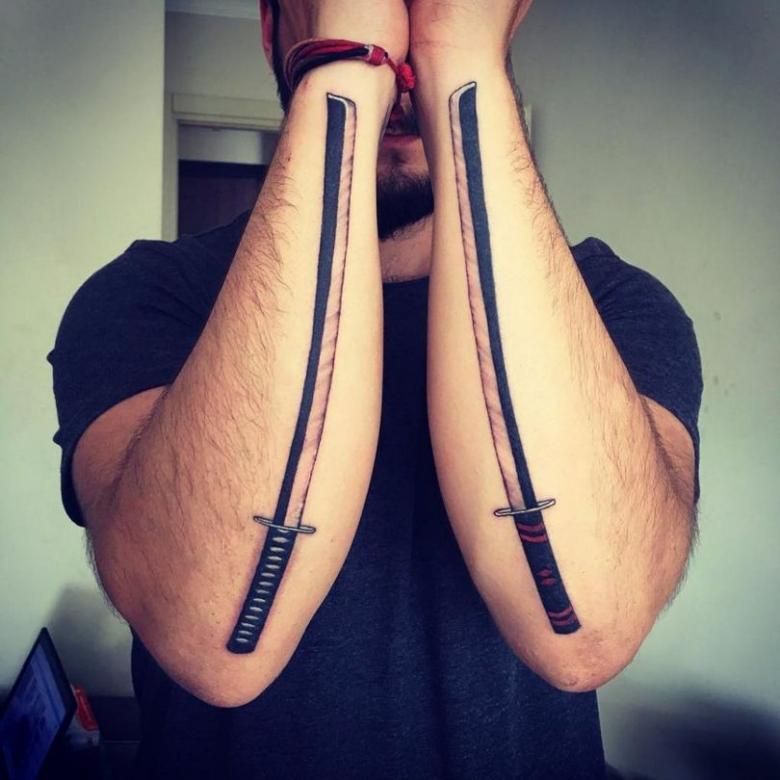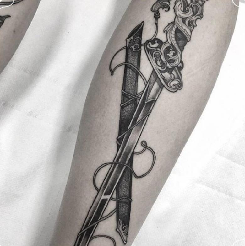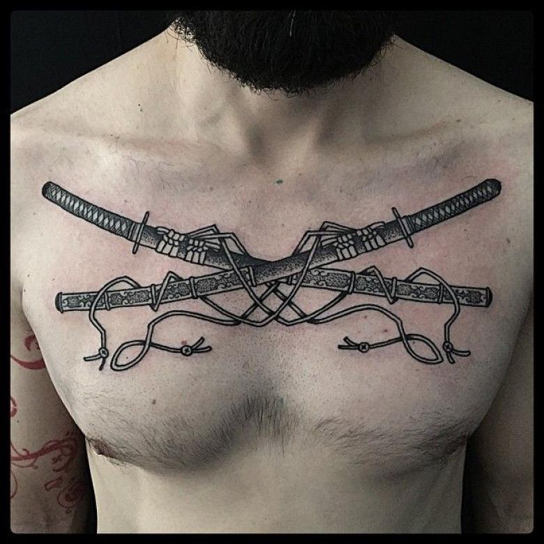 Pour obtenir un bon résultat, il est nécessaire de s'adresser à un salon professionnel où travaillent des tatoueurs expérimentés. C'est là que l'artisan choisira parmi une sélection de photos d'un sabre de samouraï. Le maître jouera avec les idées à la fois, développant une esquisse au goût du client.