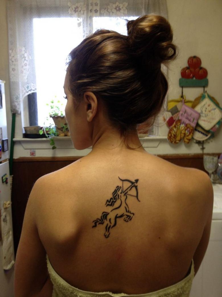 Les filles choisissent moins souvent un dessin avec la figure d'un centaure. La propriétaire d'un tel tatouage est une nature aimable et coquette, qui attire et garde les hommes près d'elle. Elle n'est pas coincée, elle est franche et ouverte. Une telle fille n'attend pas qu'un jeune homme fasse le premier pas pour faire connaissance et obtenir son numéro de téléphone - elle agit.