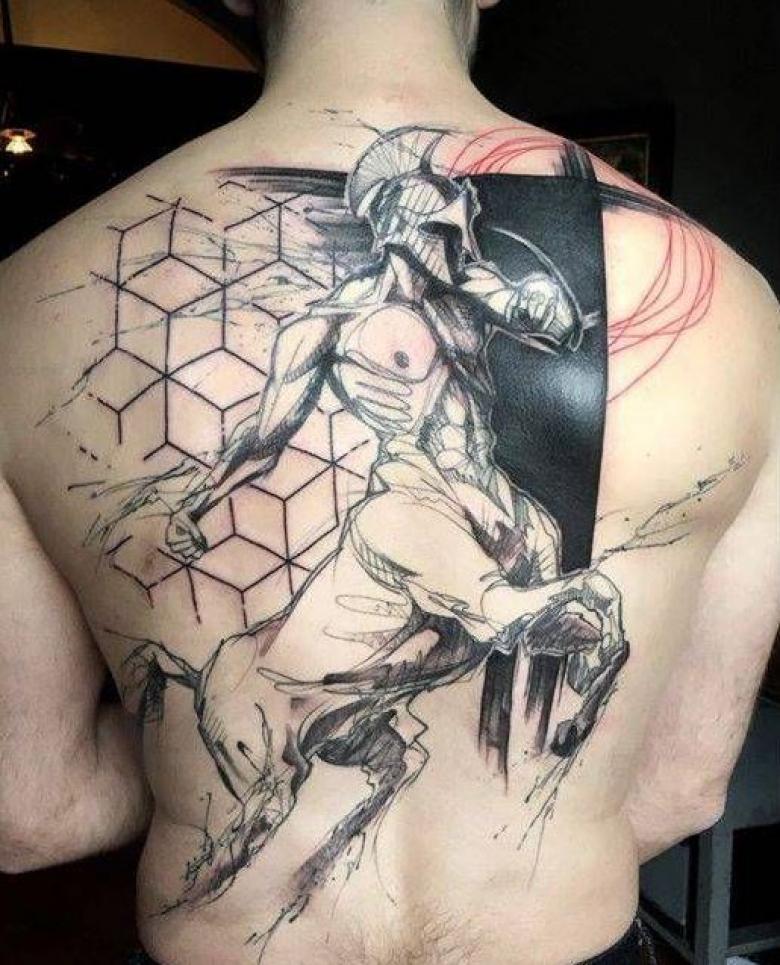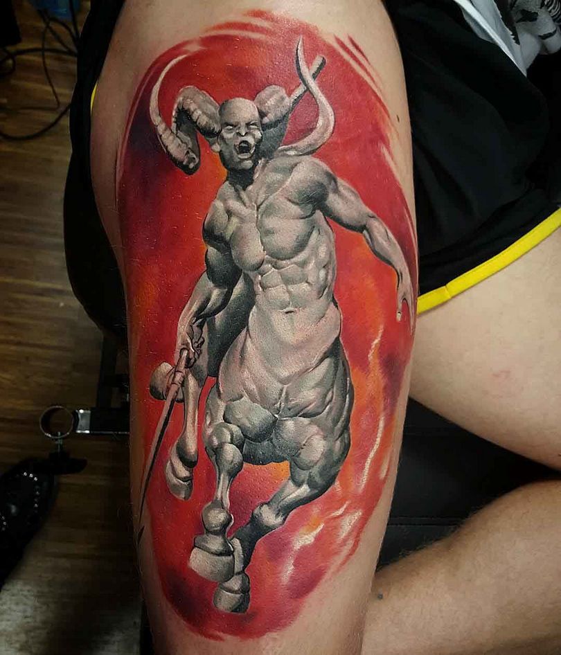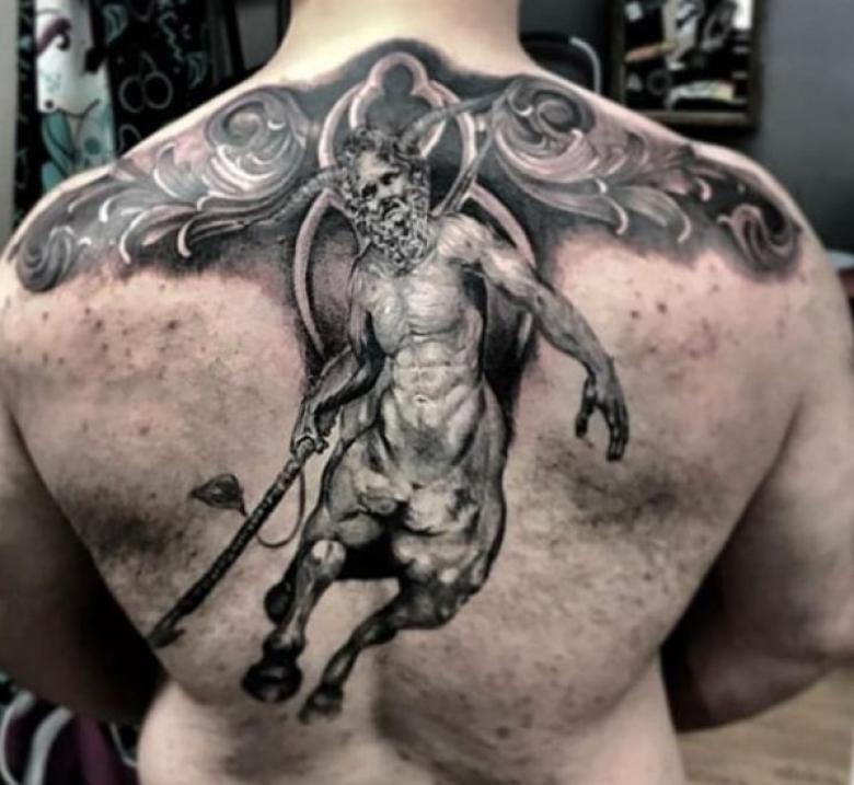 Le centaure - une incarnation de l'union de l'animal et de l'homme, deux facettes en une seule créature. Et le tatouage avec lui est le choix d'une personne ayant une vision non conventionnelle de la vie.