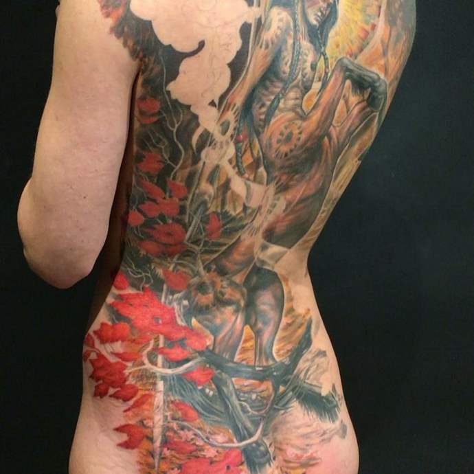 Le tatouage peut signifier l'agression, l'impitoyabilité, l'hostilité. Dans les légendes, les centaures sont des créatures indomptables, rien ne peut les dompter et les brider contre leur gré. Dans les mythes, ils obéissaient à Dionysos et suivaient ses ordres, le protégeaient et combattaient ses ennemis. Forts et guerriers, ils étaient impitoyables et cruels, prêts à tout pour leur maître. Personne d'autre ne pouvait les commander.