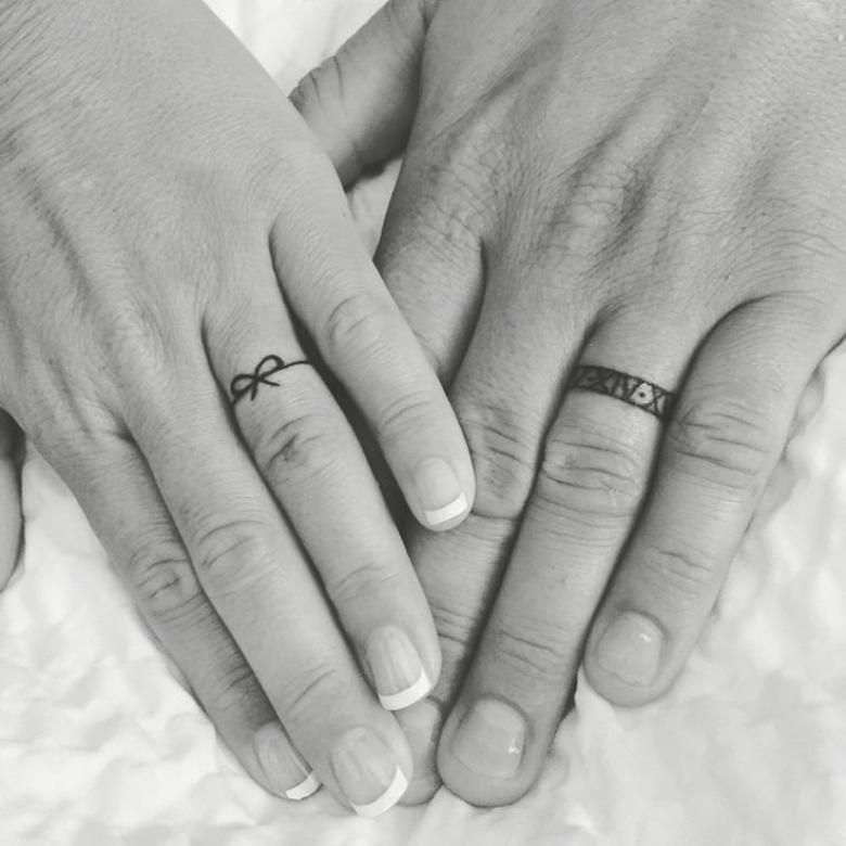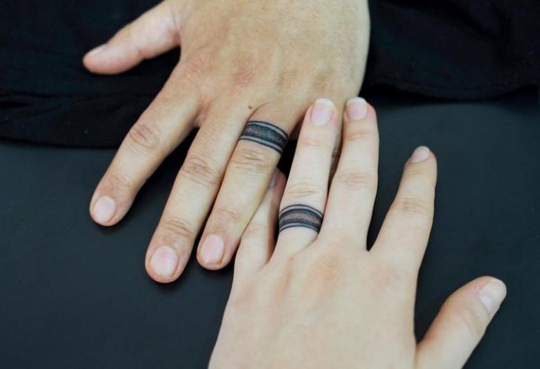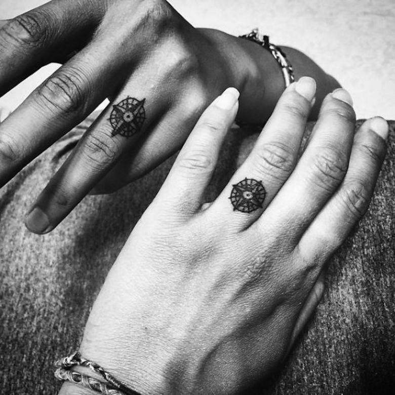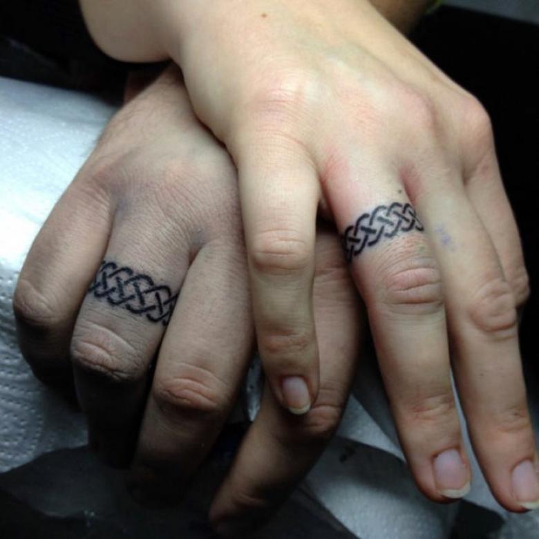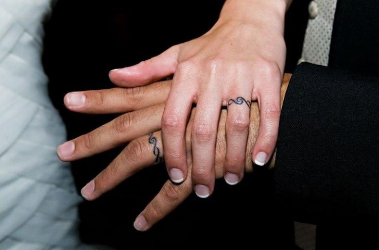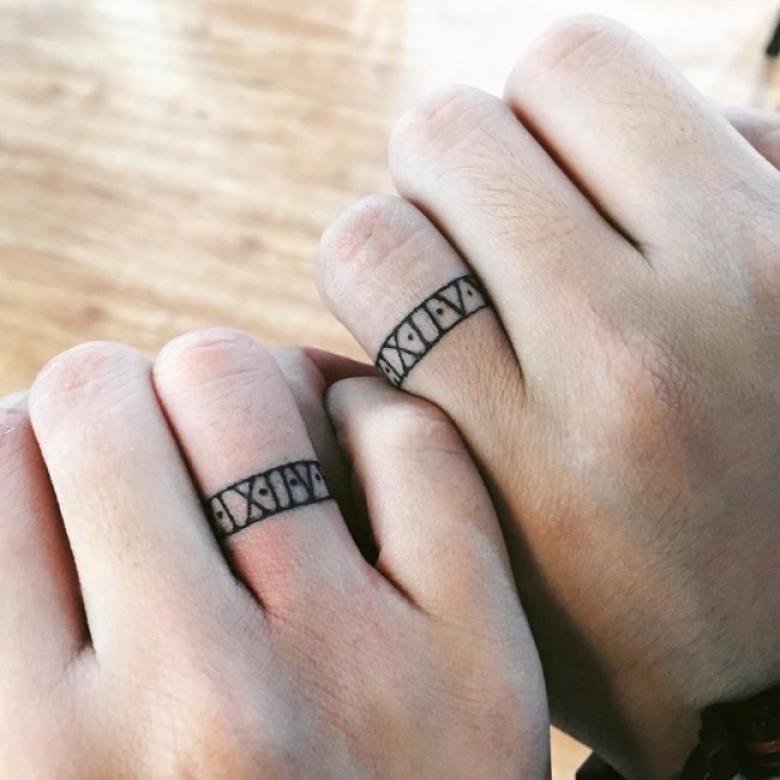 Pour les Indiens, un tatouage en forme d'anneau signifie la sagesse du monde. Dans la culture chrétienne, le lien entre le mariage et la spiritualité a été démontré de cette manière.