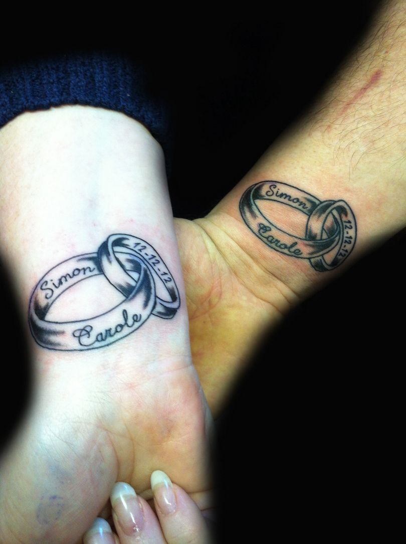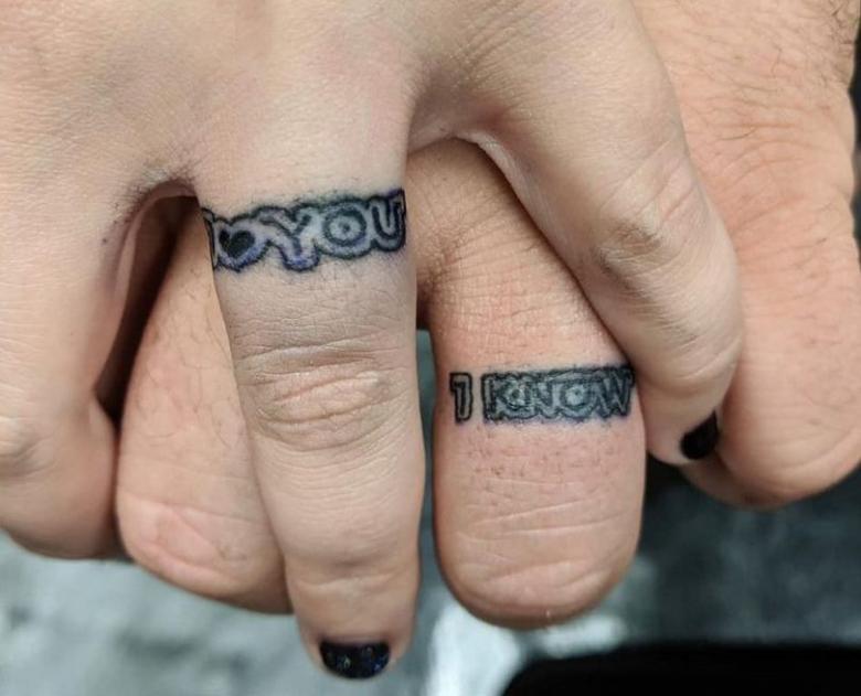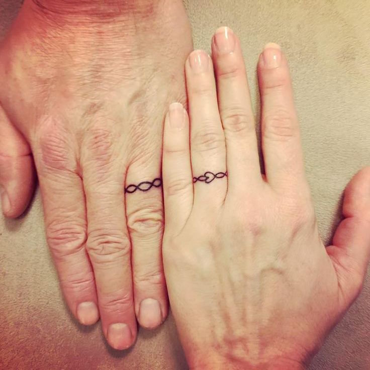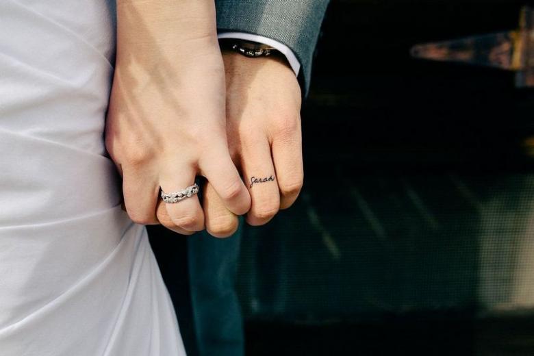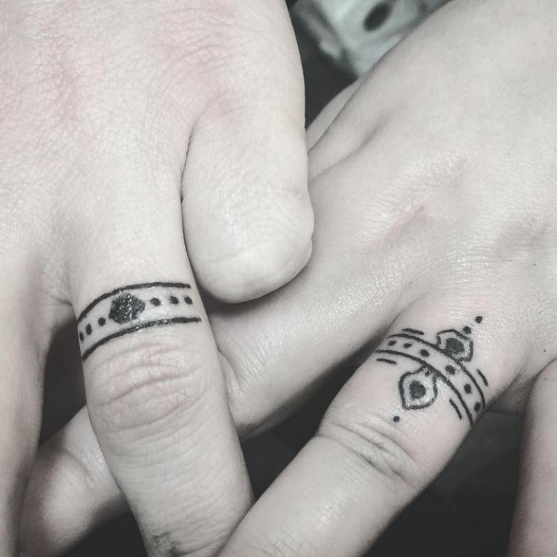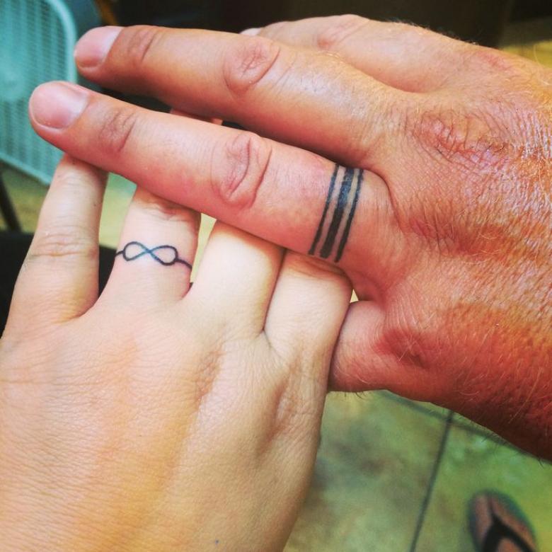 Pour les Indiens, un tatouage en forme d'anneau signifie la sagesse du monde. Dans la culture chrétienne, le lien entre le mariage et la spiritualité a été démontré de cette manière.