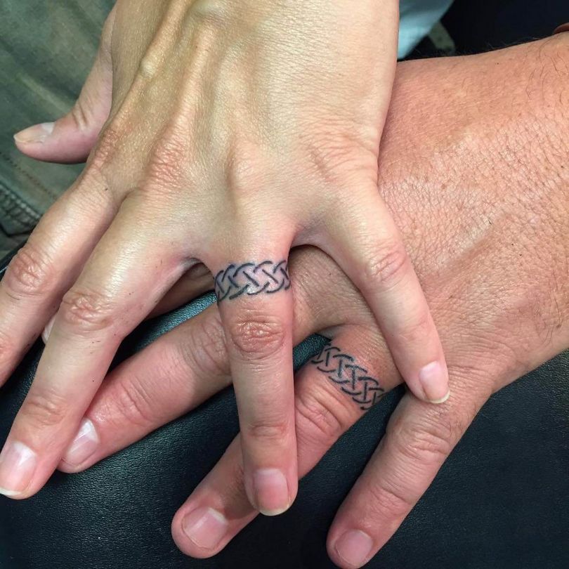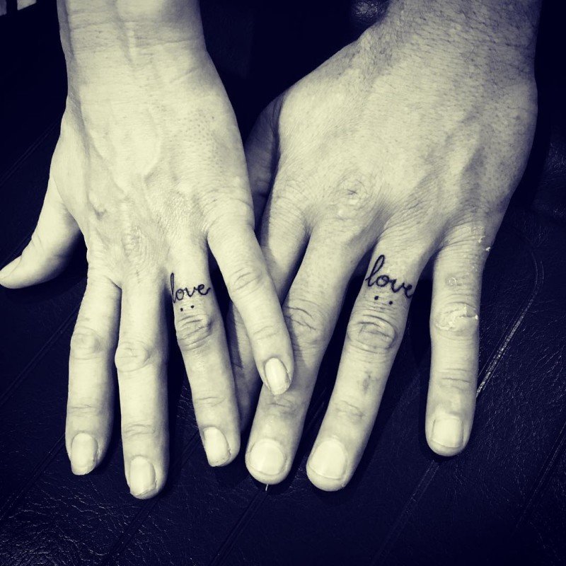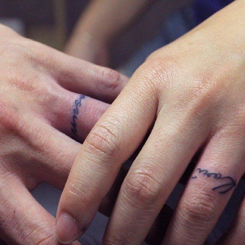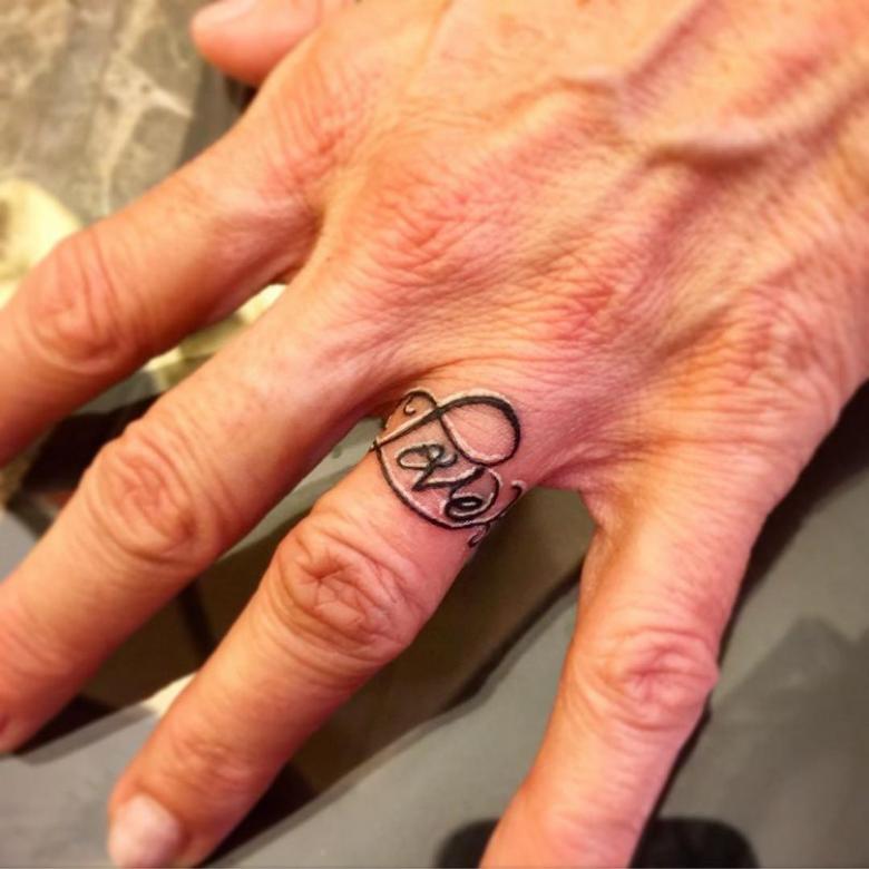 Parmi les célébrités, il y a un certain nombre de personnes qui ont choisi de porter une bague tatouée comme décoration de la main. Par exemple, le sex-symbol Pamela Anderson et son ex-mari Tommy Lee étaient mondialement connus pour leur relation tumultueuse, qu'ils aimaient afficher ouvertement, voire ouvertement.