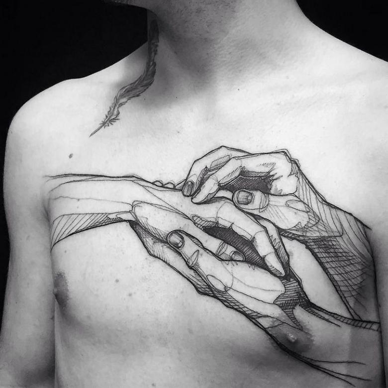 Contour de tatouage - croquis et motifs populaires (contour des mains, fille, fleur, cœur, rose, feu), styles, idées originales de photos