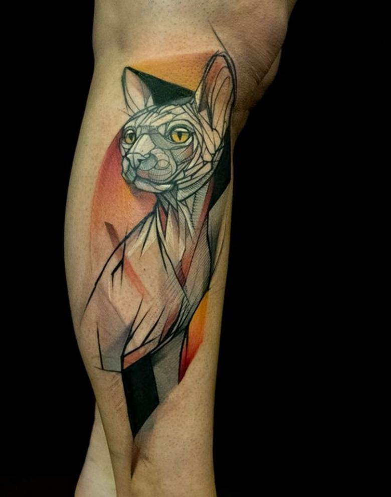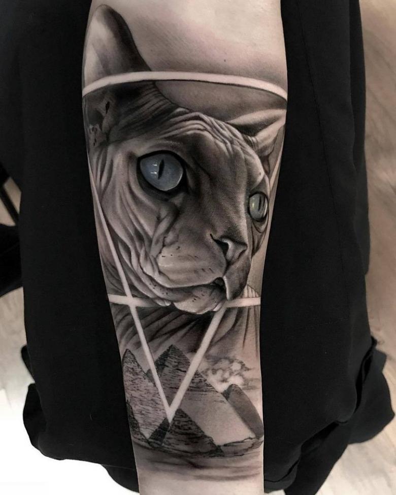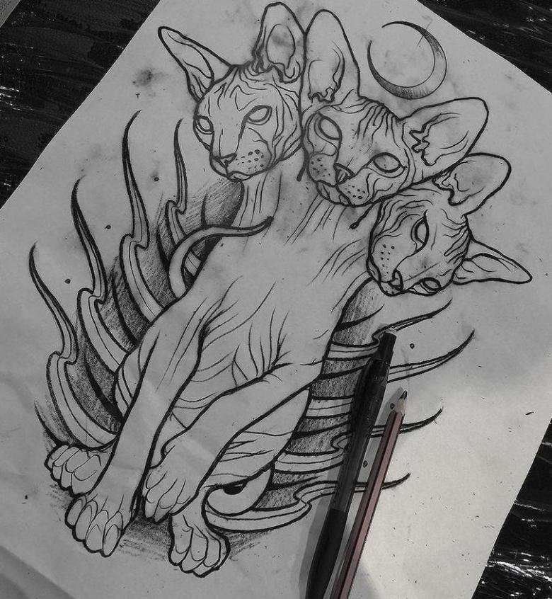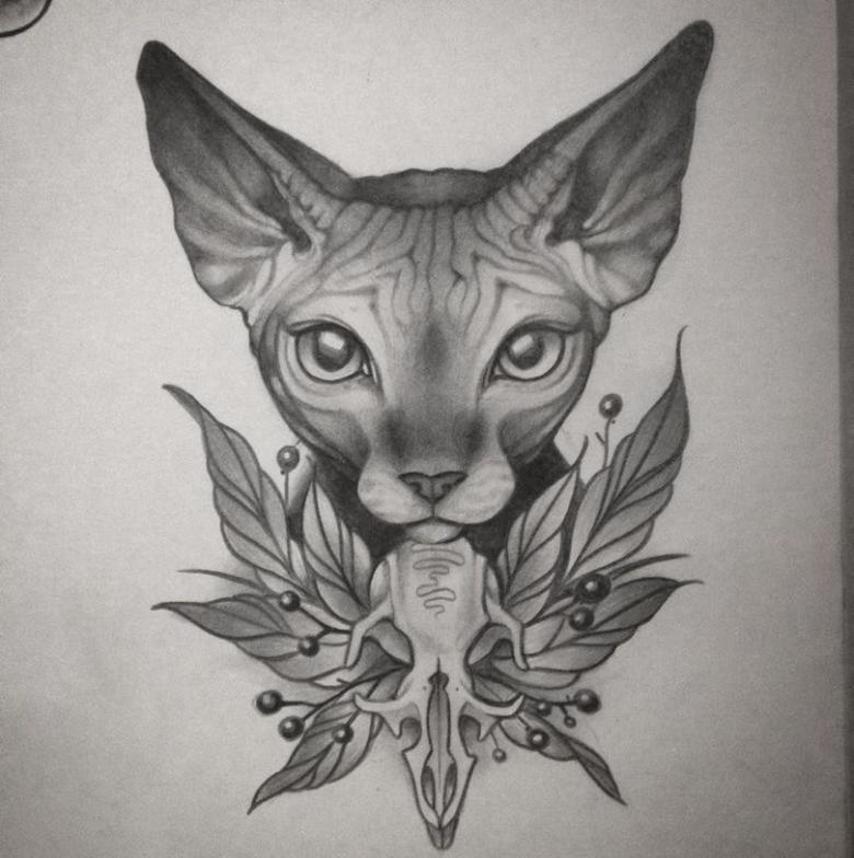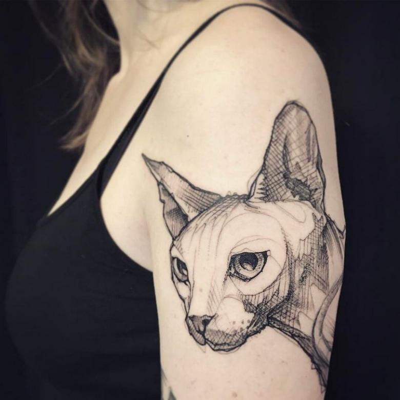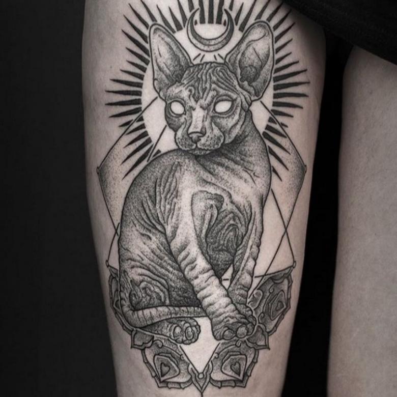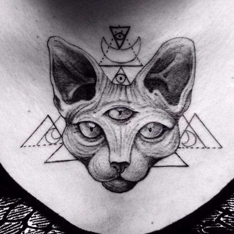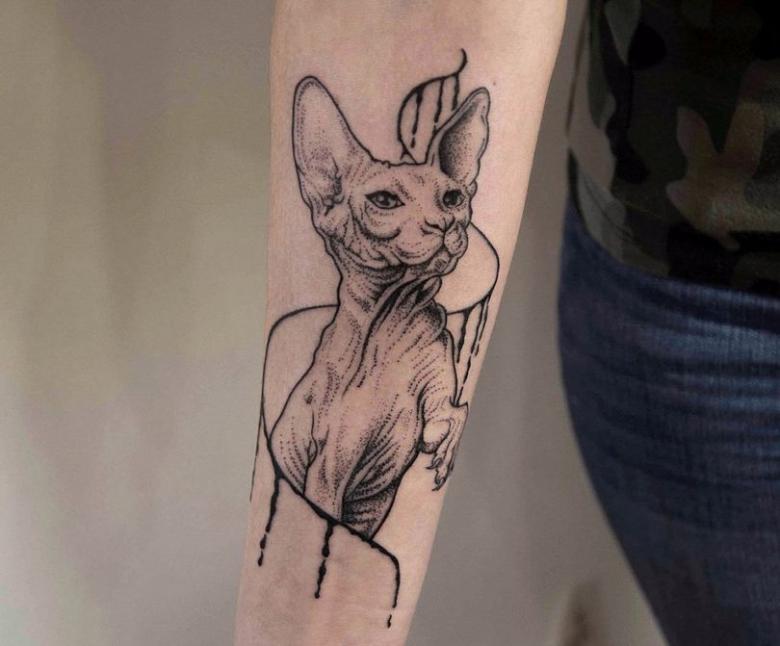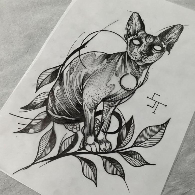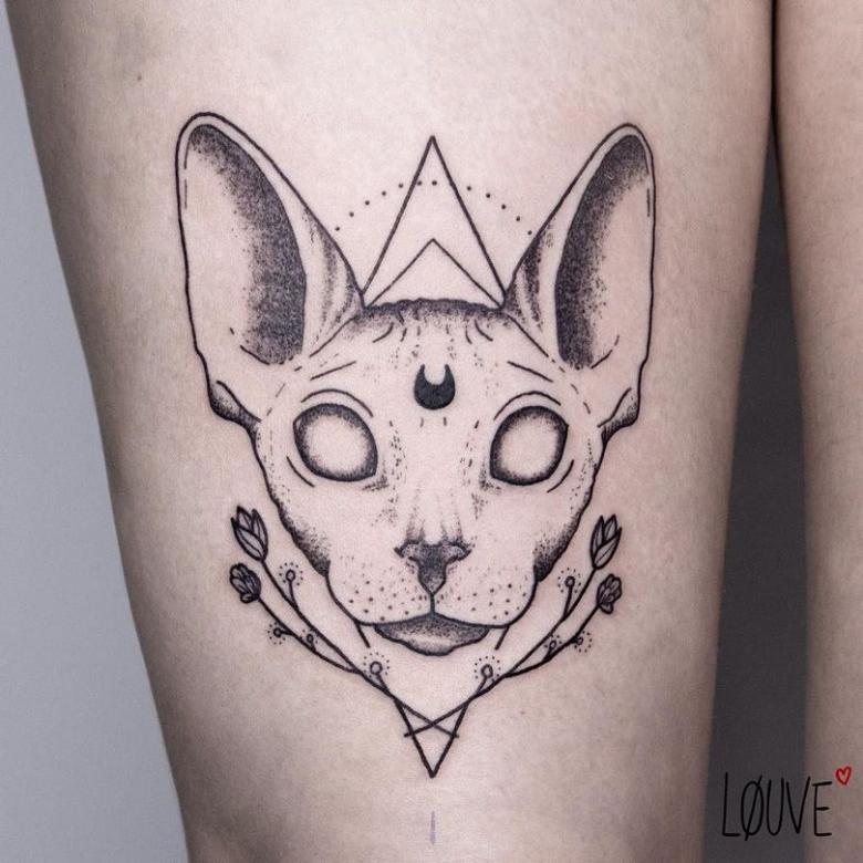 Tatouage chat sphinx - significations pour les filles et les hommes, styles populaires, croquis originaux et idées de photos