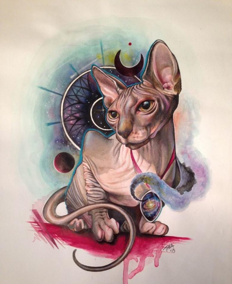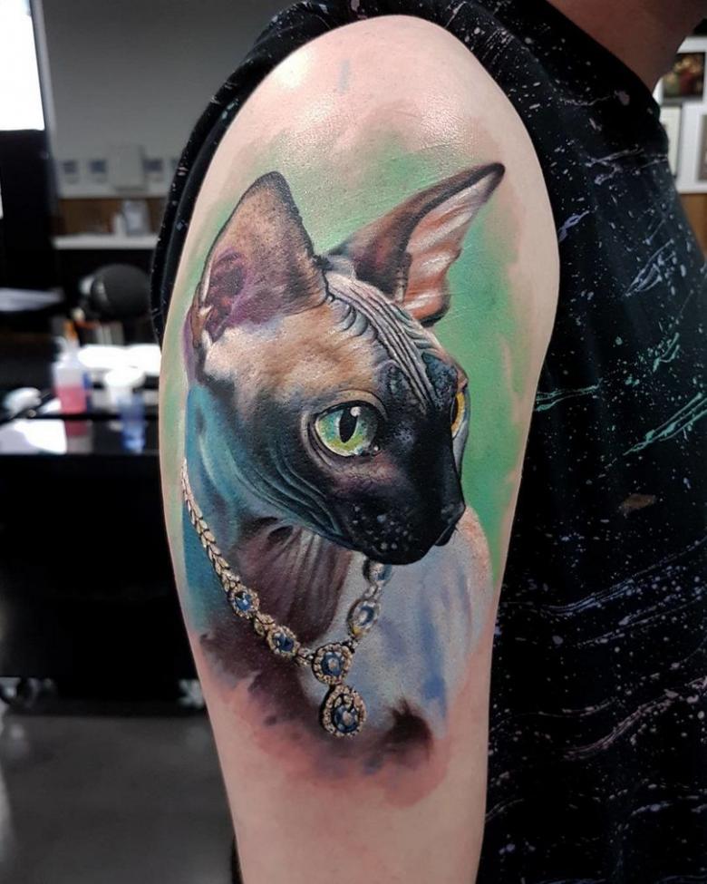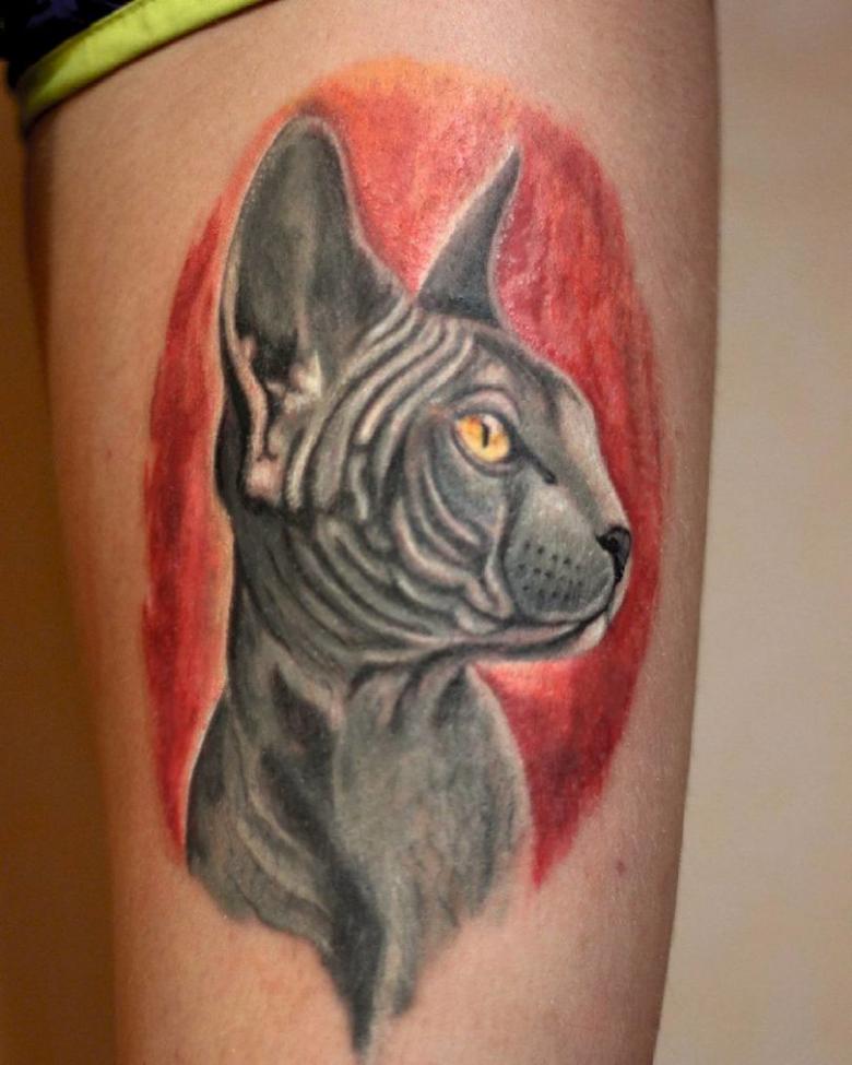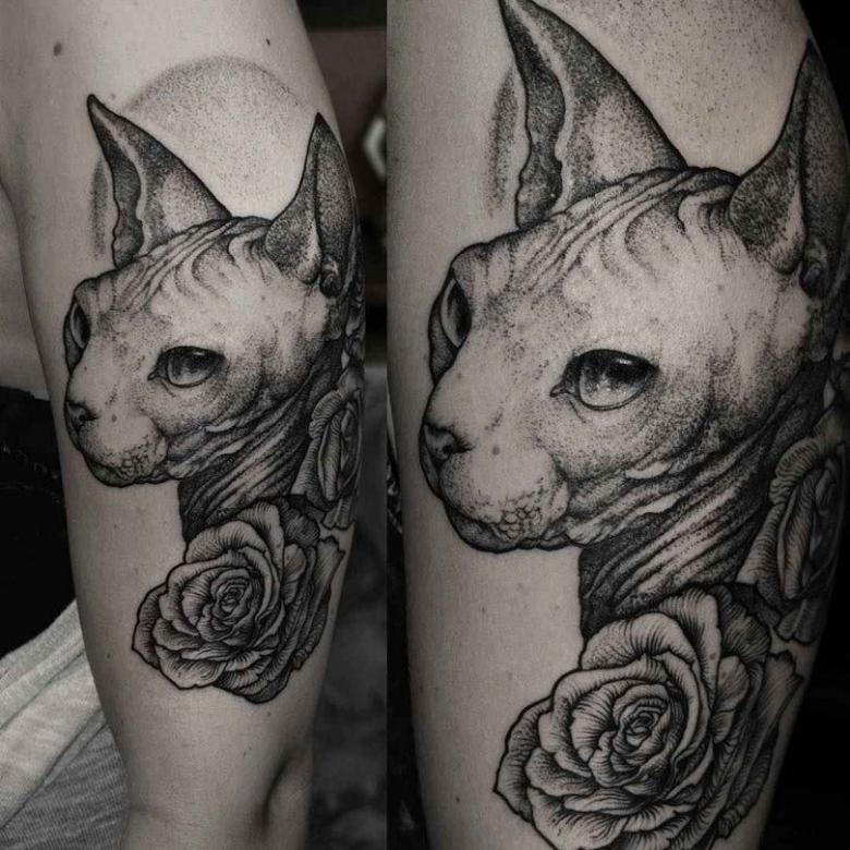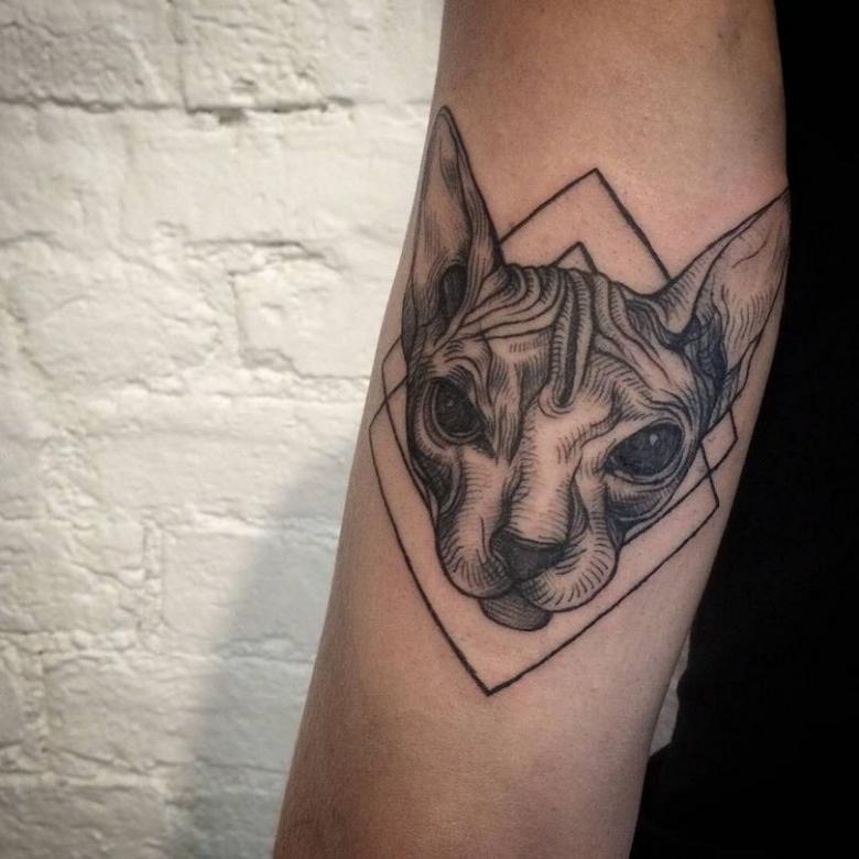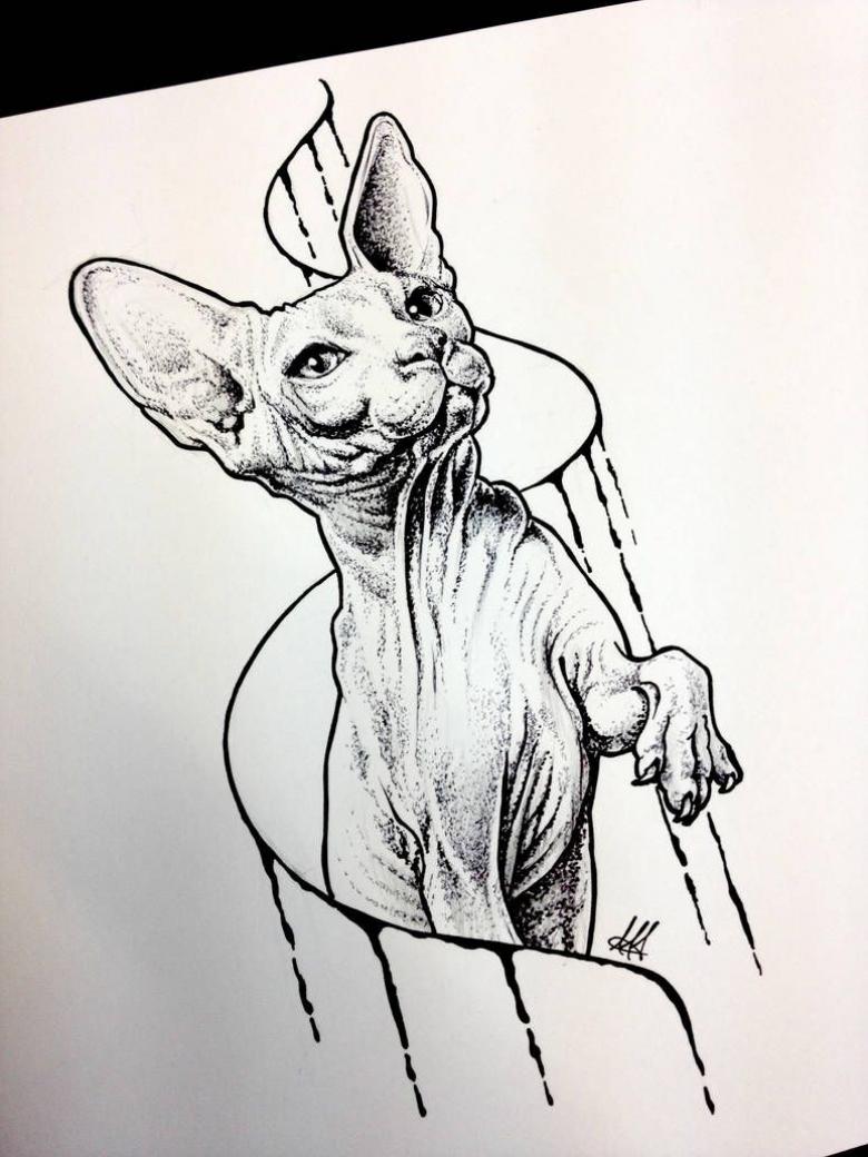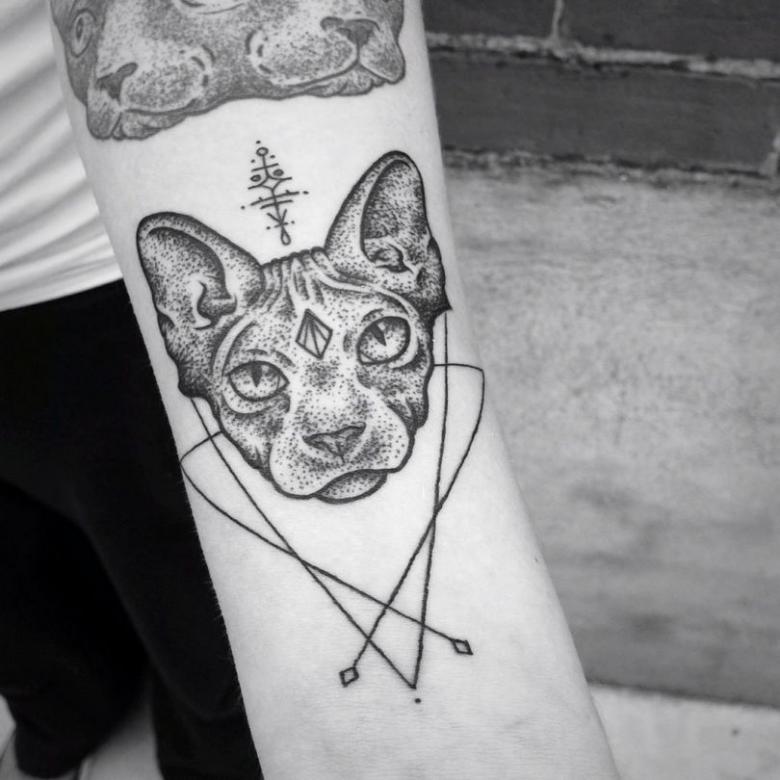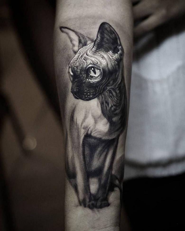Tatouage chat sphinx - significations pour les filles et les hommes, styles populaires, croquis originaux et idées de photos