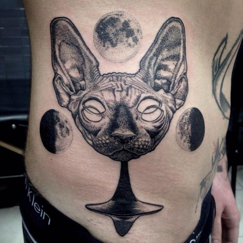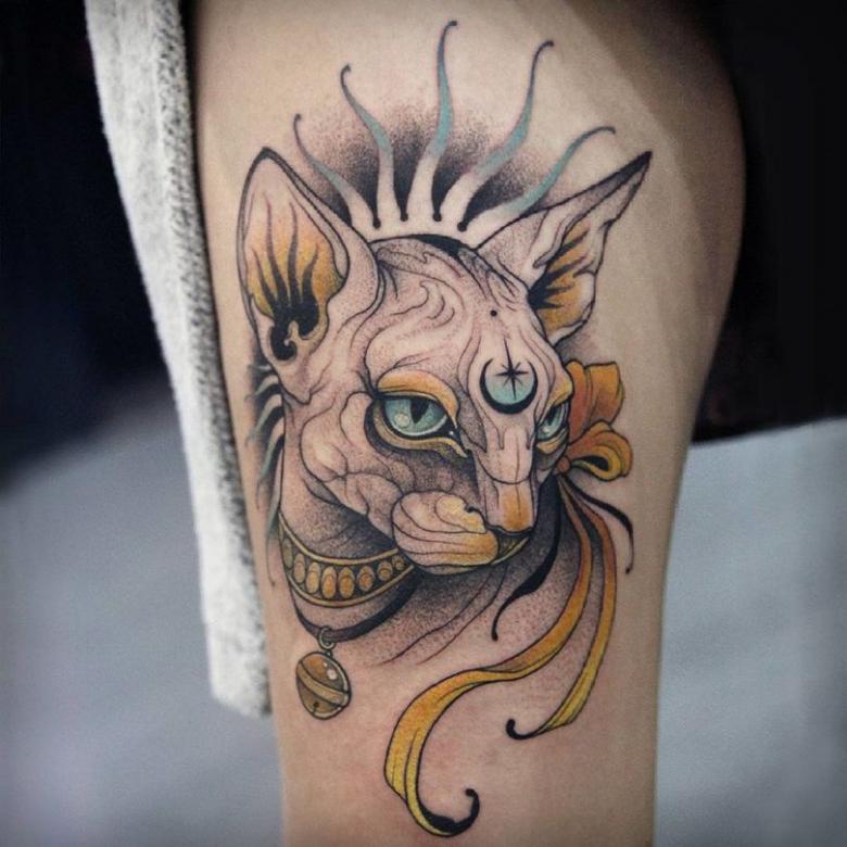Un tatouage sous la forme d'un chat sphinx signifie la présence des qualités humaines les plus audacieuses chez le tatoueur. Une analyse des critères de sélection pour le tatouage du chat sphinx, en s'appuyant sur la signification mythique particulière de l'animal.