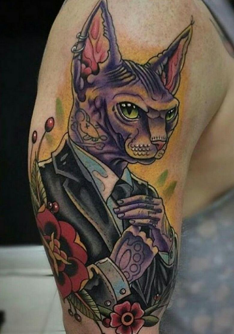 Les filles ne sont pas les seules à opter pour un tatouage de chat sphinx. Pour les hommes, l'image de cet animal est synonyme de réussite et de liberté vis-à-vis de l'opinion publique.