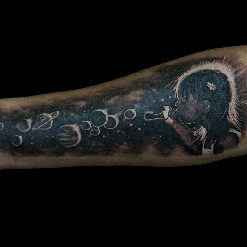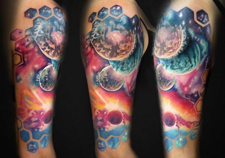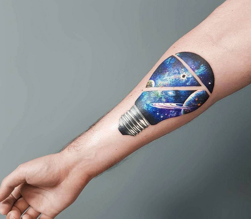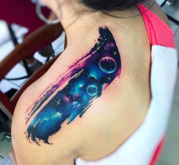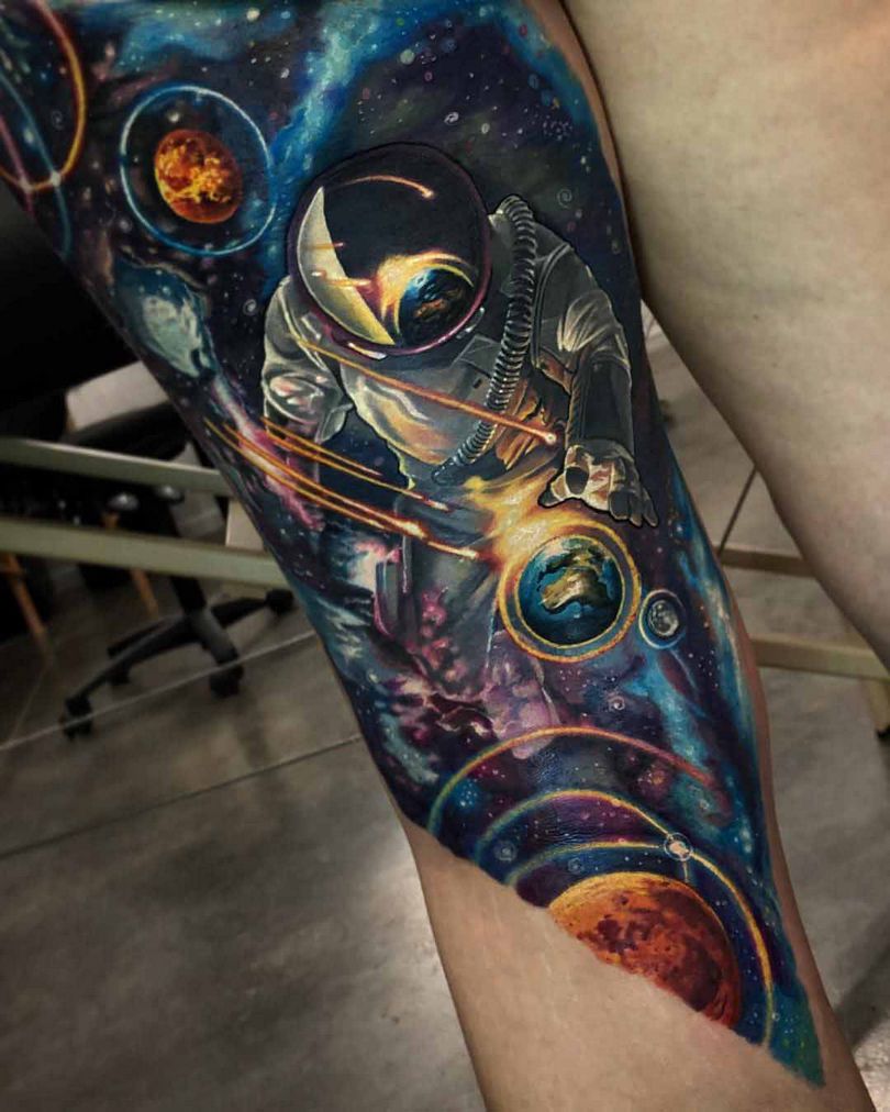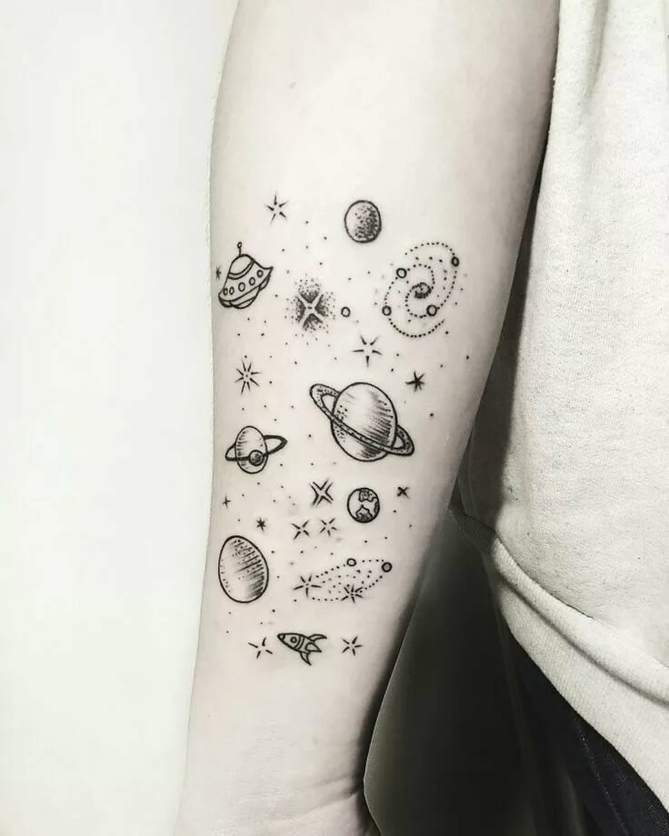 L'espace a de multiples facettes. Les jeunes et les personnes d'âge mûr, les hommes et les femmes trouveront leur propre composition. L'échelle de l'univers ne doit pas être transmise dans son intégralité. La technologie permet également de réaliser des tatouages plus petits. Mais d'abord, il convient de décider du thème du dessin.