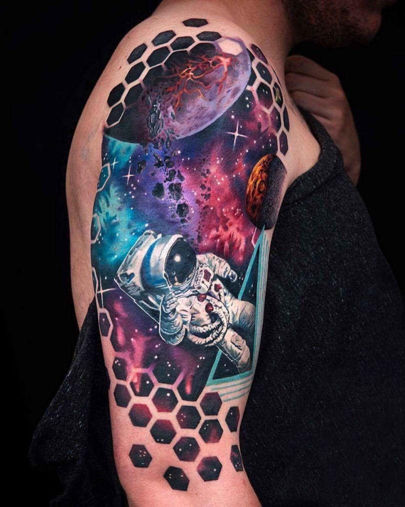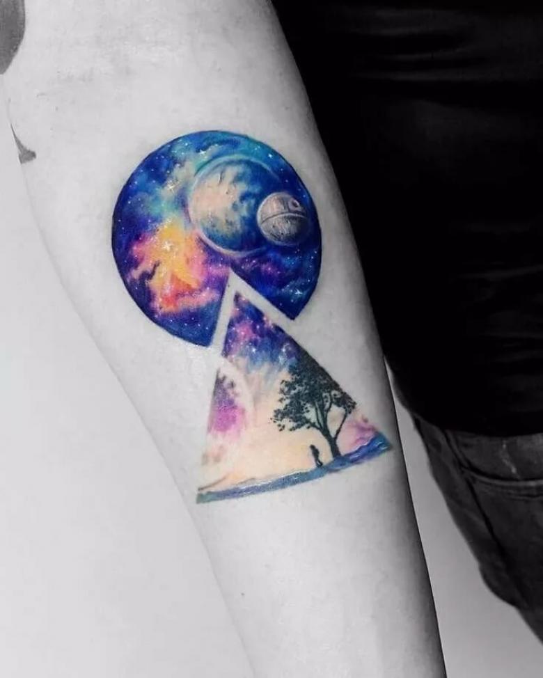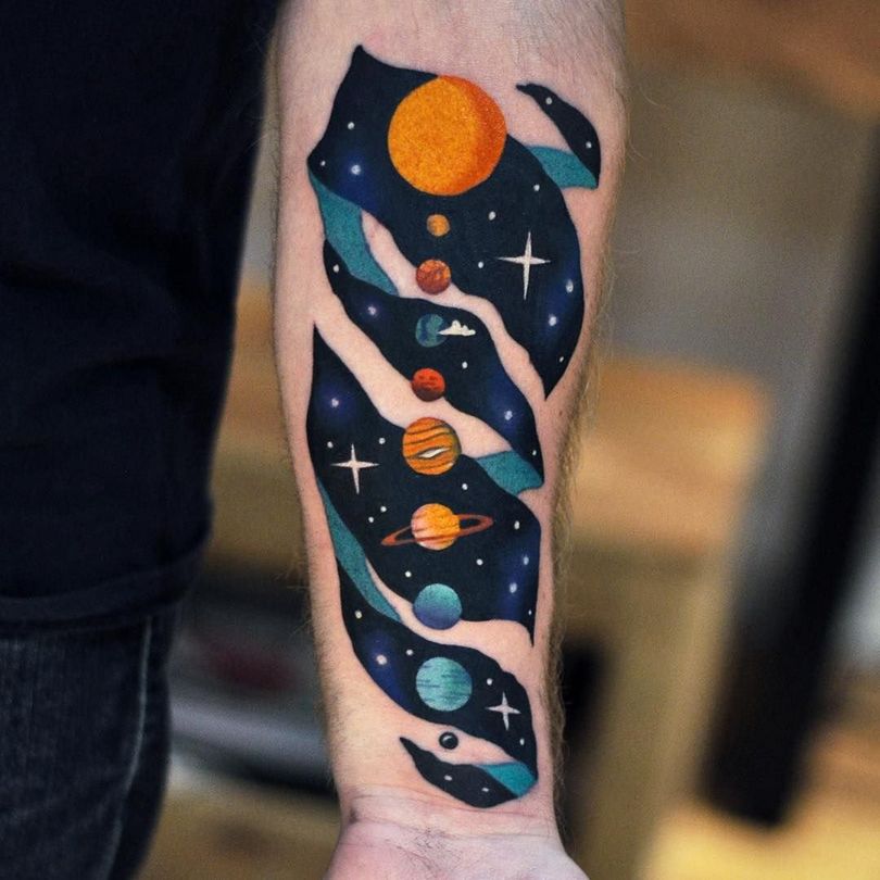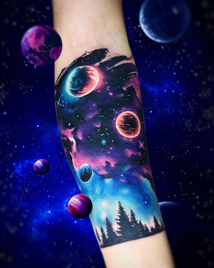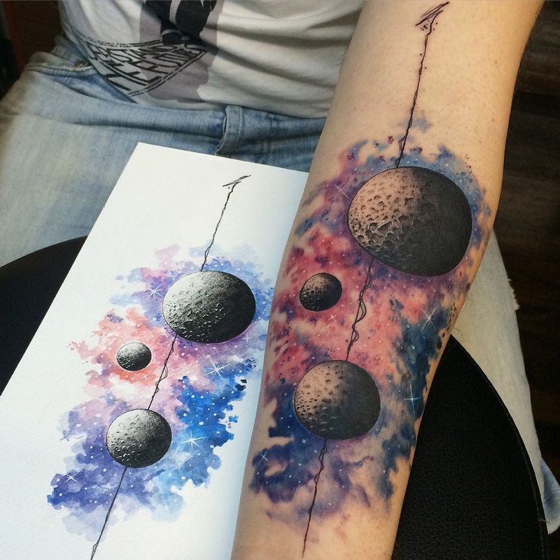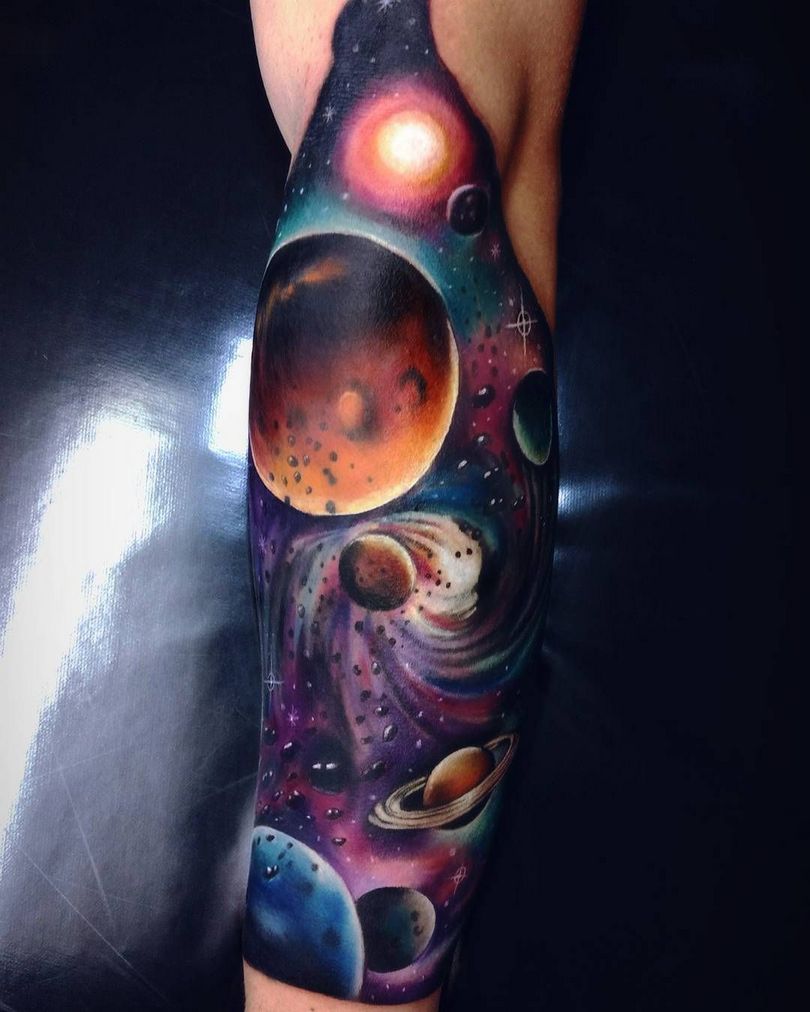 Le choix d'un tatouage spatial n'est qu'une partie du voyage. Ensuite, vous recherchez la couleur, la taille et le style artistique. Dans la nature, tout est soumis à des lois, mais l'art corporel est un art et les variations sont autorisées.