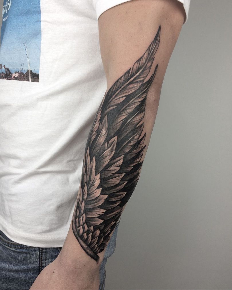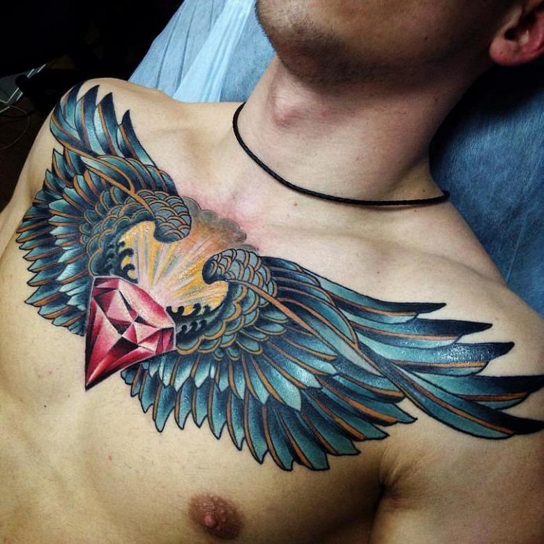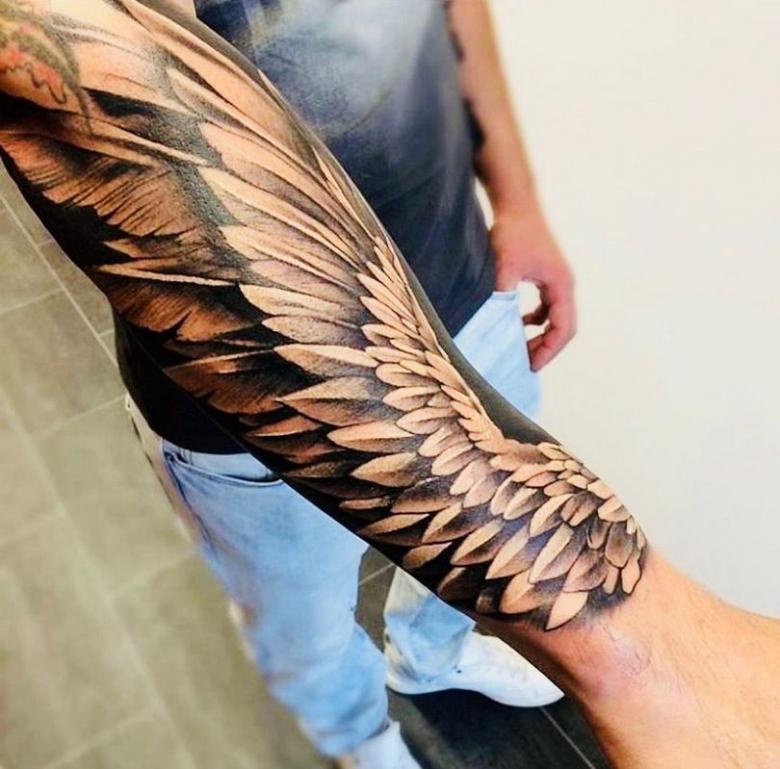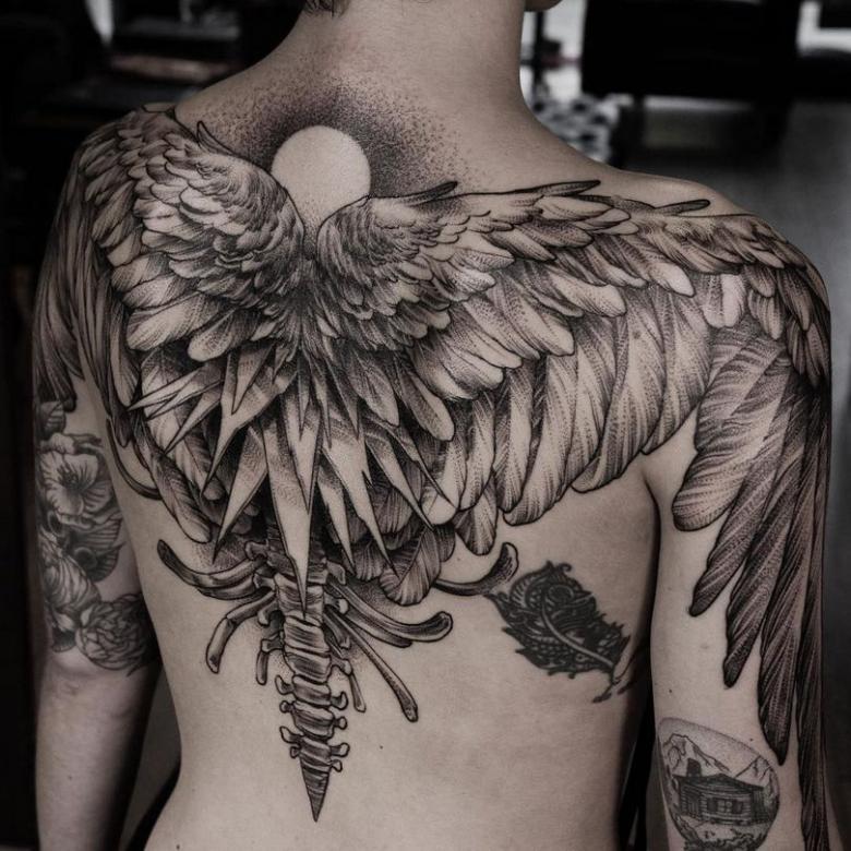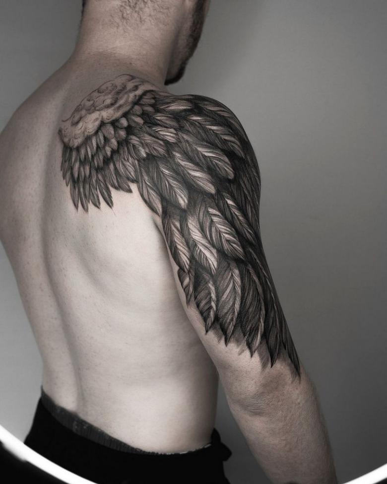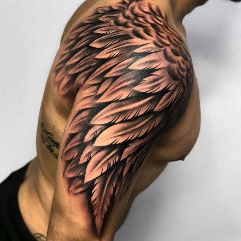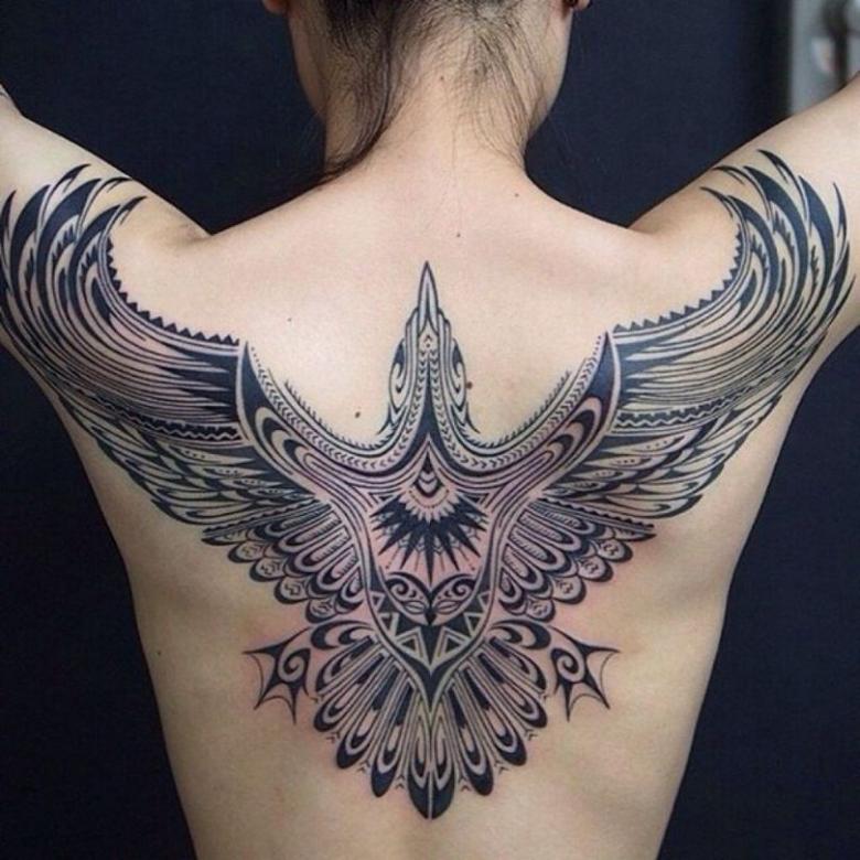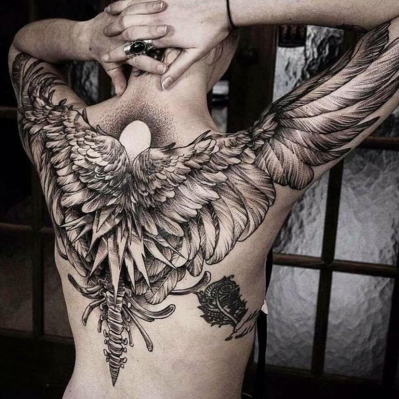 Les tatouages masculins présentent le plus souvent un dessin graphique monochrome d'ailes. En étant très grands, ils soulignent la puissance de celui qui les porte. Les principales significations du tatouage sont :