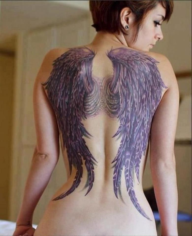 L'image populaire des ailes d'animaux dans les tatouages est souvent décorative, attire le regard et ajoute de la grâce à la silhouette d'une femme.