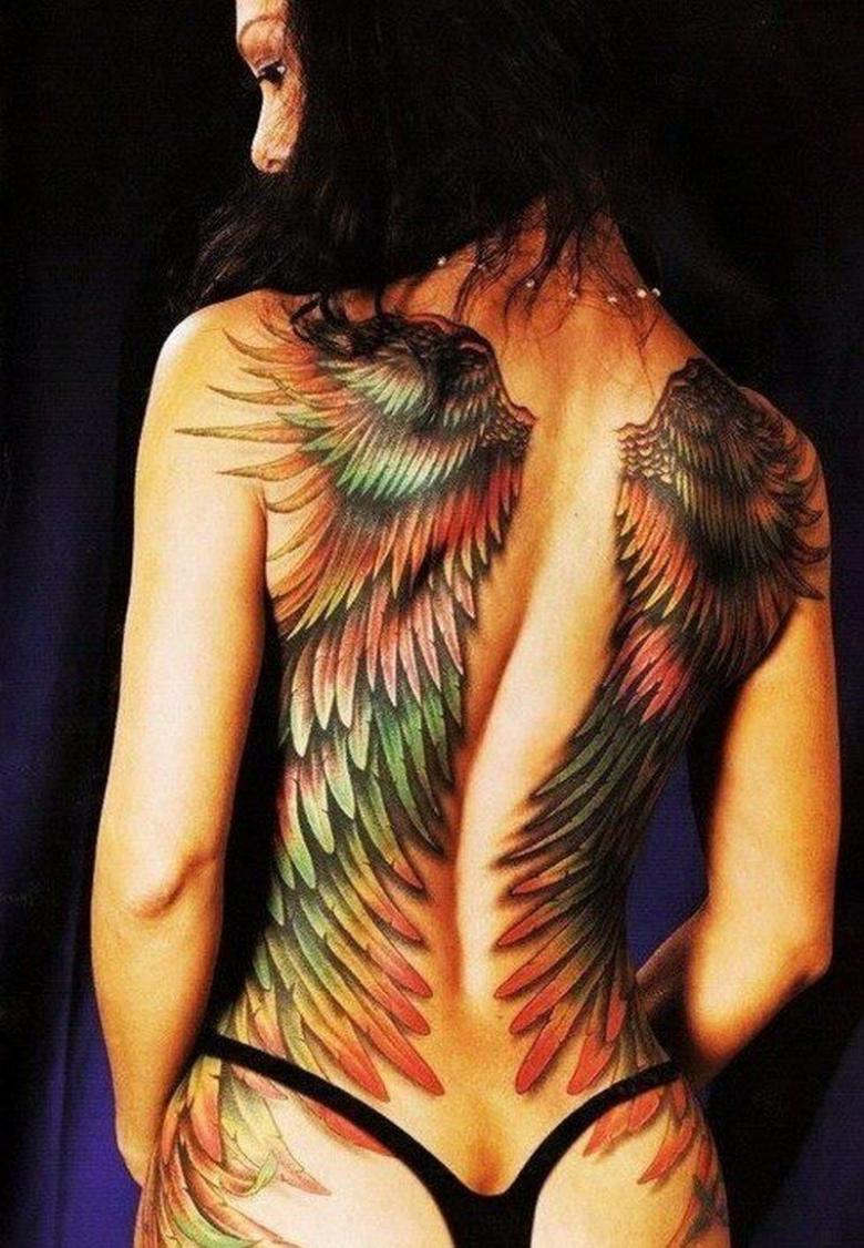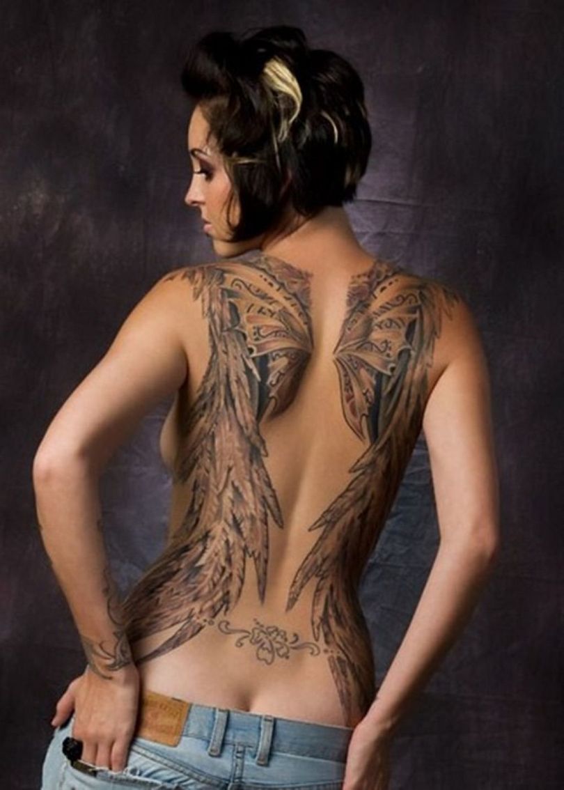 L'image populaire des ailes d'animaux dans les tatouages est souvent de nature décorative, attirant l'attention et ornant les courbes de la silhouette féminine.