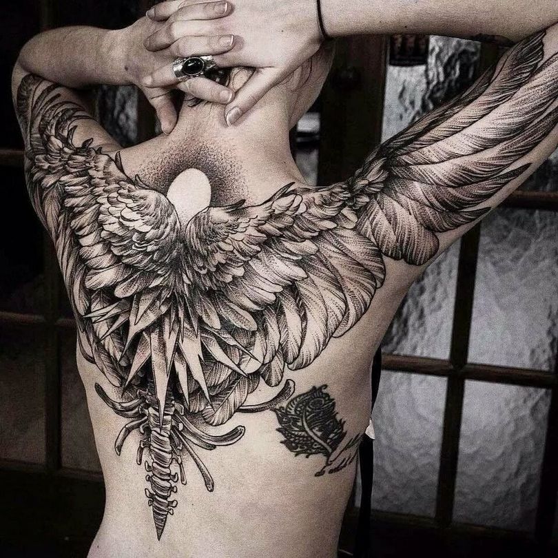 Un tatouage avec des ailes a depuis longtemps commencé à décorer le corps en signe de délivrance de quelque chose. De nos jours, la signification de l'image s'est élargie, portant des significations tant positives que négatives.
