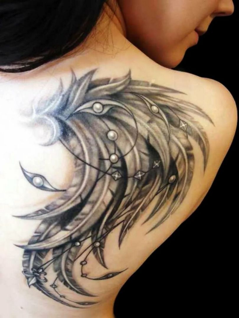 Les tatouages féminins présentent des ailes et sont marqués d'un motif délicat, de couleur claire. Le plus souvent, un tatouage avec des ailes suggère un sentiment de l'âme, laissant un résidu vif ou une incomplétude.
