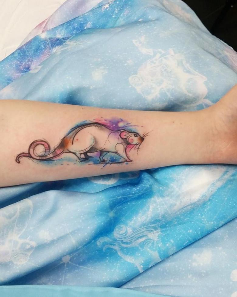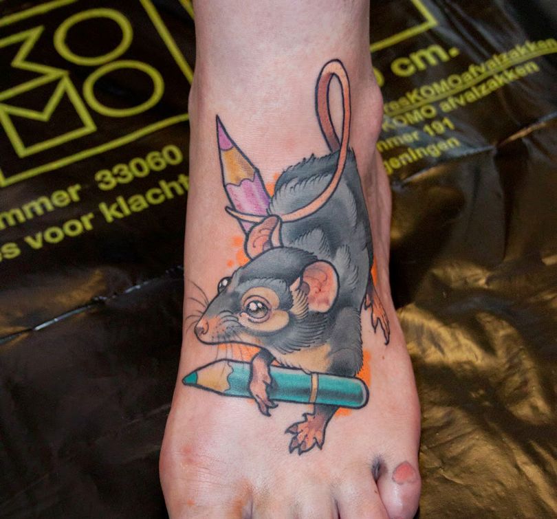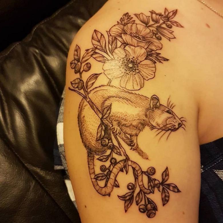 Les hommes mettent souvent l'image sur leur épaule en utilisant différents styles. Le plus souvent, les gars choisissent des croquis plus grands et plus détaillés du rat. Les filles, quant à elles, préfèrent un petit dessin discret. Les petits tatouages sont souvent placés sur la poitrine, l'omoplate, le poignet, l'abdomen et le bas du dos. Plus la signification est intime, plus la taille du tatouage est compacte. Les filles choisissent également un emplacement pour un tatouage dans les fesses et le bas du dos.