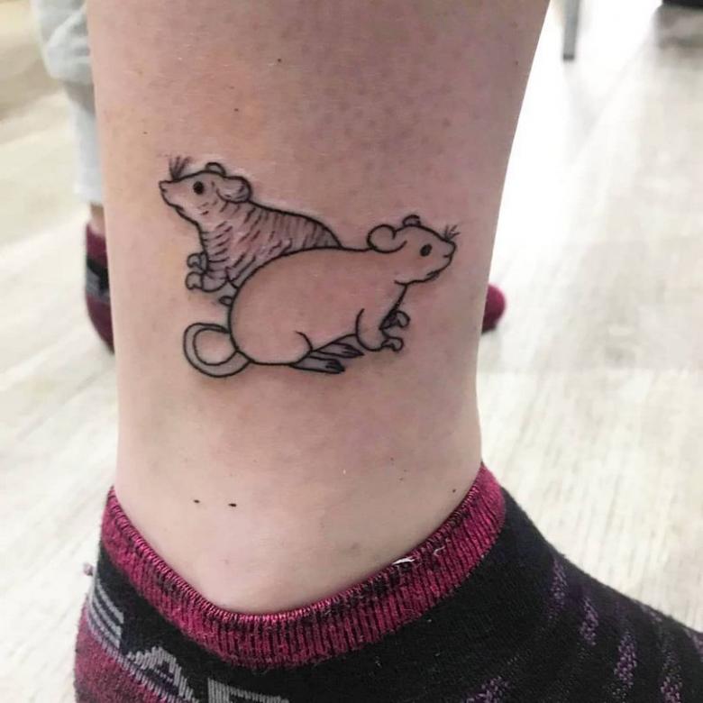 Les qualités des rats telles que : une fertilité et une endurance élevées, provoquent l'association avec une famille amicale, nombreuse et nombreuse. De nombreuses filles se font tatouer un rat pour attirer le bonheur maternel, pour trouver un partenaire fiable et aimant.