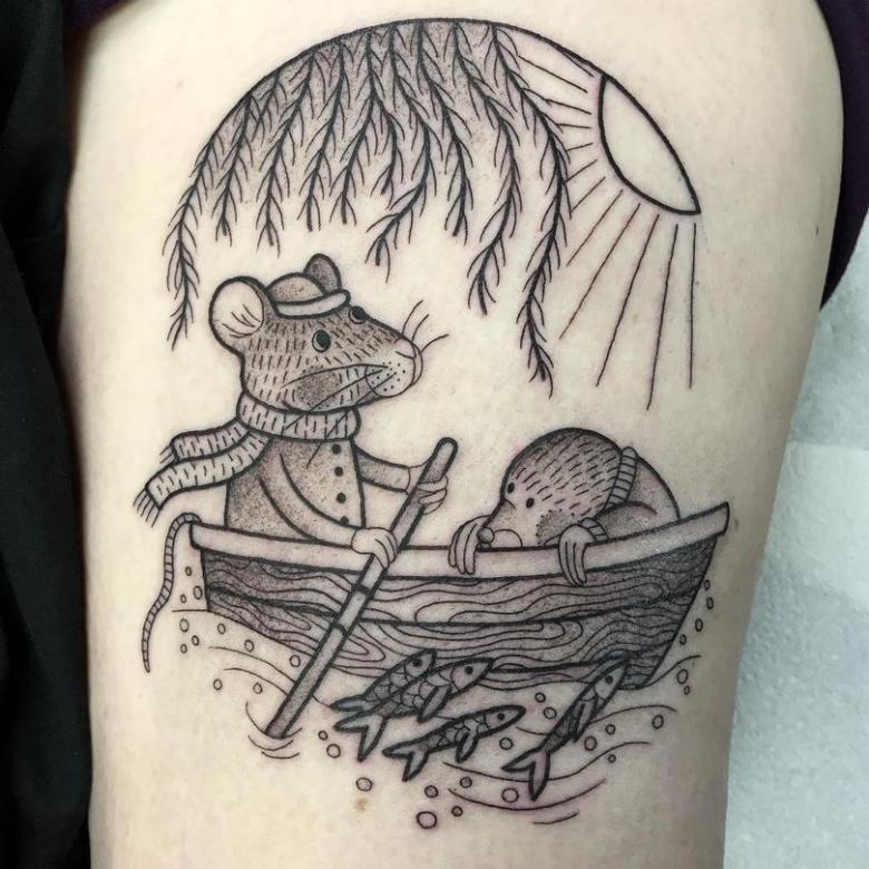 En général, ce tatouage n'est pas souhaitable si l'on compte parmi ses connaissances des personnes qui ont purgé une peine. Dans d'autres cas, l'image corporelle d'un animal n'est rien d'autre qu'une image originale. Les croquis sont souvent décorés sur le corps des personnes nées l'année du rat.