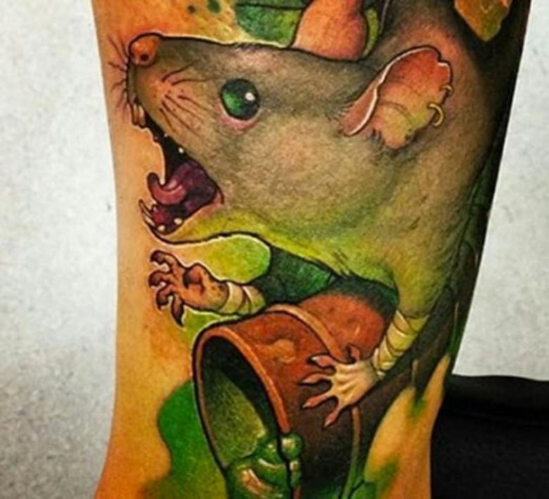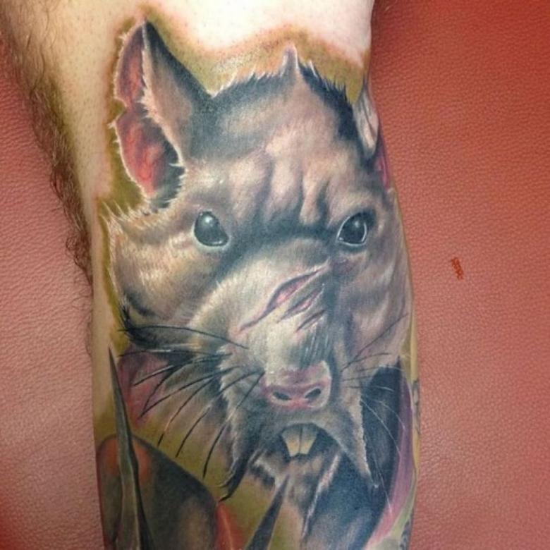 Les photos avec le rat agressif sont préférées par les hommes qui sont enclins à l'intrigue et savent comment gérer les gens. Le mauvais œil et les dents sanglantes de l'animal sur le tatouage signifient la vindicte et la sournoiserie. Les personnes ayant un tel thème de tatouage sont très intelligentes, elles poursuivent leurs objectifs par tous les moyens nécessaires, elles sont prêtes à tricher, à piéger et peuvent intimider les autres et en être heureuses, surtout si cela leur profite d'une manière ou d'une autre.