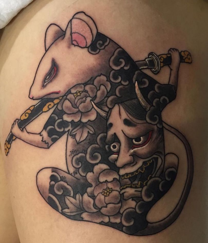 En Orient, on pense que les rats choisissent de vivre dans des maisons cossues. Pour cette raison, on pense qu'ils apportent la richesse en éradiquant la pauvreté. Il s'agit d'une représentation symbolique du monde des affaires pour certains hommes d'affaires, et par conséquent, les propriétaires de ces tatouages sont souvent avisés, vigilants et à l'affût de tout avantage.