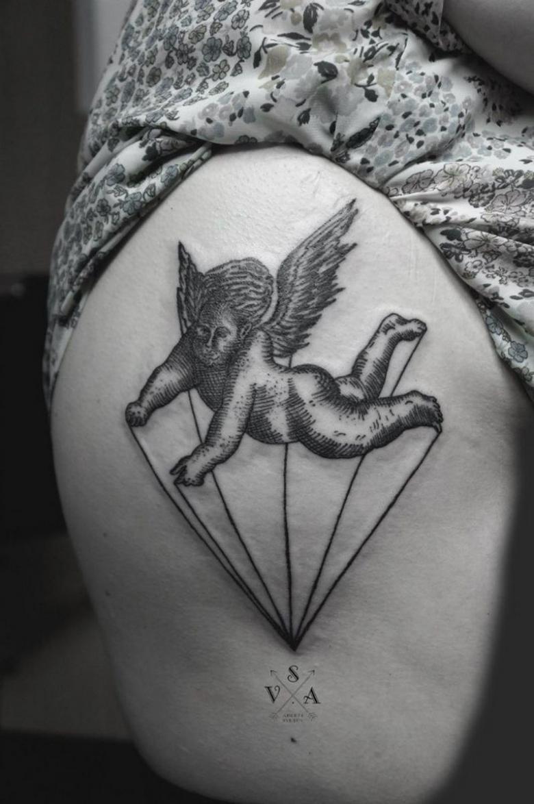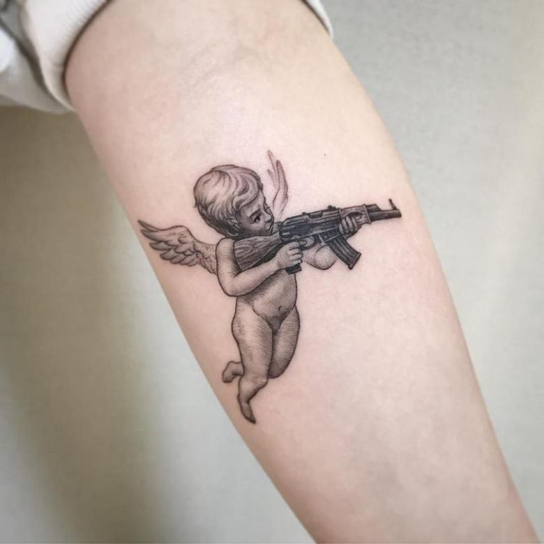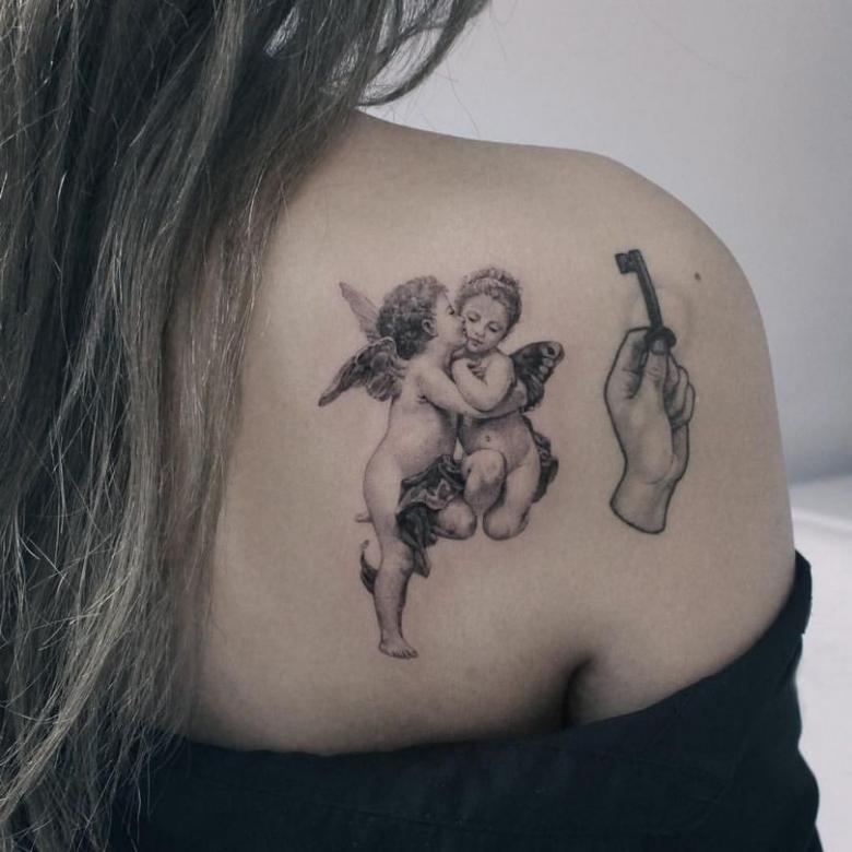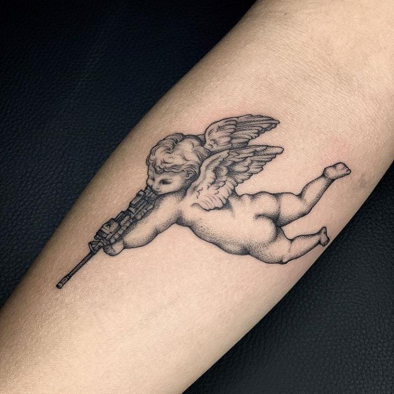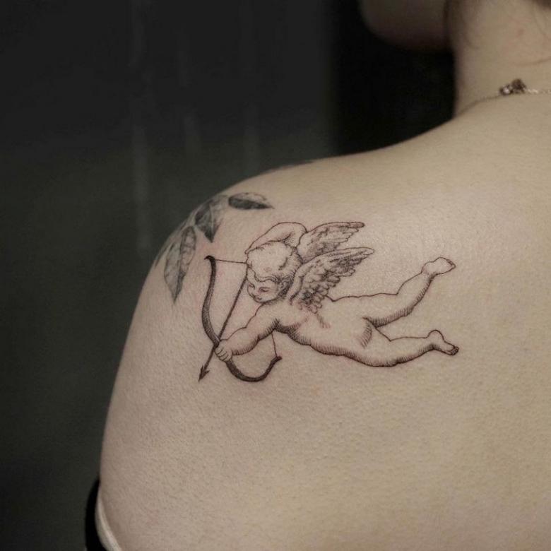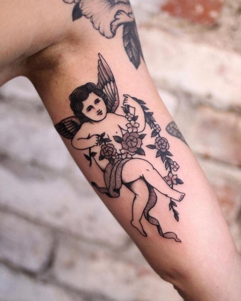 Tatouage Cupidon - significations pour les filles et les hommes, vignettes, photos et vidéos