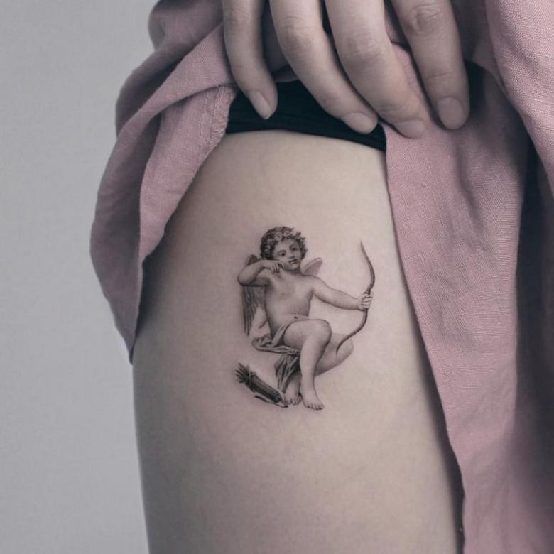 Les tatouages avec Cupidon sont très populaires auprès des filles, car il symbolise principalement la sensualité et l'amour.