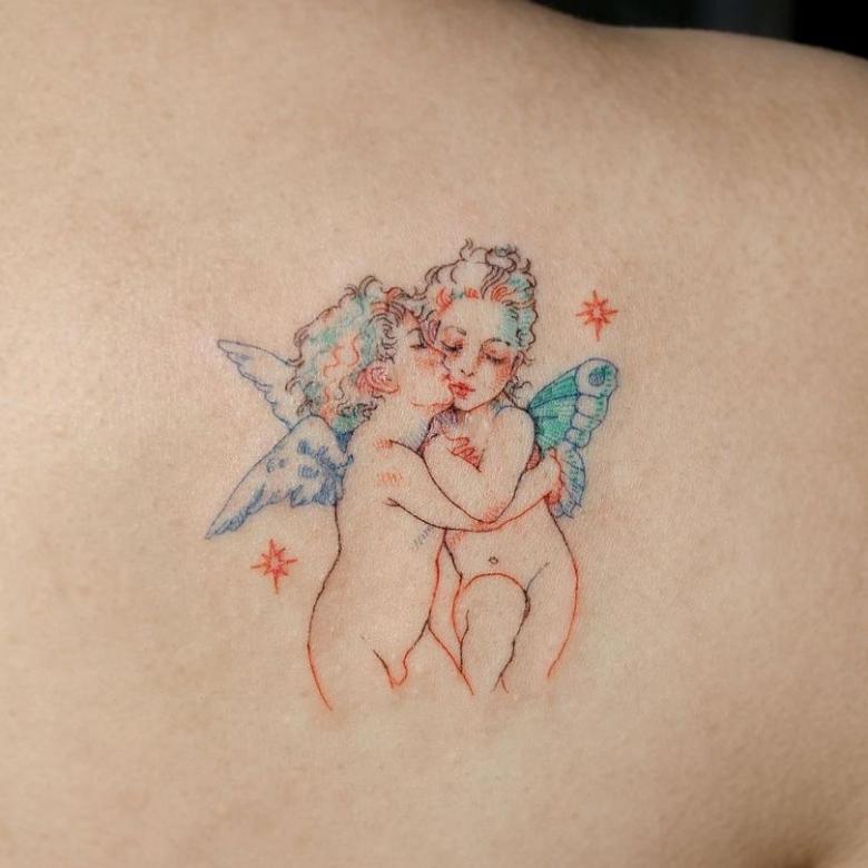 Le tatouage d'ange est un bon symbole pour attirer l'énergie de l'amour, il est donc préféré non seulement par les couples amoureux, mais aussi par ceux qui souhaitent rencontrer leur âme sœur.