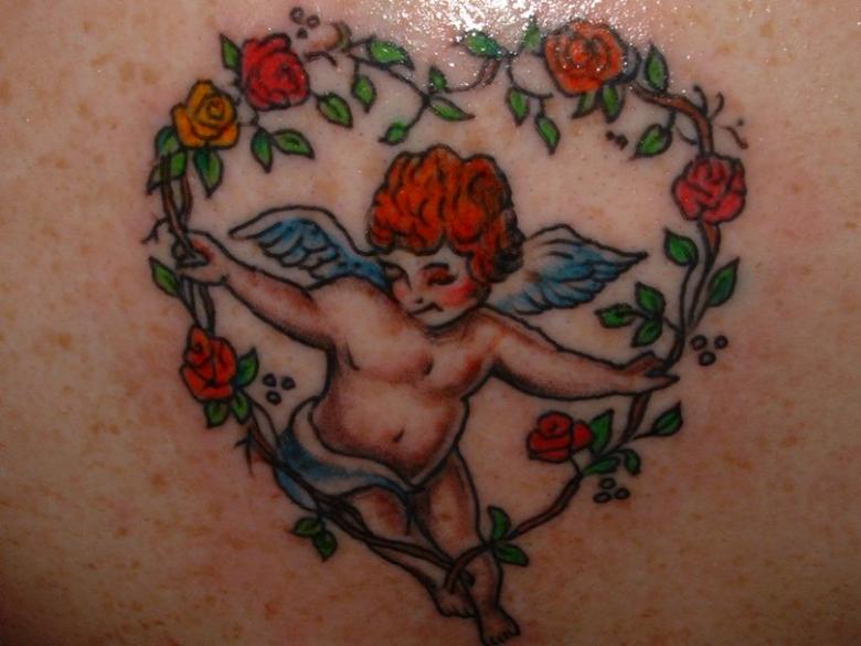 Habituellement, l'ange de l'amour est représenté comme un petit garçon joufflu tenant un arc et une flèche, les magnifiques ailes de Cupidon étant peintes sur son dos. Le tatouage peut être coloré ou d'un seul ton.