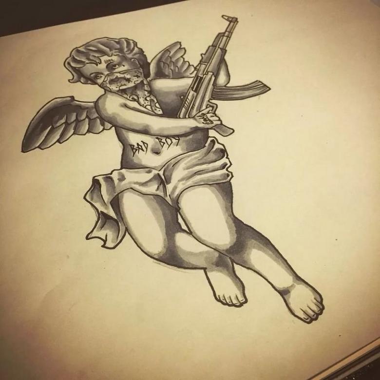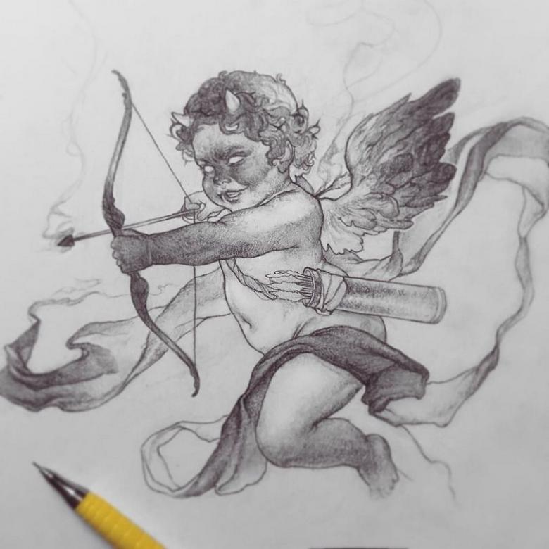 Les salons de tatouage proposent des croquis de différentes variantes de l'image de Cupidon :