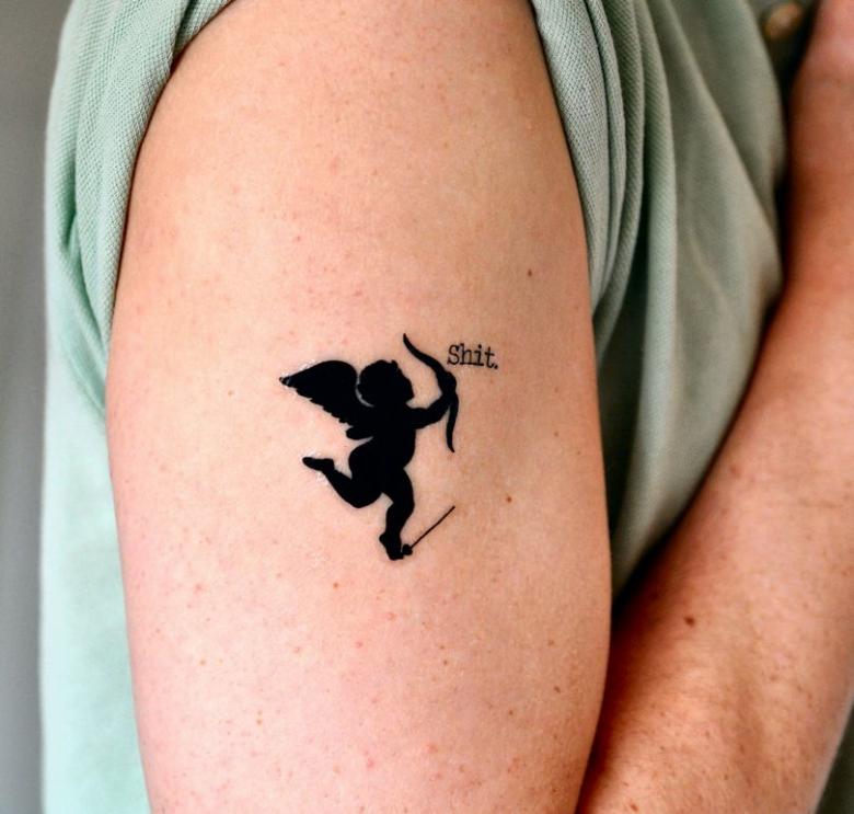 Un tatouage représentant un Cupidon endormi avec un pistolet plié peut signifier une déception répétée ou une mauvaise expérience dans une relation amoureuse. Il est probable que le porteur du tatouage ait été indifférent à la personne aimée ou que le partenaire ne l'ait pas apprécié. Le tatouage d'un amour brisé est un souvenir durable. Le tatouage d'un ange fatigué symbolise donc une histoire d'amour triste.