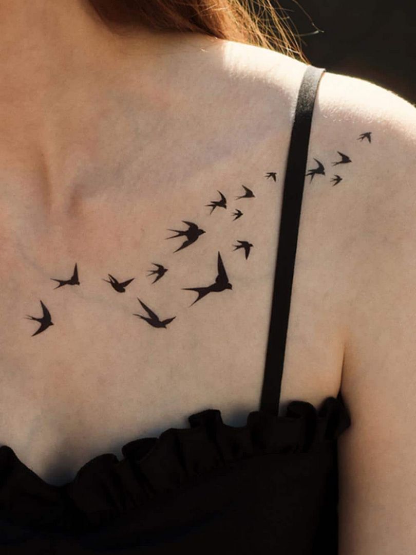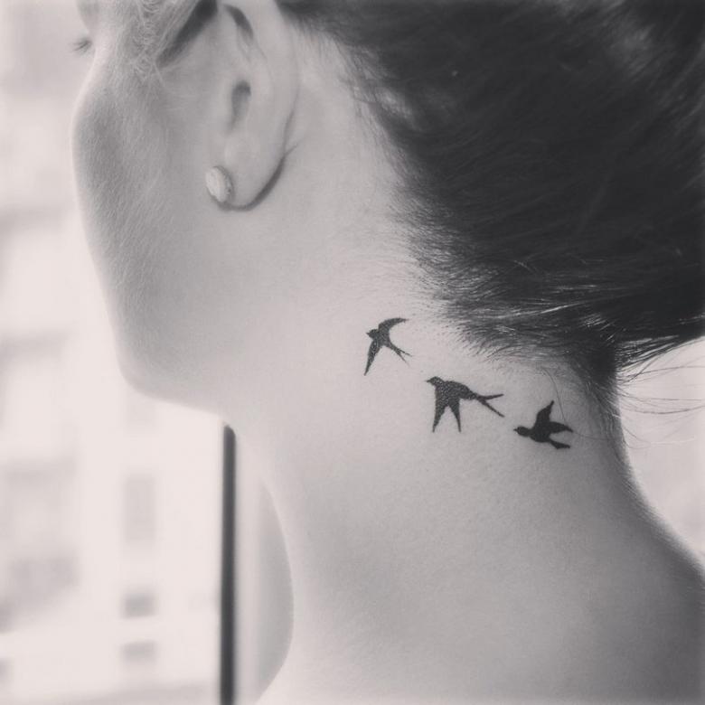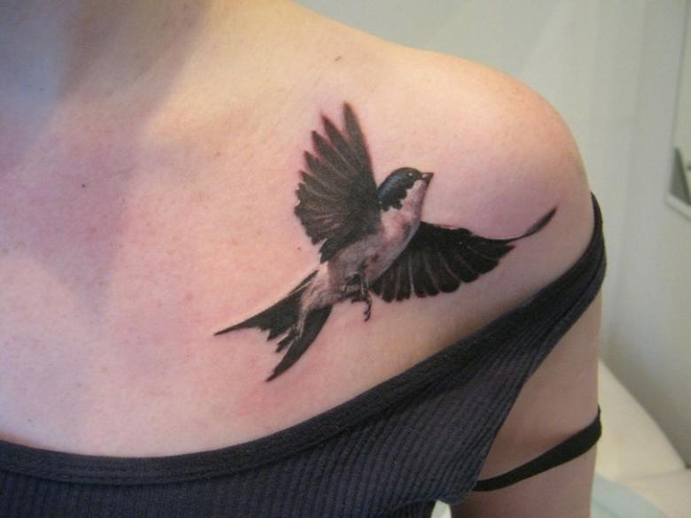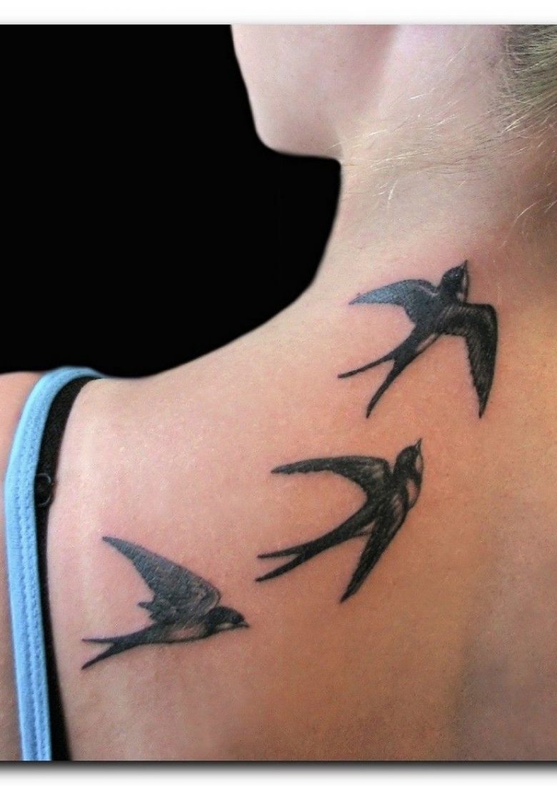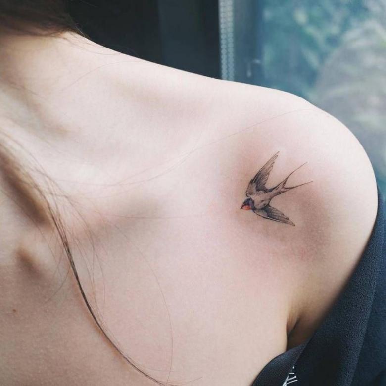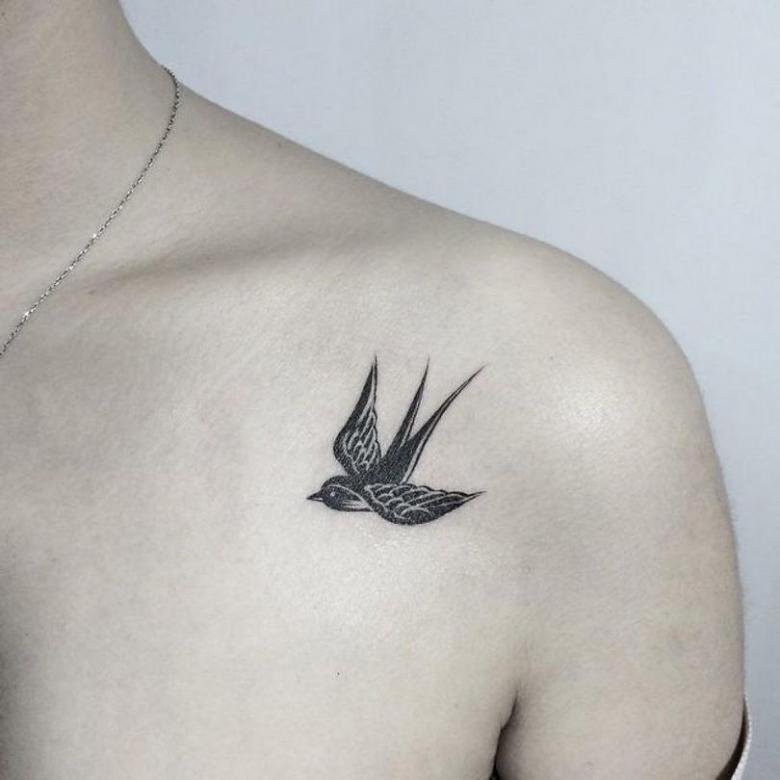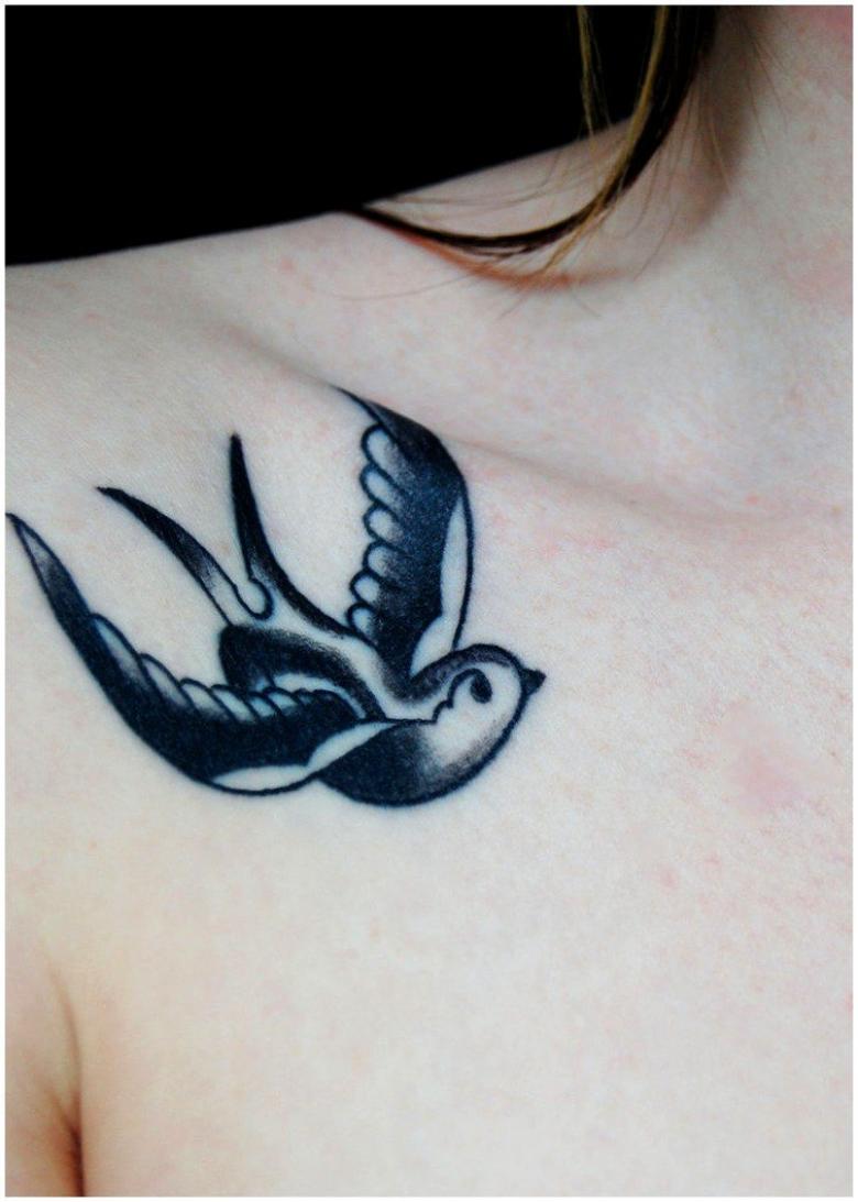 Basé sur les qualités d'élégance et de fragilité de l'hirondelle. Elles permettent d'attirer le regard de l'homme sur les parties piquantes du corps de la femme : épaules, seins, ventre et jambes. Cependant, les plus timides se feront tatouer une hirondelle sur leurs chevilles ou leurs poignets. De cette manière, les filles soulignent leur absence de défense, leur sophistication, leur beauté et le besoin de trouver la protection d'un homme fort.