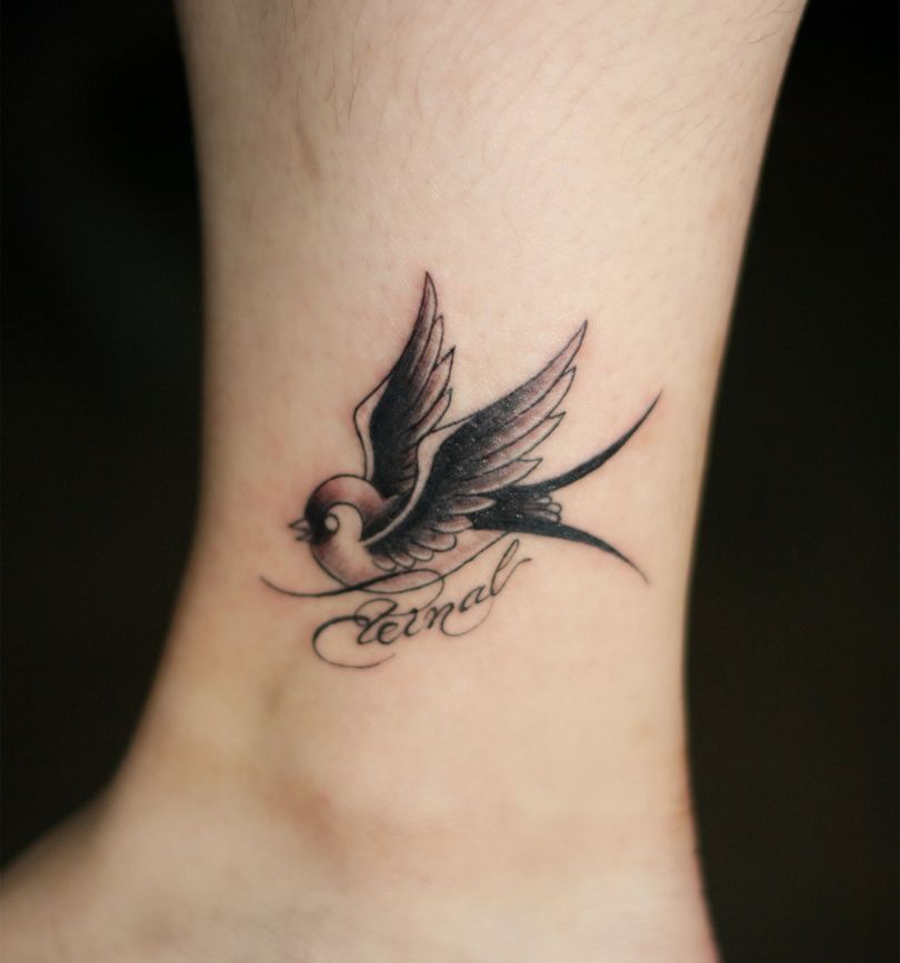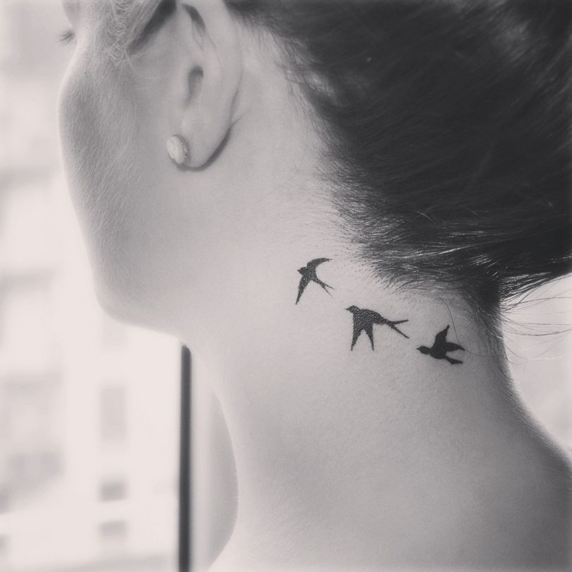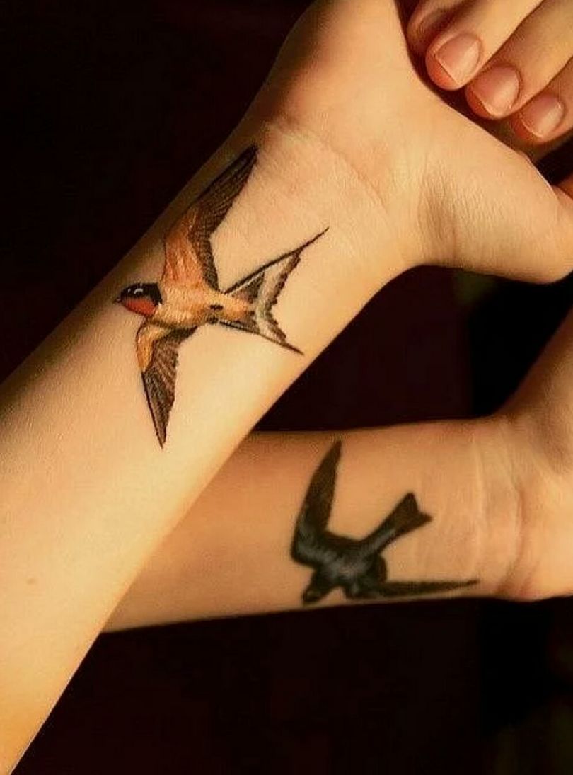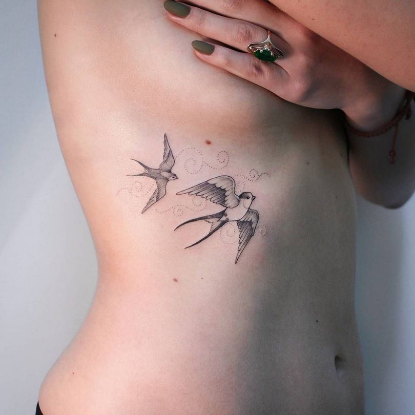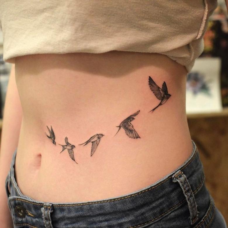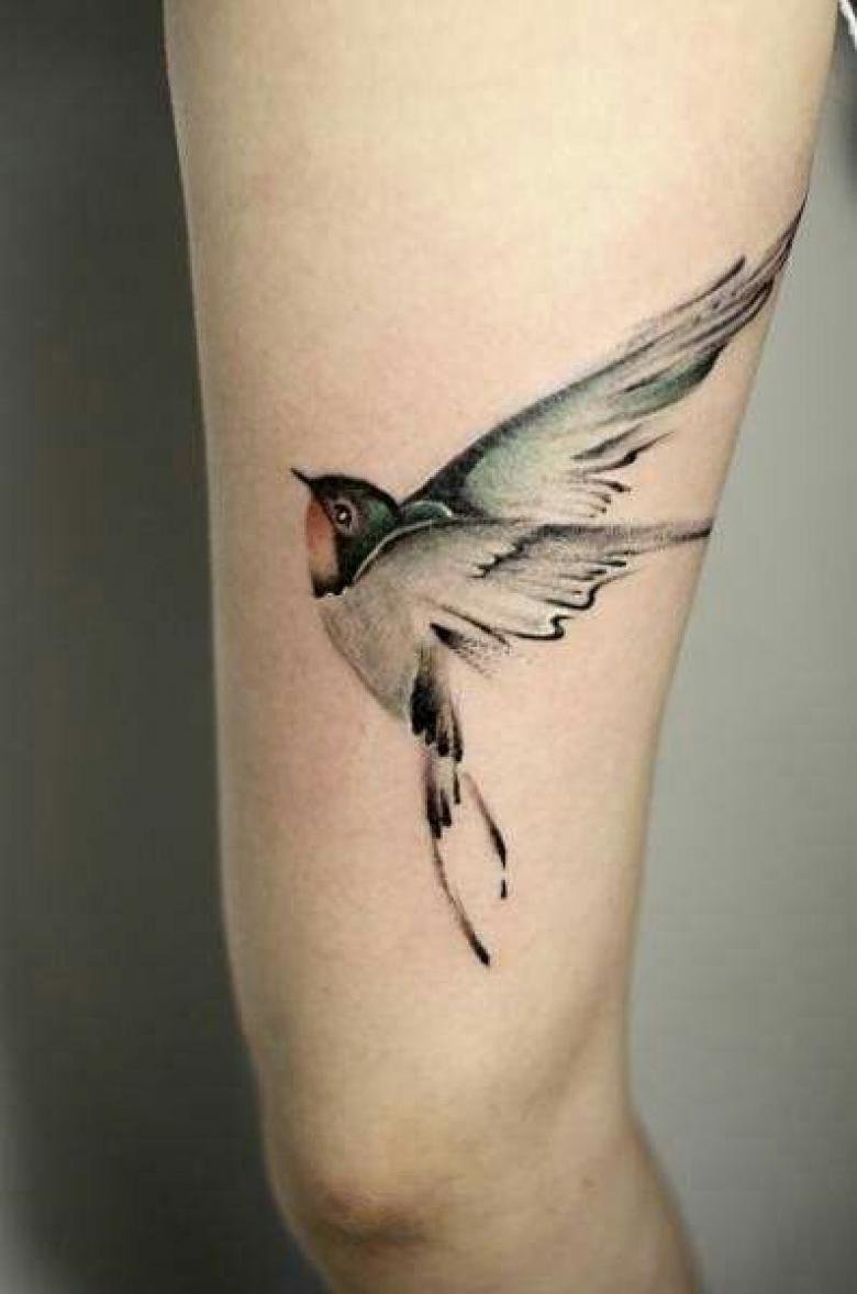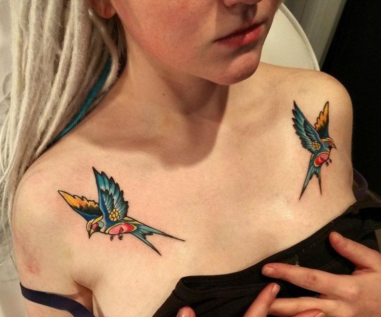 Basé sur les qualités d'élégance et de fragilité de l'hirondelle. Elles permettent d'attirer le regard de l'homme sur les parties piquantes du corps de la femme : épaules, seins, ventre et jambes. Cependant, les plus timides se feront tatouer une hirondelle sur leurs chevilles ou leurs poignets. De cette manière, les filles soulignent leur absence de défense, leur sophistication, leur beauté et le besoin de trouver la protection d'un homme fort.