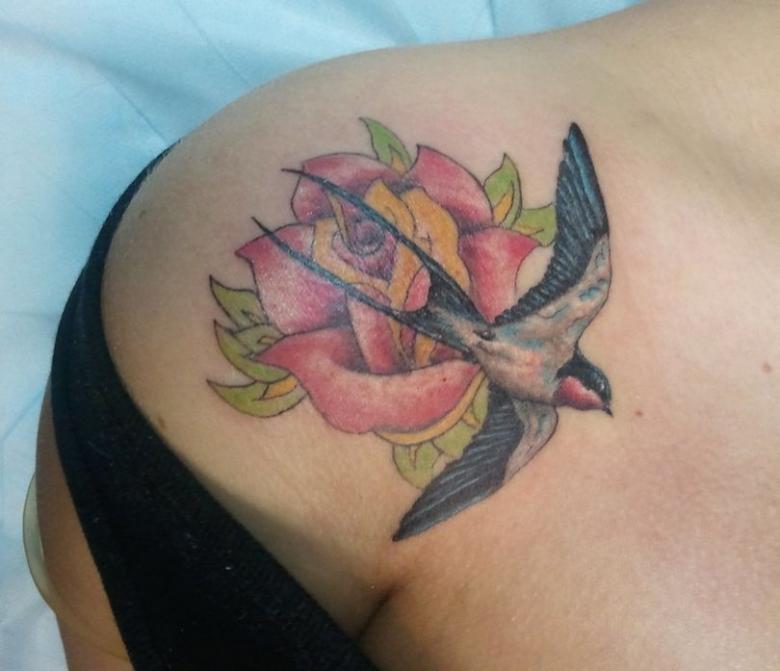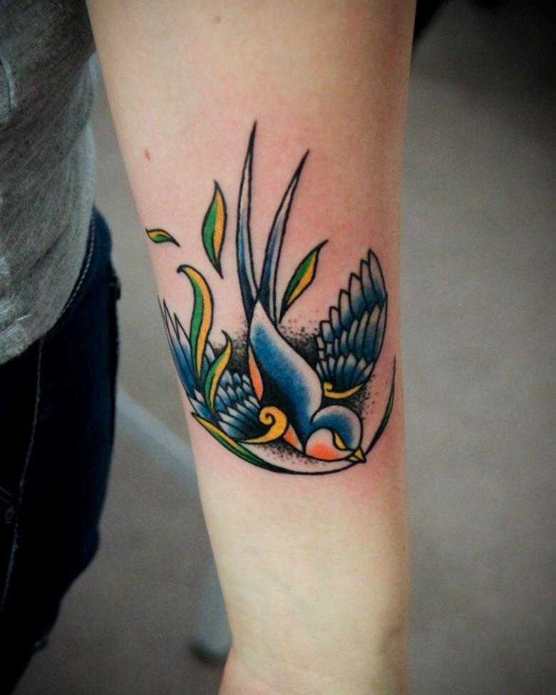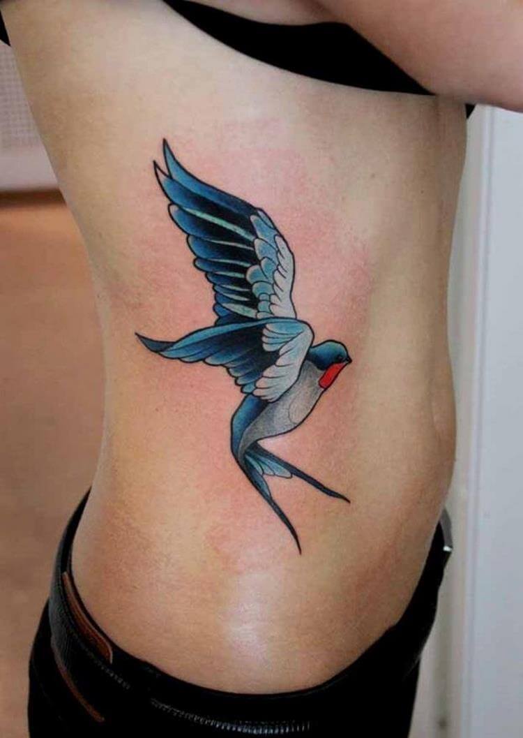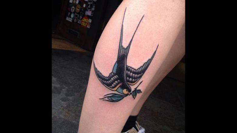 Les jeunes gens se font tatouer une hirondelle pour symboliser leur désir de liberté et pour montrer leur courage. Dans ce cas, l'oiseau est représenté avec ses ailes ouvertes en vol.