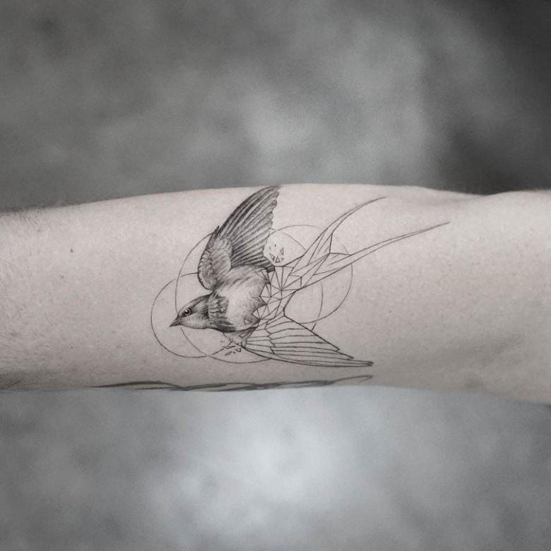 Mais beaucoup de gens aiment simplement l'image d'une hirondelle. Ils ont peut-être remarqué par hasard un joli croquis de l'oiseau à plumes et souhaitent le transférer sur leur corps.