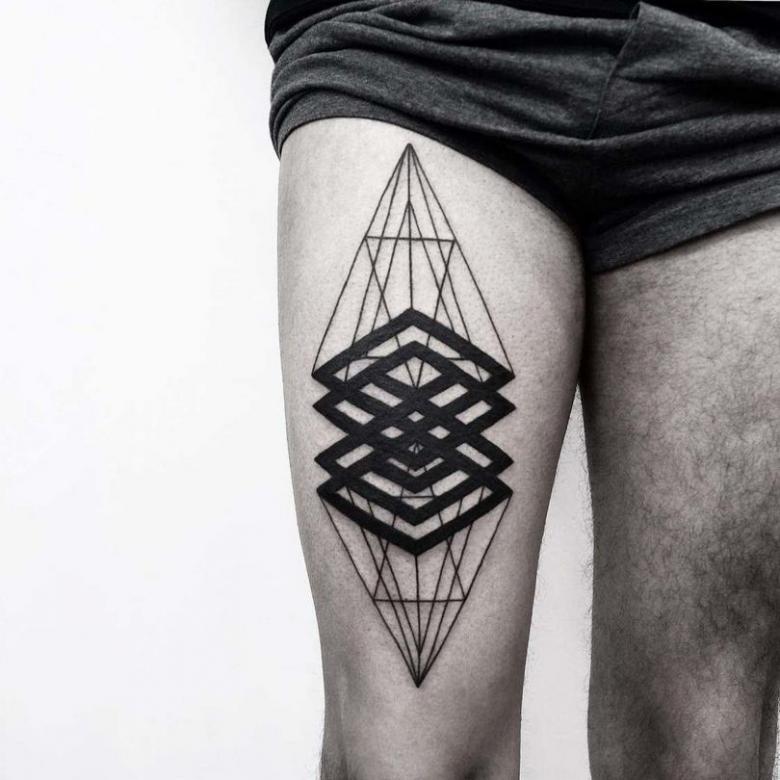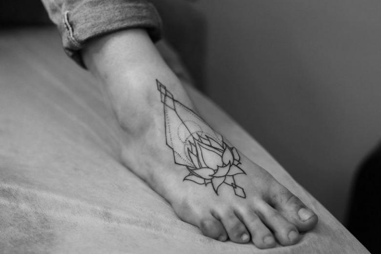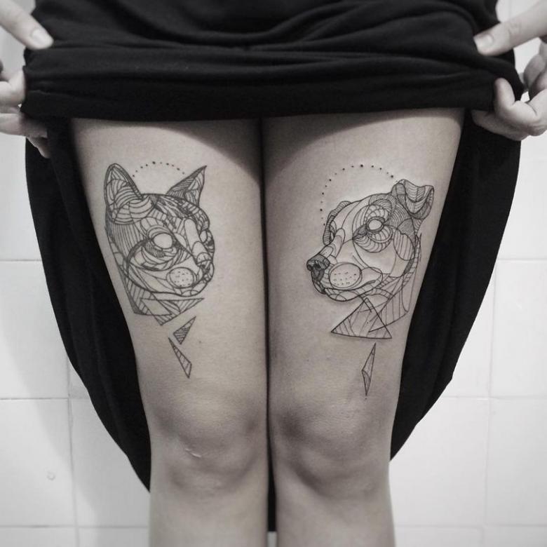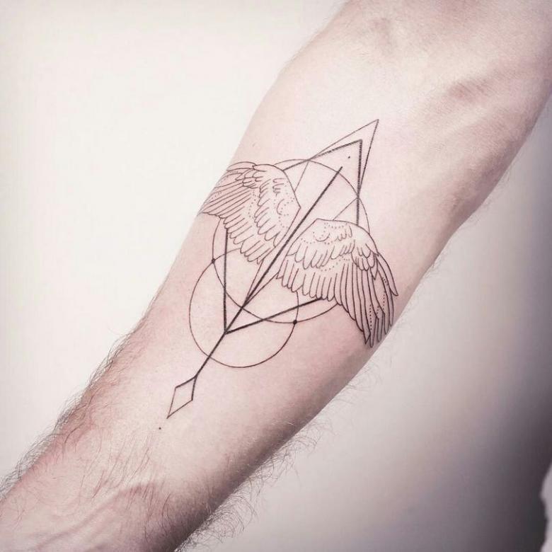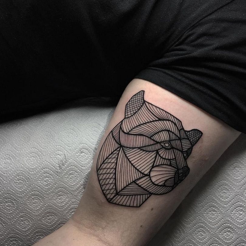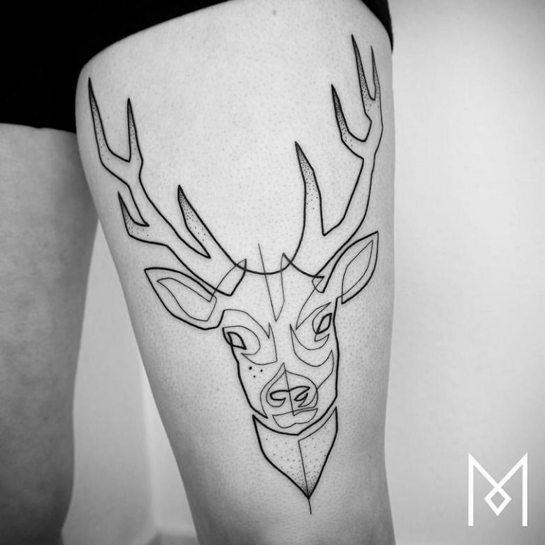 Le style linéaire ne limite pas l'imagination de l'artisan ou du client. Vous pouvez choisir un dessin composé de trois lignes noires ou de figures géométriques simples (carré, losange), ou bien recréer l'image de divers oiseaux, animaux et figures humaines sur le corps. Les clients modernes sont particulièrement satisfaits :
