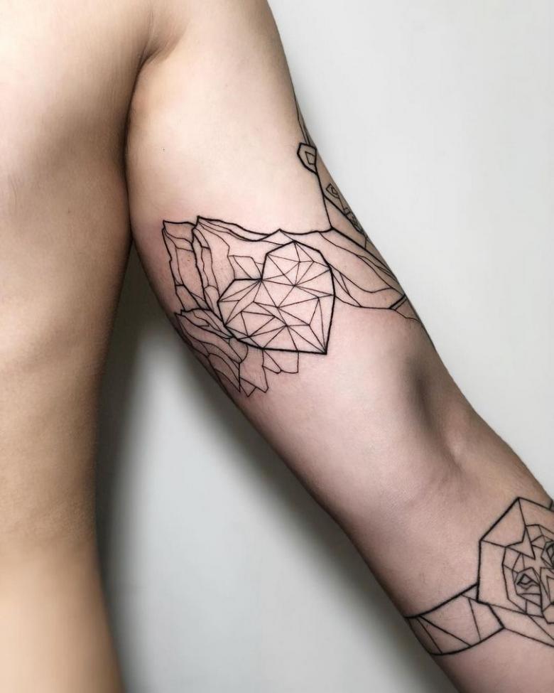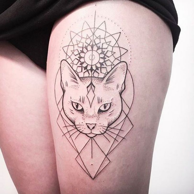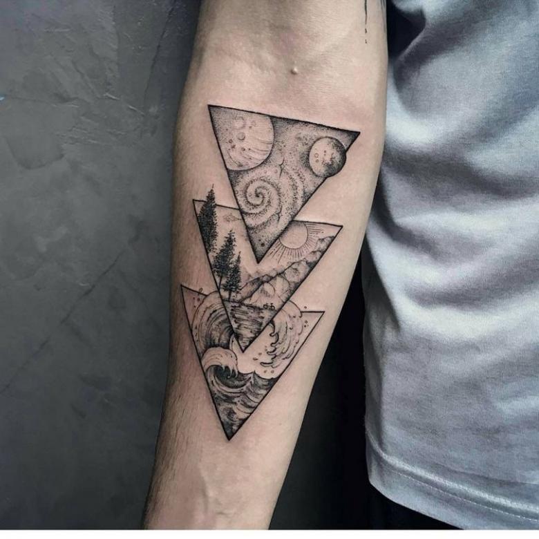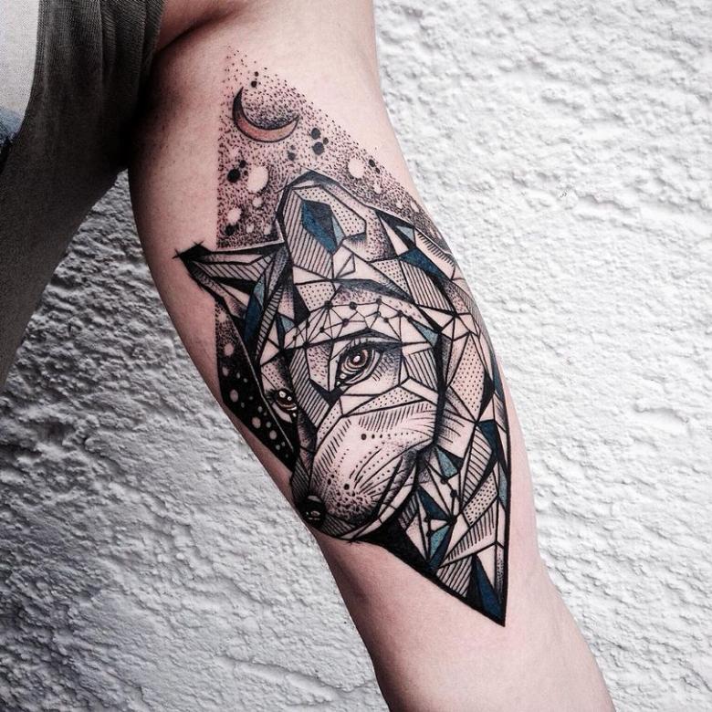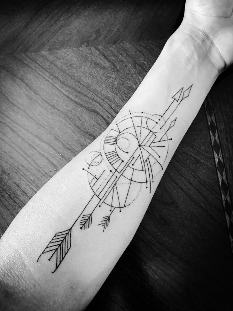 Le style linéaire ne limite pas l'imagination de l'artisan ou du client. Vous pouvez choisir un dessin composé de trois lignes noires ou de figures géométriques simples (carré, losange), ou bien recréer l'image de divers oiseaux, animaux et figures humaines sur le corps. Les clients modernes sont particulièrement satisfaits :