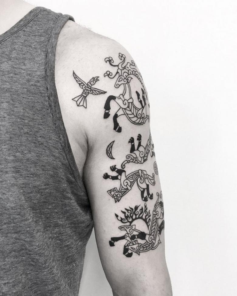 Les tatouages pour hommes se distinguent par la massivité des images, ils sont donc appliqués sur les épaules, la poitrine ou le dos. Les dessins de lions, d'ours, de loups ou d'aigles sont très populaires.