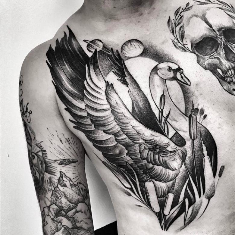 Comme on le sait, les cygnes sont des oiseaux non seulement beaux en apparence mais aussi attirés par leurs traits de caractère et leur comportement. Les jeunes hommes qui se font tatouer un cygne sont célèbres pour leur endurance et leur loyauté. Souvent, ces hommes sont sages et nobles.