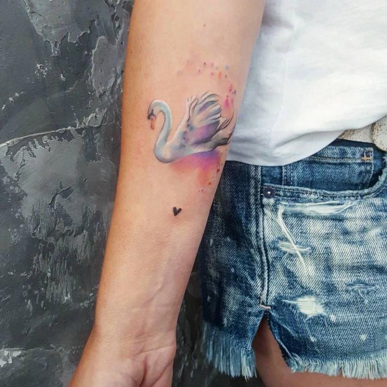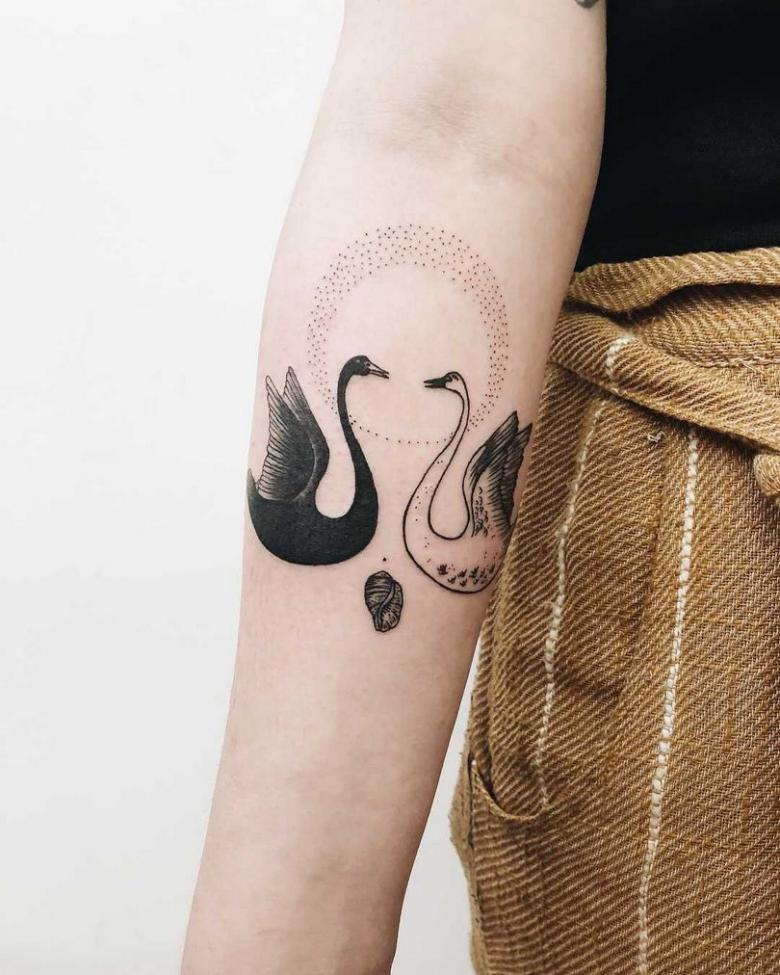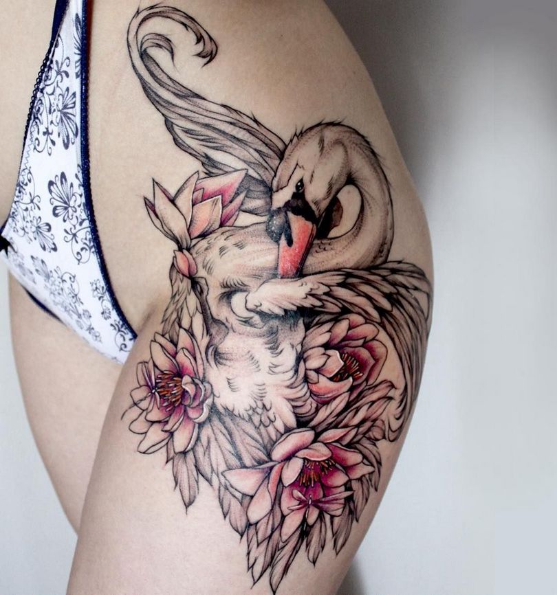 L'image d'un cygne sur le corps d'une fille met en valeur sa silhouette, sa grâce et son élégance. Souvent, le cygne est choisi simplement parce qu'il s'agit d'une jolie image et on ne lui accorde aucune importance, mais la plupart s'en tiennent au symbolisme. Par exemple, les figures féminines du cygne sont souvent sophistiquées et peuvent être des compagnes très fidèles dans la vie.