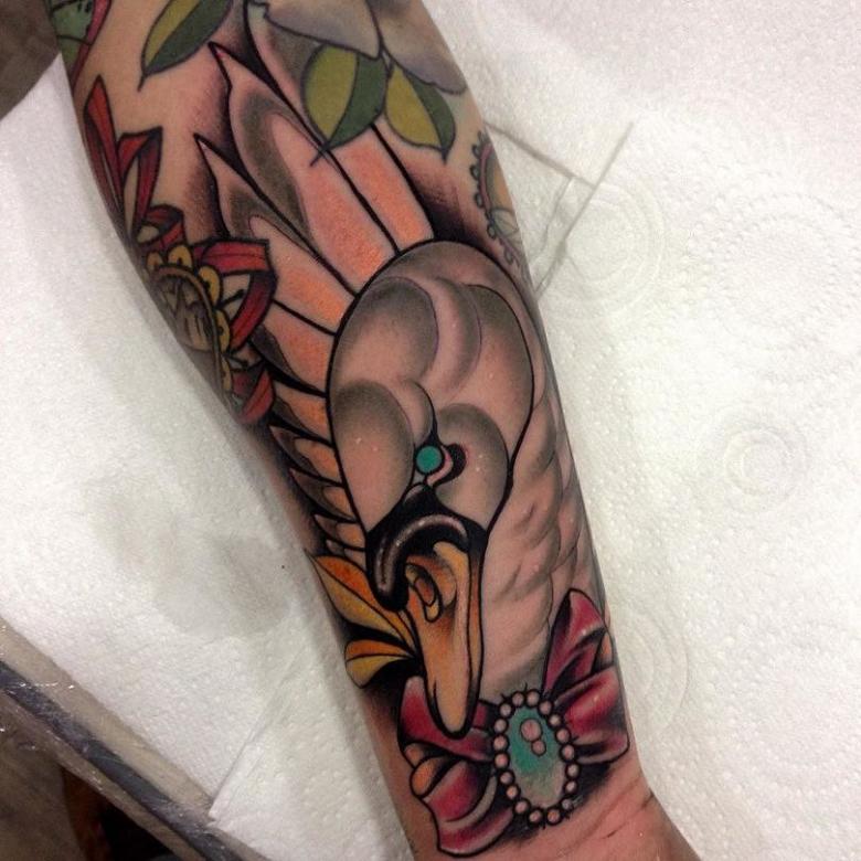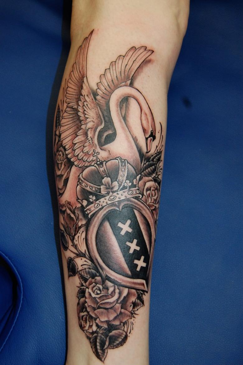 Si le dessin du tatouage utilise des ornements en or, cela peut indiquer que l'homme respecte et honore les lois de Dieu. Si l'oiseau porte une couronne, cela évoque le regret et les erreurs passées. Un nom à côté d'un tatouage de cygne signifie que la personne à laquelle l'homme était dévoué est décédée.