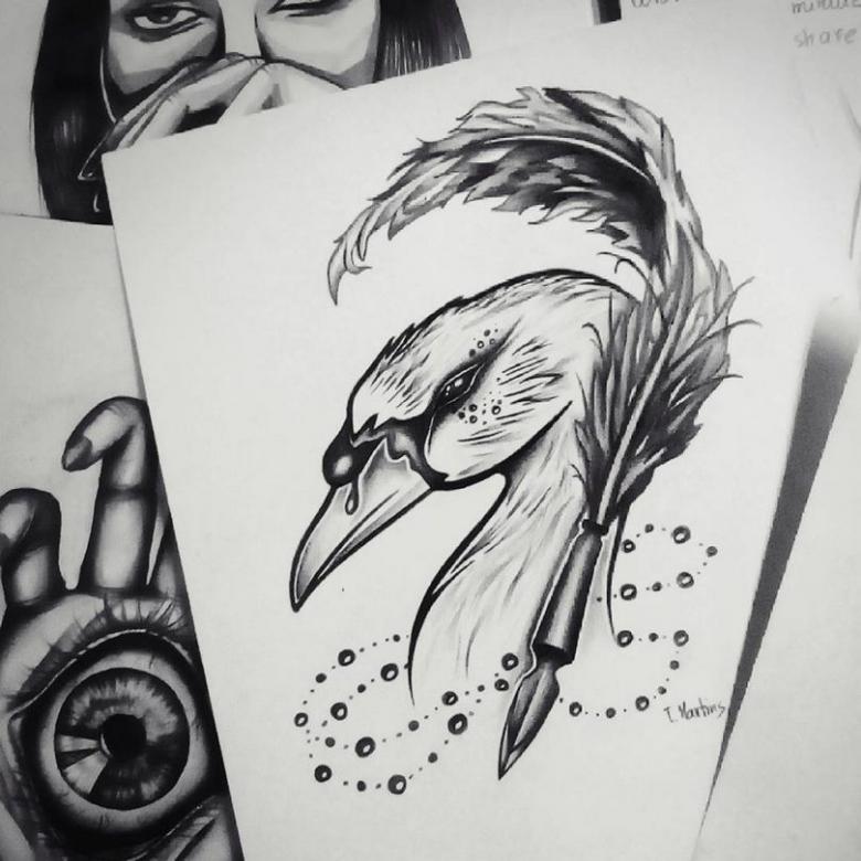 - Certains vont au-delà de la simple représentation de l'oiseau triste, ajoutant parfois de manière stylisée le nom d'une personne qu'ils aimaient beaucoup mais qu'ils ont hélas perdue. Cela provoque une grande douleur et en dit long sur le combat émotionnel de la personne.