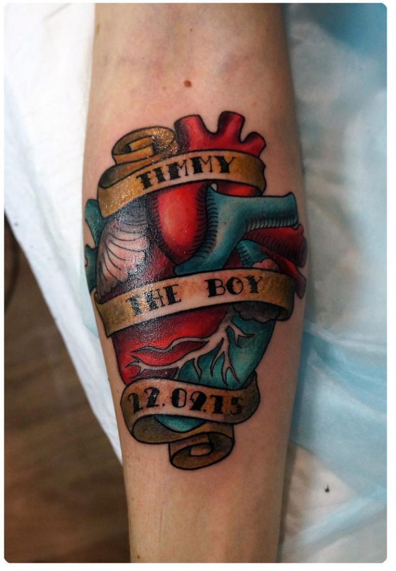 - A l'ancienne. Les rubans sont le plus souvent représentés avec des inscriptions. Les mots "Mum and Dad" peuvent y être inscrits en mémoire de parents décédés. Les tatouages de ce style sont complétés par des motifs classiques de phares, de bougies et de boussoles.