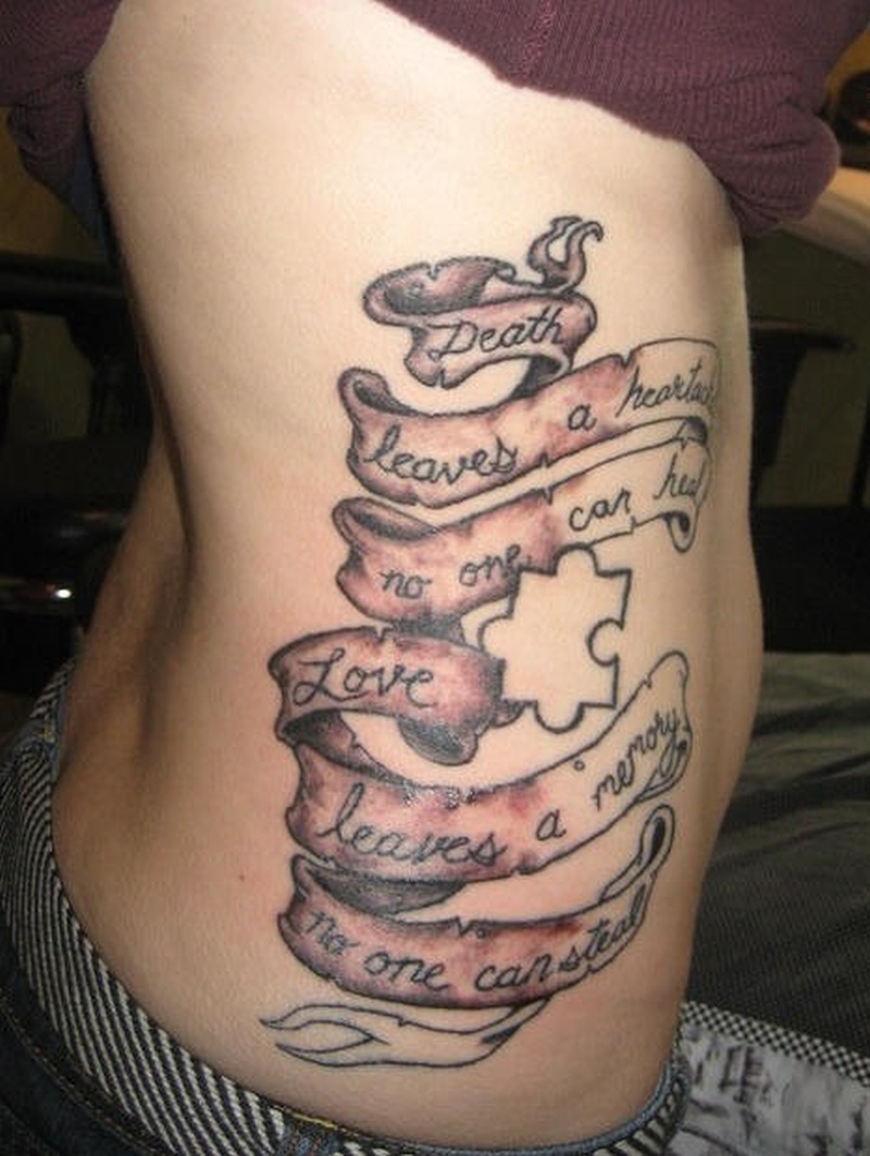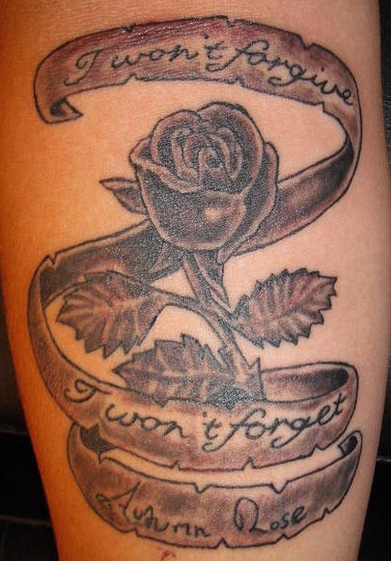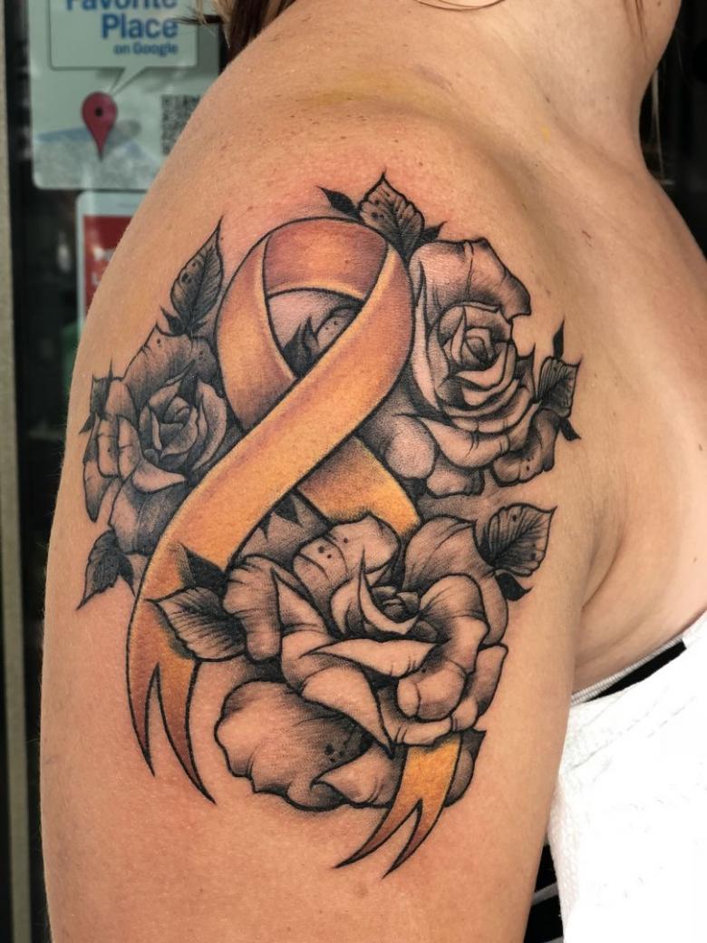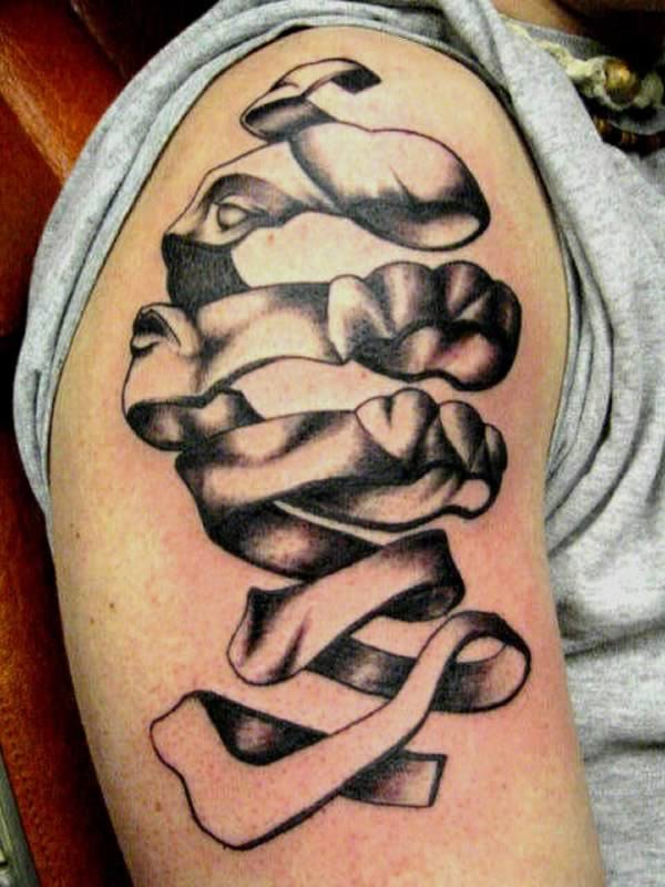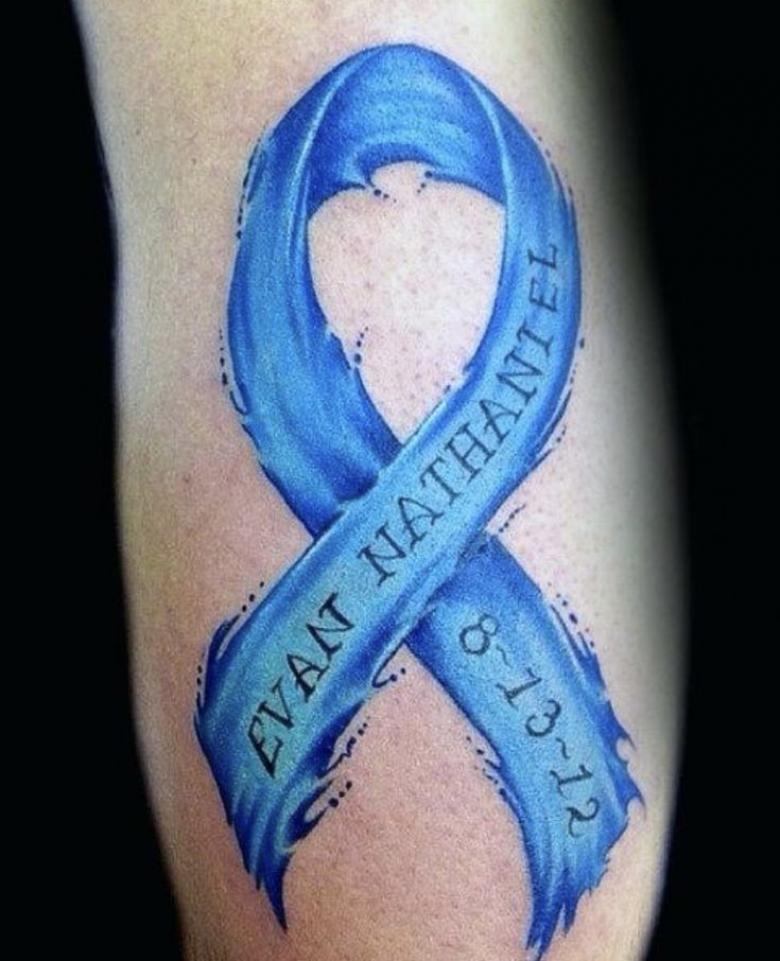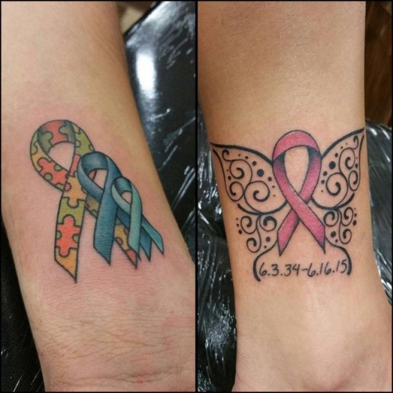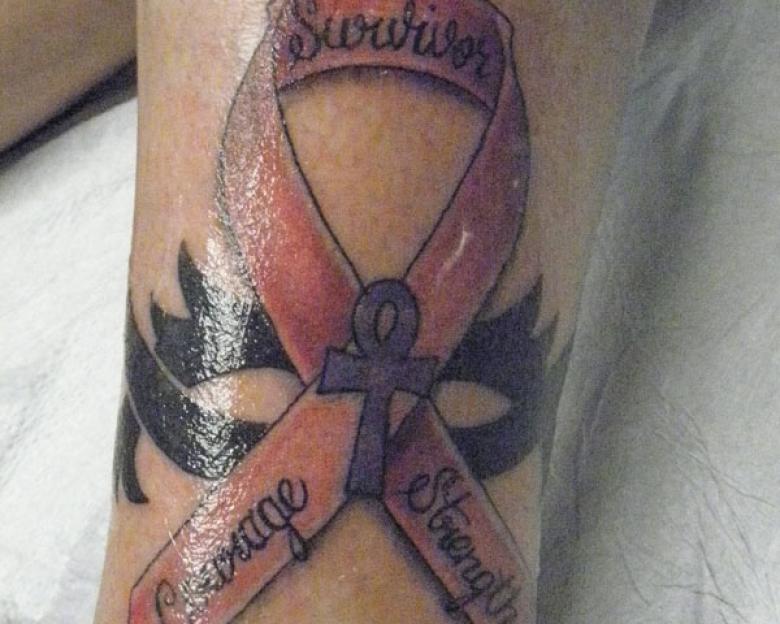 - En souvenir de ceux qui ont perdu un dur combat et sont décédés de maladie. Les gens tatouent des rubans à la mémoire douloureuse de leurs proches décédés trop tôt, et se souviennent d'eux avec amour et fierté.