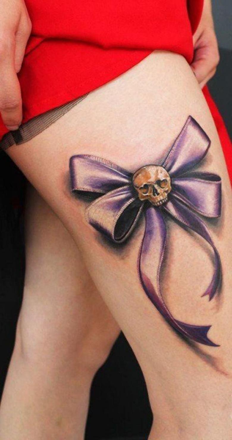 Il y a aussi des rubans qui symbolisent l'embellissement. Ces tatouages originaux sont le plus souvent appliqués par des filles. Ils ont mis des rubans attachés avec un nœud. Ces images ont l'air originales et coquettes. D'autres objets sont souvent ajoutés aux rubans : des couteaux ou même des fusils pour souligner la nature rebelle du propriétaire.